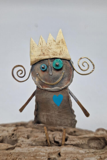 Cynowana, patynowana, malowana i lutowana ręcznie . Totalnie unikatowa, bo nawet jak ma siostrę, czy brata…. to i tak każda z nich jest inna.