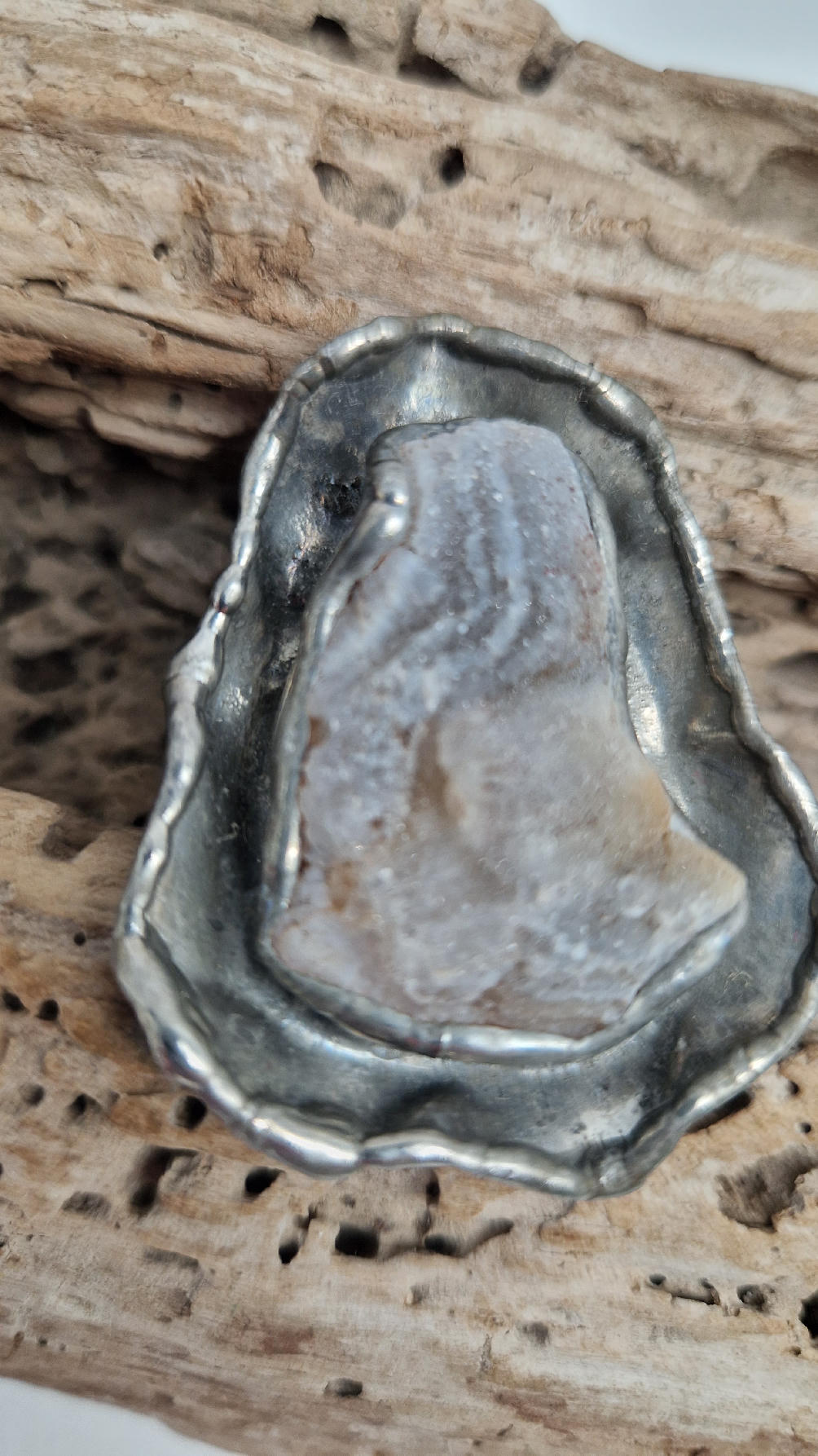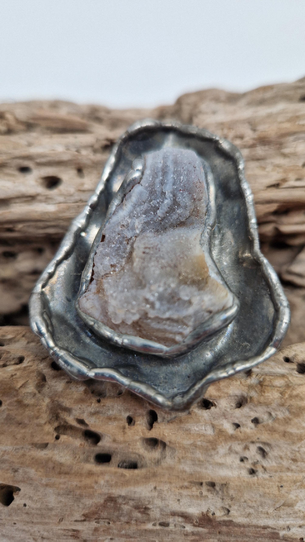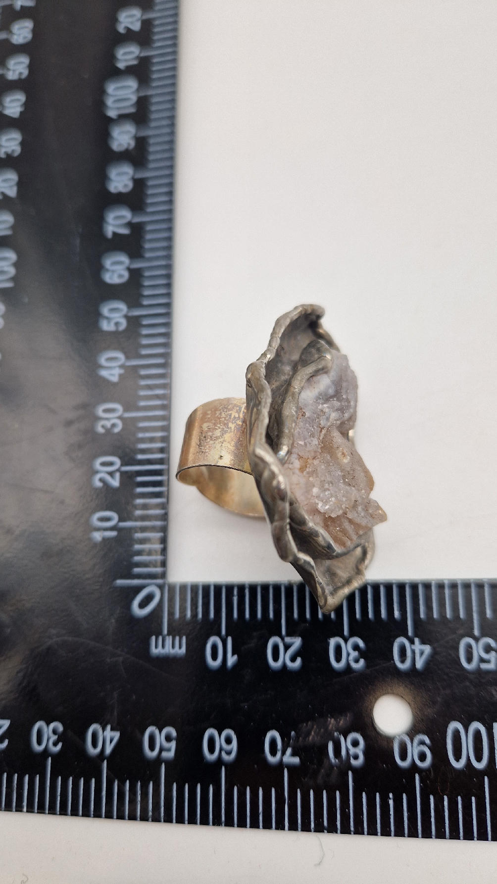 Metaloplastyczna oprawa tego pierścionka podkreśla naturalne piękno kamienia i nadaje mu elegancji i subtelnego wyrazu. To jak małe dzieło sztuki, które łączy w sobie naturę i rękodzielniczy kunszt. Każdy detal jest starannie wykonany, aby oddać wyjątkowość i piękno tego kamienia.