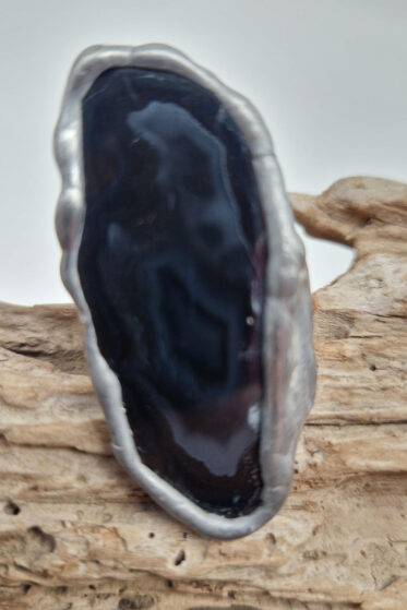 Pierścionek Głębia oceanu – Pierścionek z mosiądzu, posrebrzany którego sercem jest kolorowa ceramika w kształcie guzika