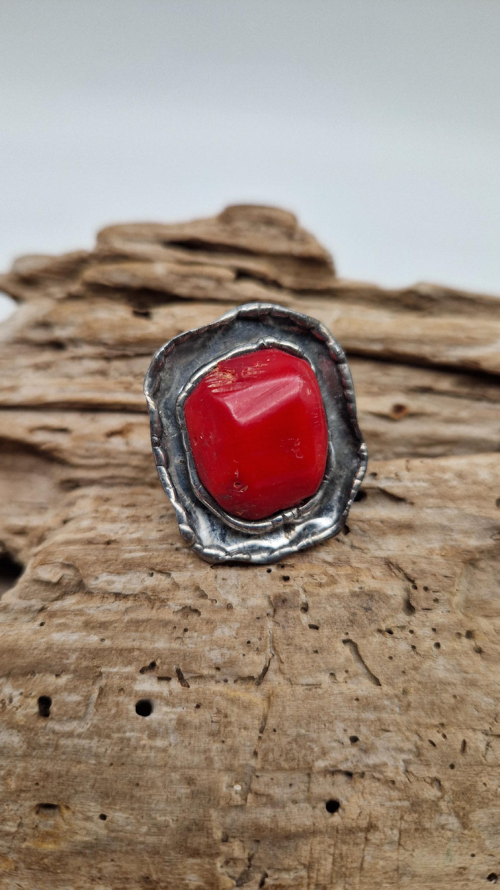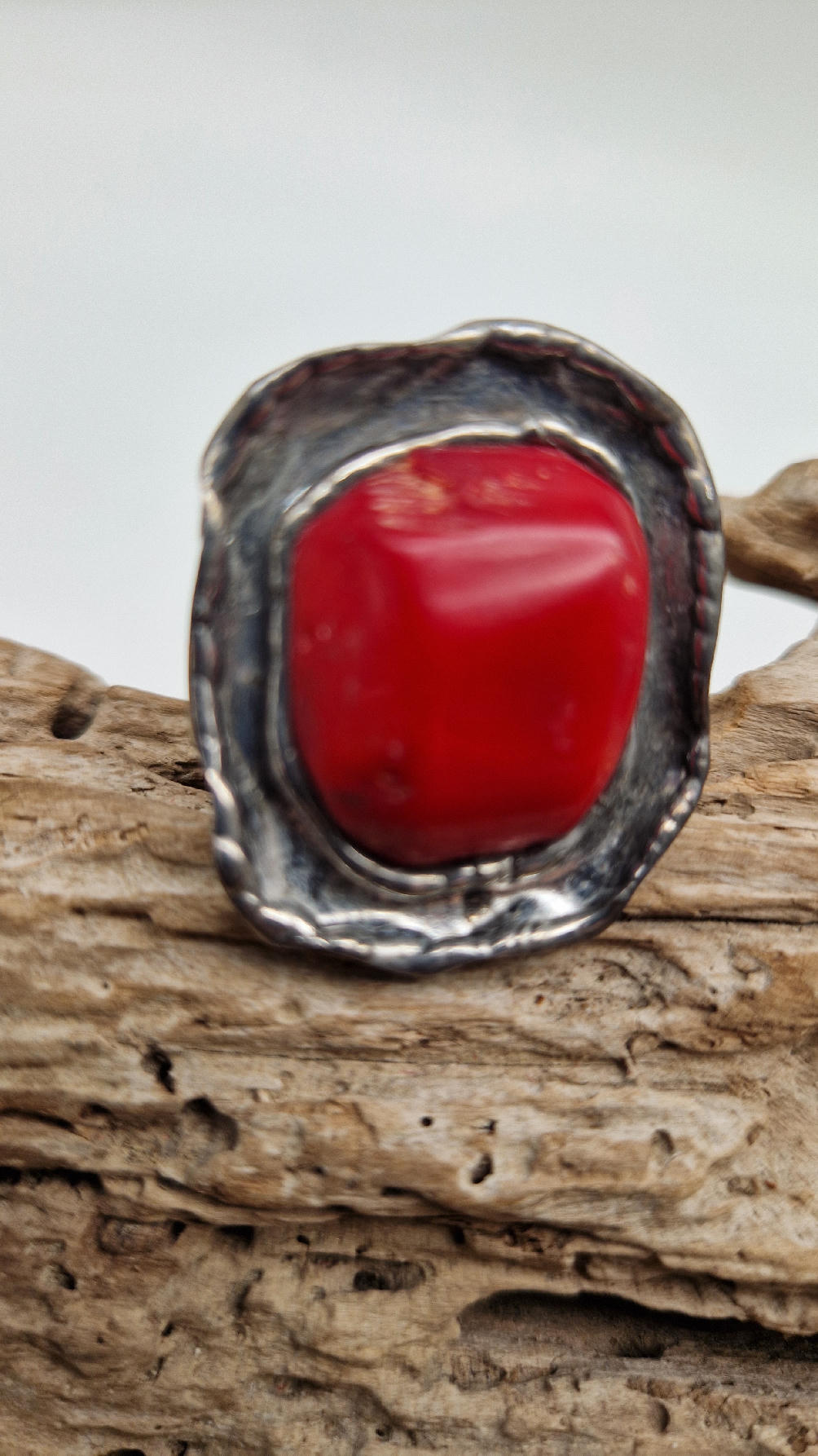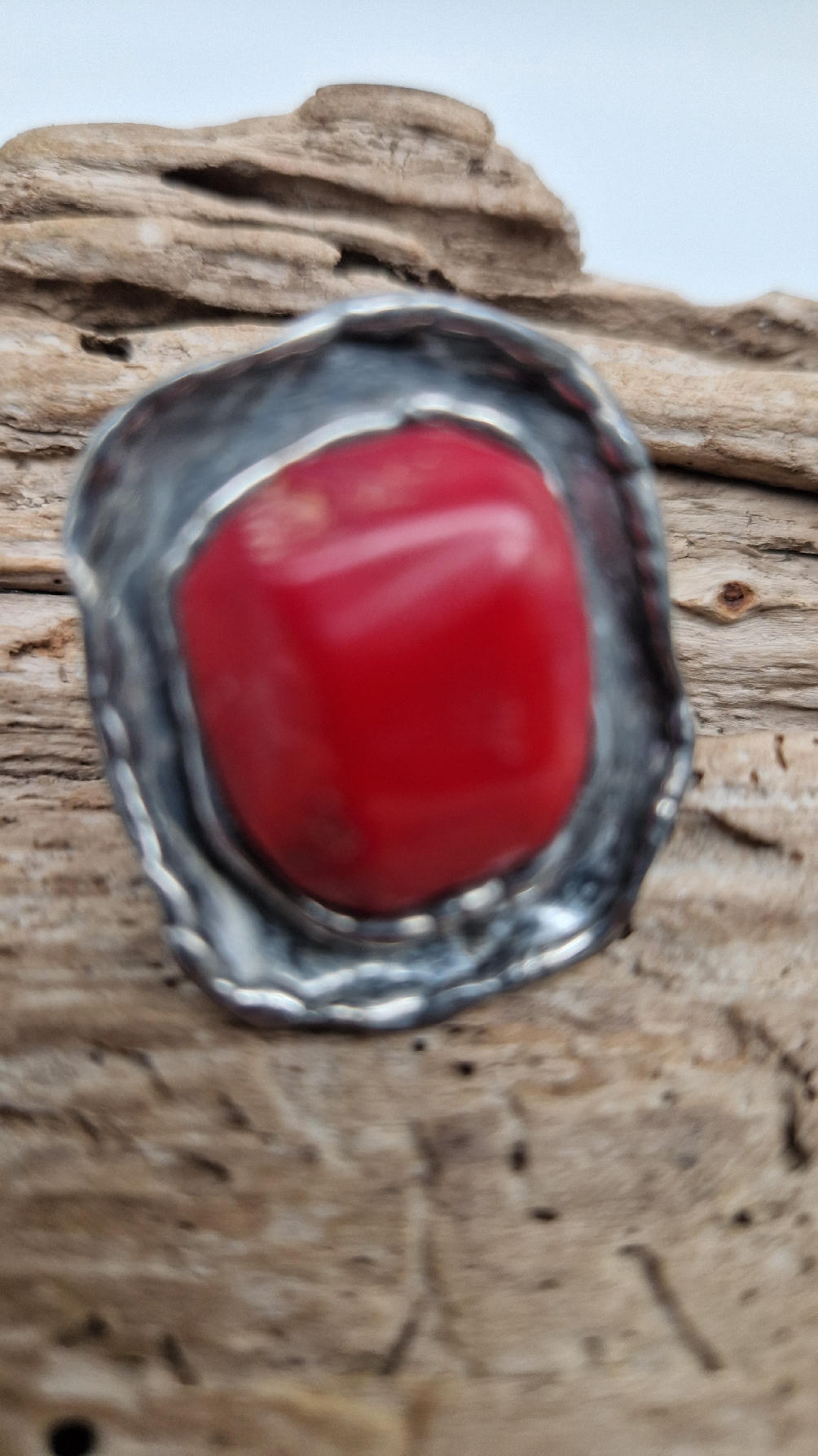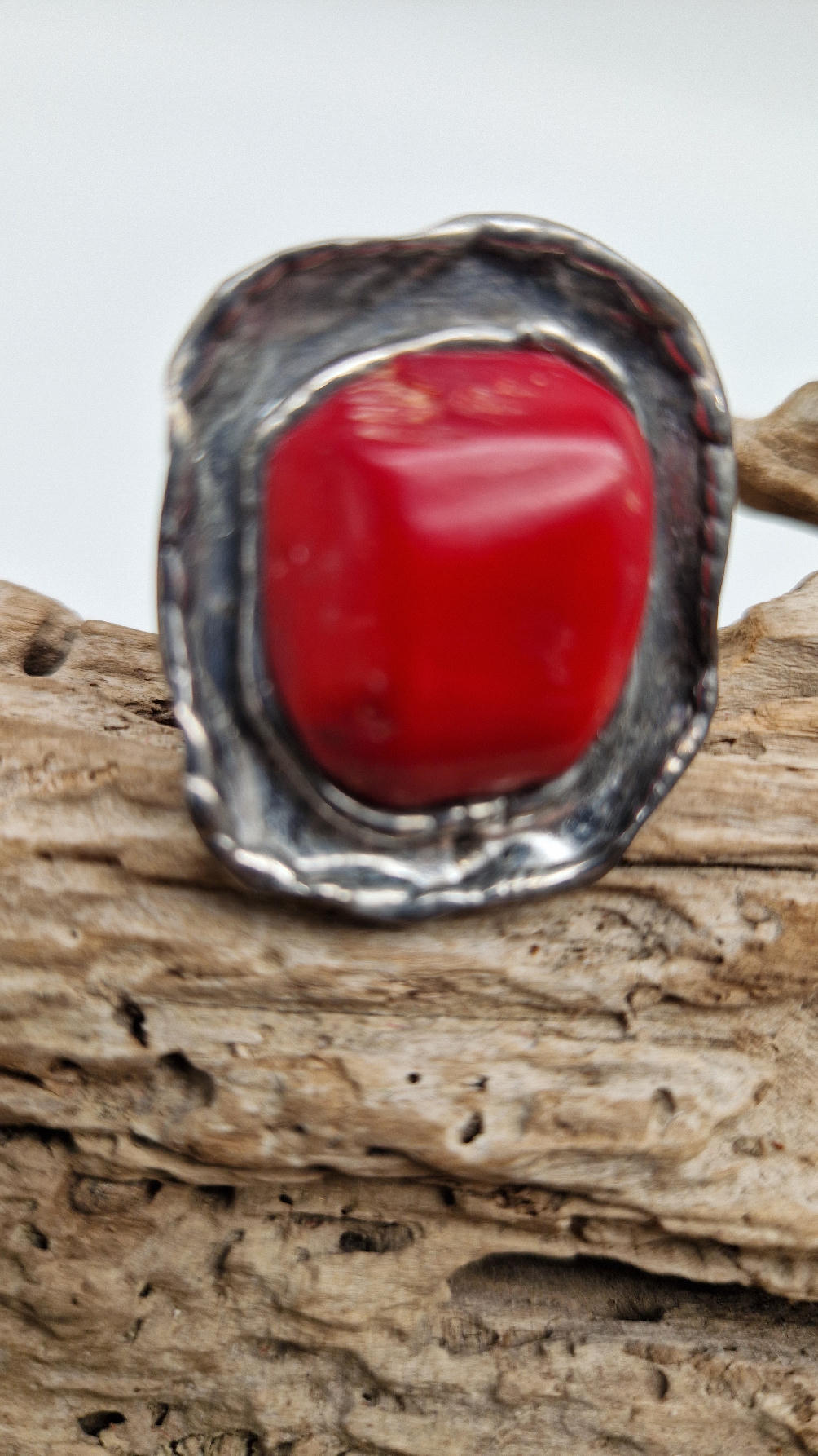 Niezwykle piękny pierścionek, którego oczkiem jest naturalny, koralowiec, a dookoła po prostu ręcznie robiona metaloplastyka. Pierścionek ma regulowaną obrączkę, więc pasuje na każdy palec…ale możesz powiesić go na łańcuszku lub rzemieniu, jeśli nie lubisz pierścionków, a podoba Ci się forma i kamień…