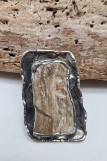 Duży, prostokątny pierścionek z prostokątnym białym, lekko perłowym oczkiem z naturalnym kamieniem o uroczej nazwie Selenit