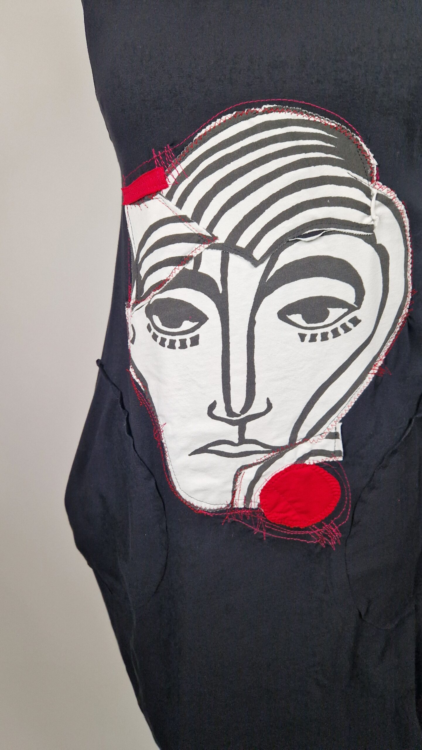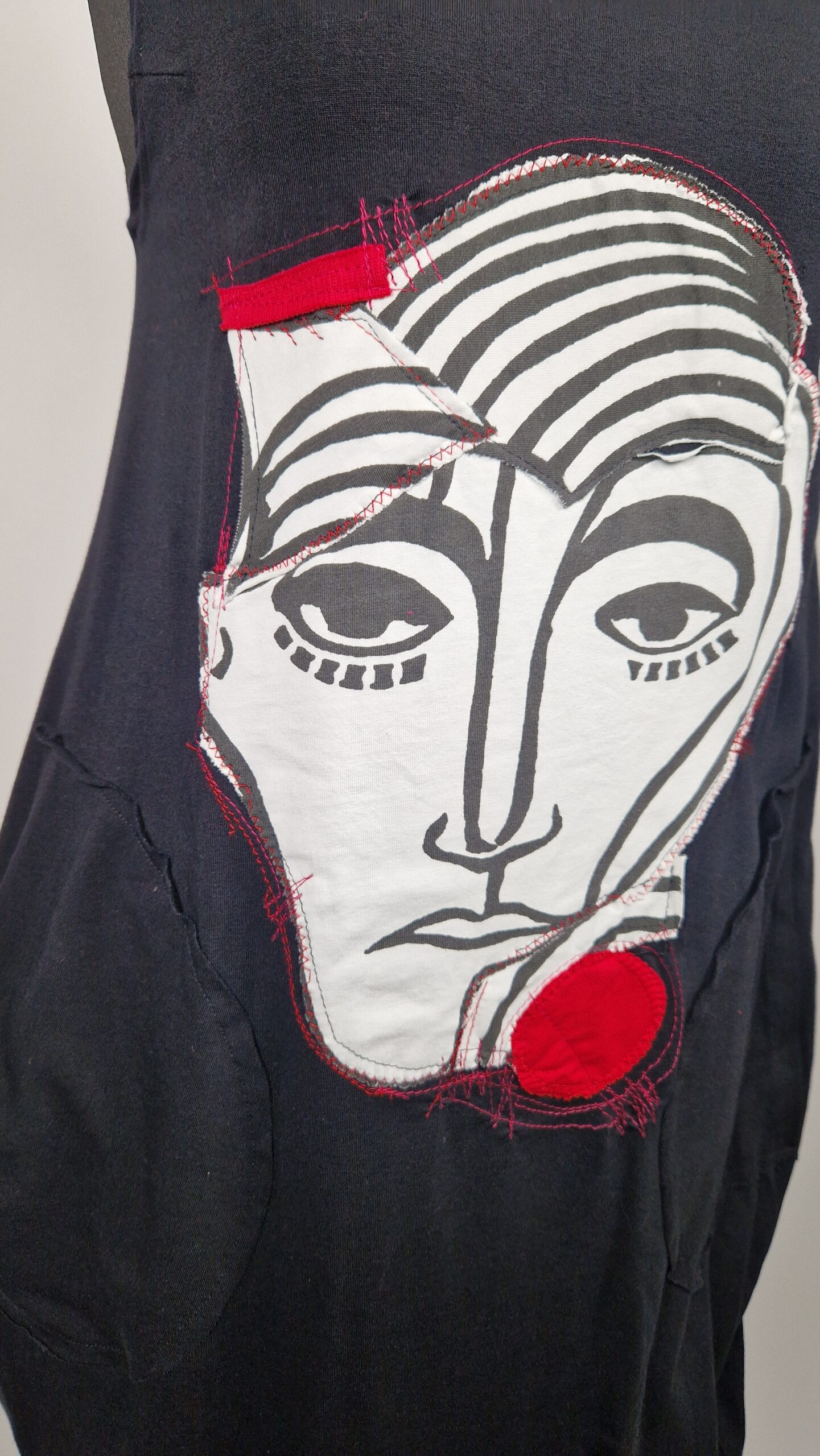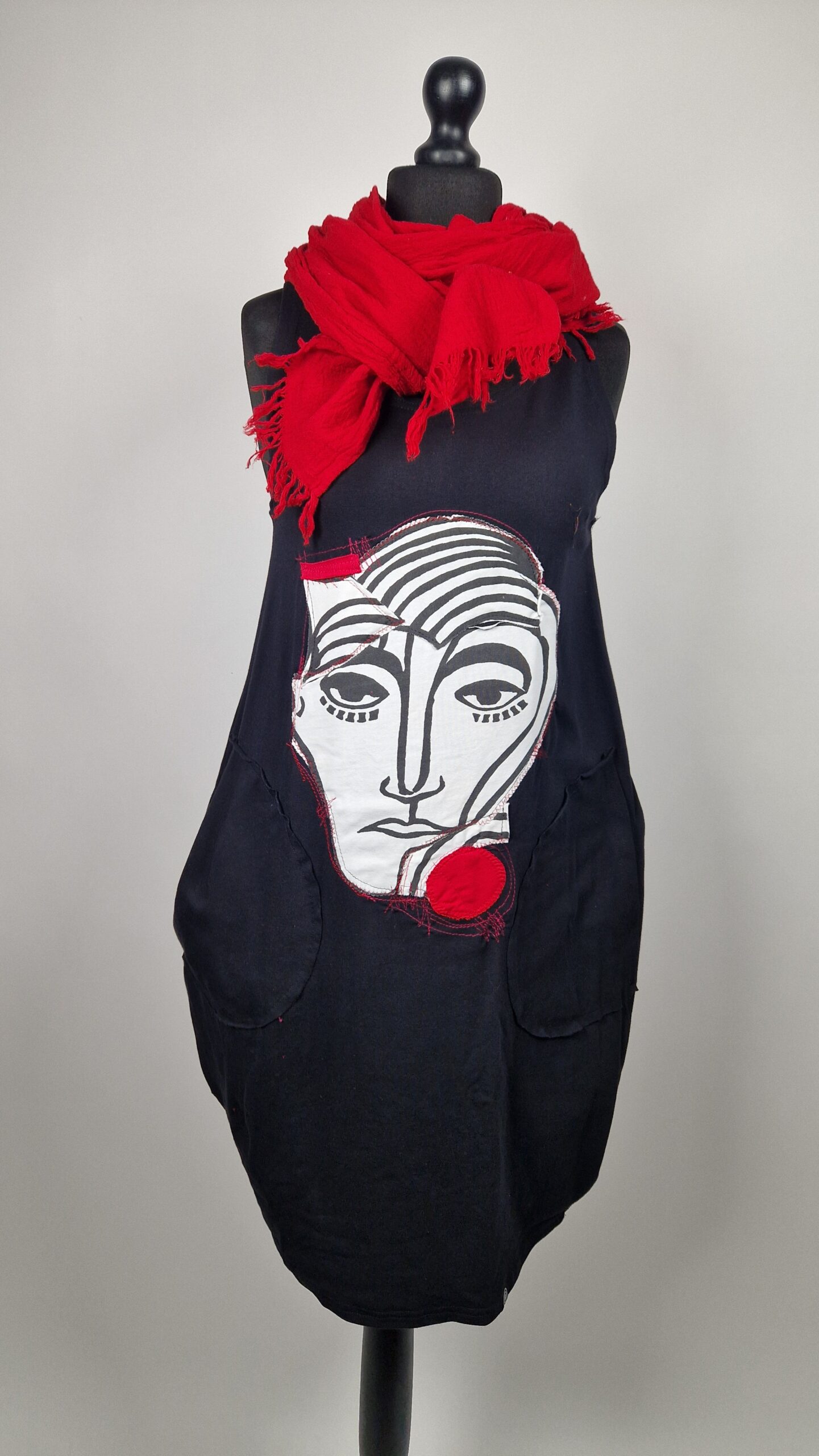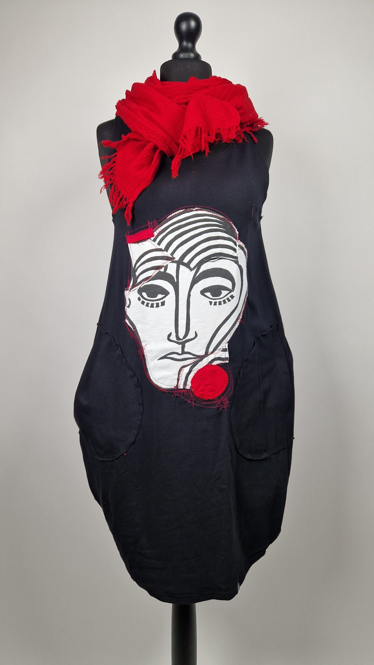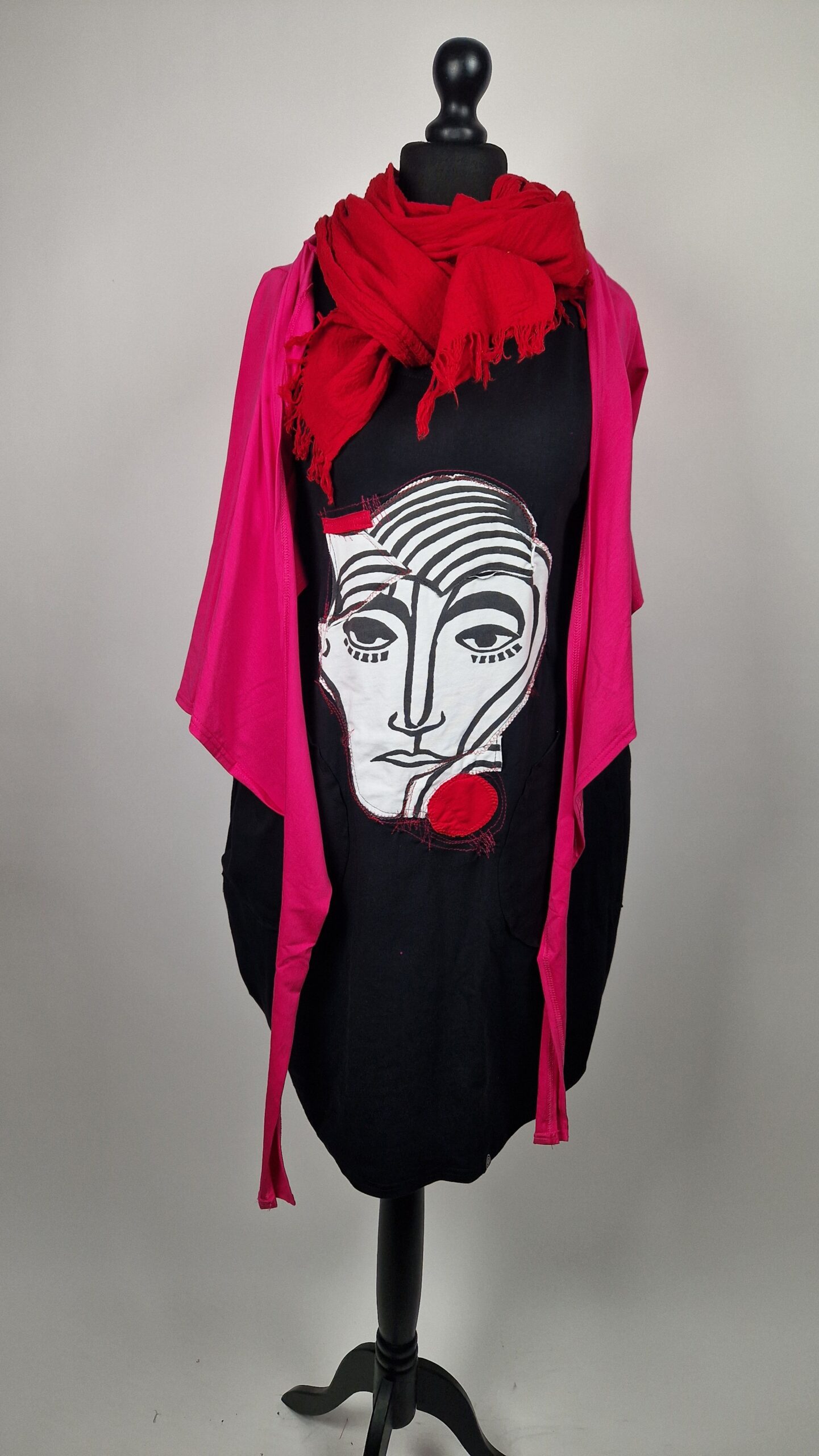 Portret-lekko abstrakcyjny, czerwone dodatki, czerwone przeszycia…a jak chcesz zakryć ramiona świetnie do tego się nadaje bluzka SŁOŃ…może być czerwony, lub czarny, a może różowy…