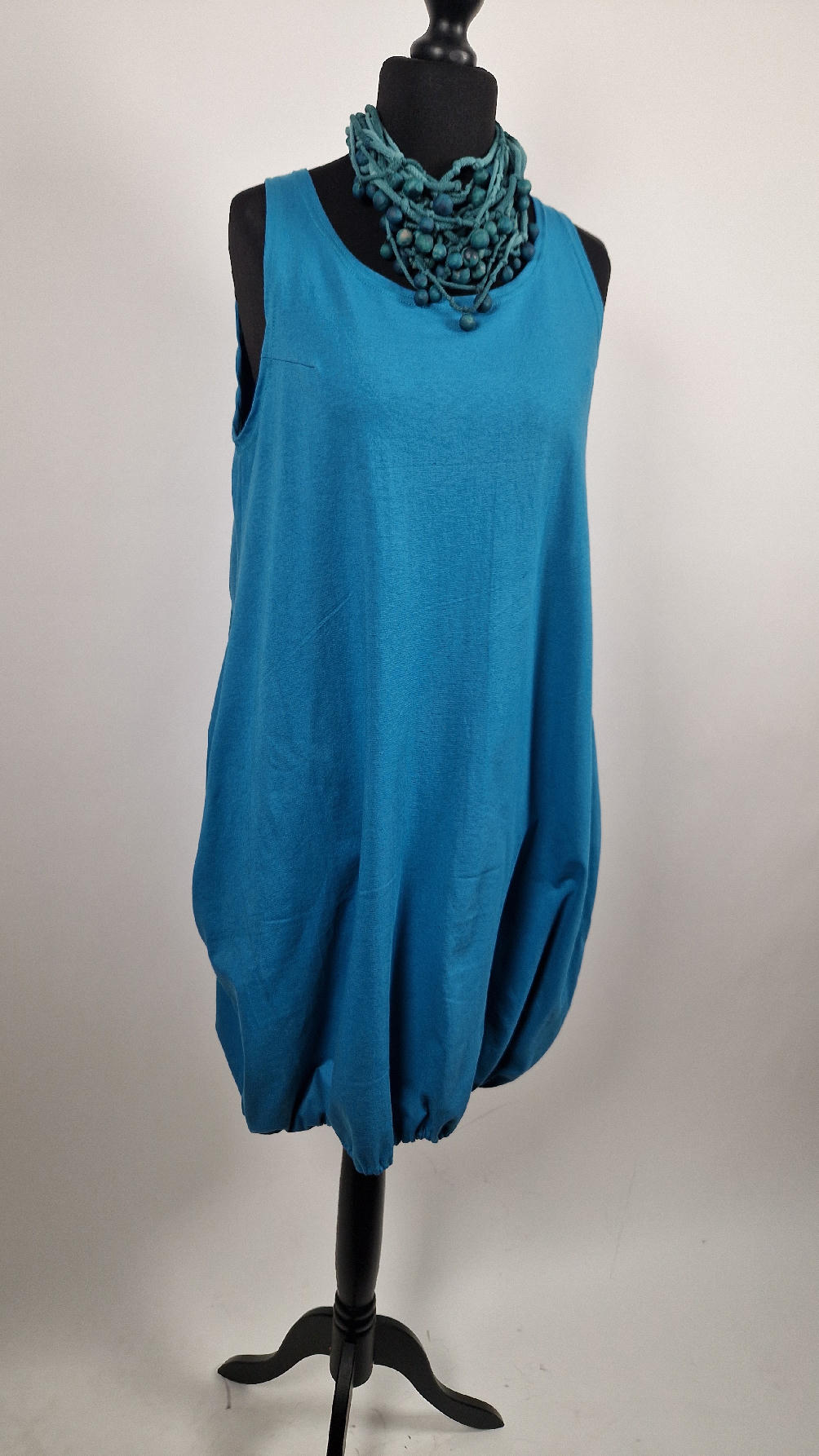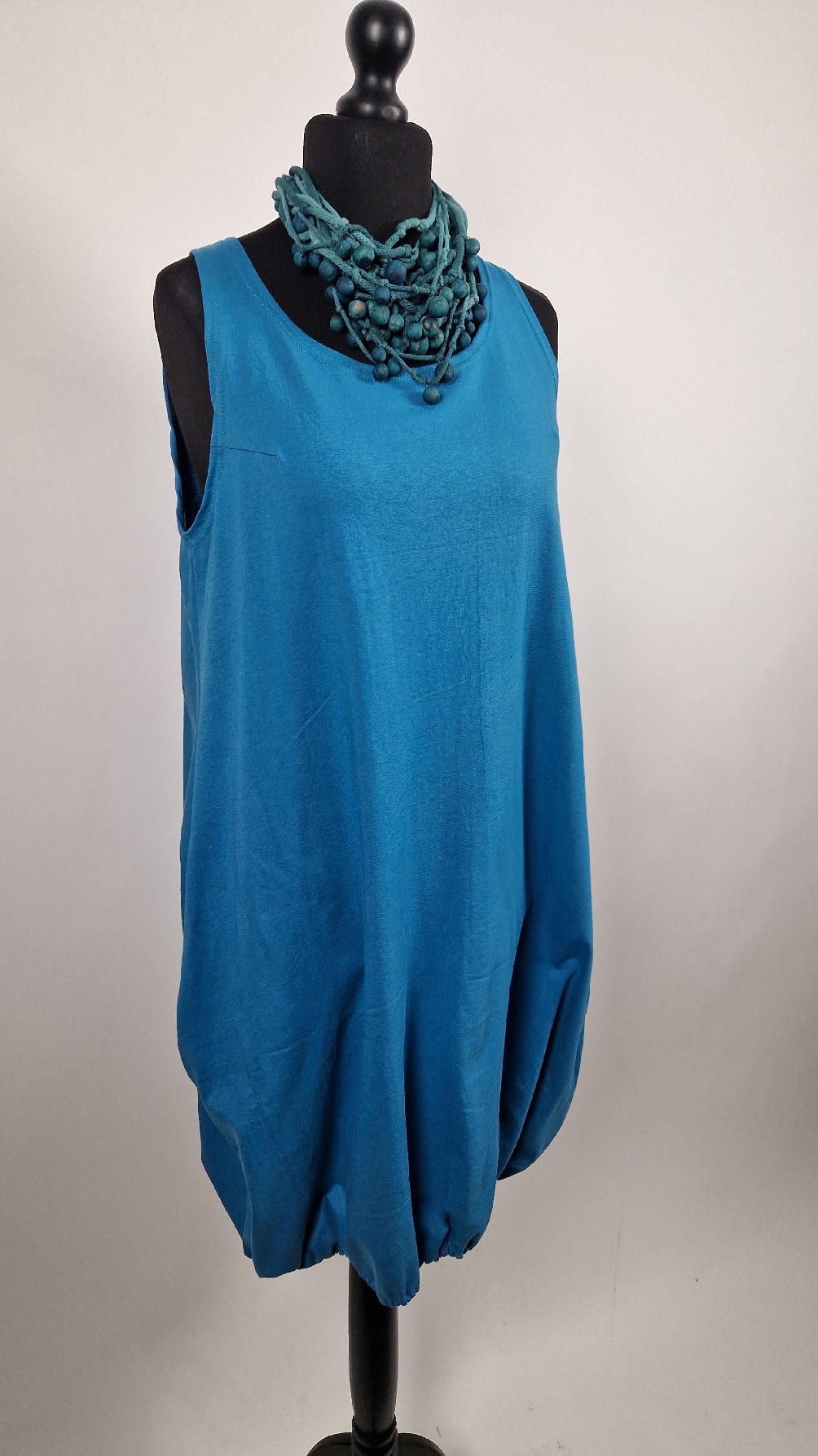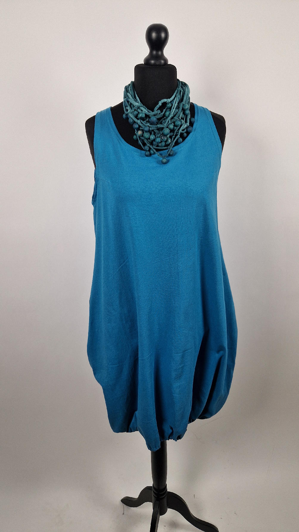 …taka jak ta moja idealna, ulubiona sukienka, która bardzo często, a właściwie codziennie jest bazą do moich wszystkich stylizacji, ale turkusowa . Zakrywa brzuch, a zazwyczaj chcemy go choć trochę zamaskować, chowa biodra, ale jeśli chcesz , możesz ją podciągnąć i zrobić bluzkę lub tunikę, wszyta na dole gumka, na pewno będzie się trzymać tu, gdzie chcesz…Sukienka jest idealna do wyeksponowania biżuterii, możesz do niej założyć wszystkie wisiory i naszyjniki i kolczyki…Możesz ją założyć oczywiście solo, jest idealna! Na tą kieckę możesz zarzucić katanę, otulak, szalik- bo to jest po prostu sukienka idealna do wszystkiego, na lato, na zimę, do teatru, na wyjazd, do samolotu- sama sprawdź!