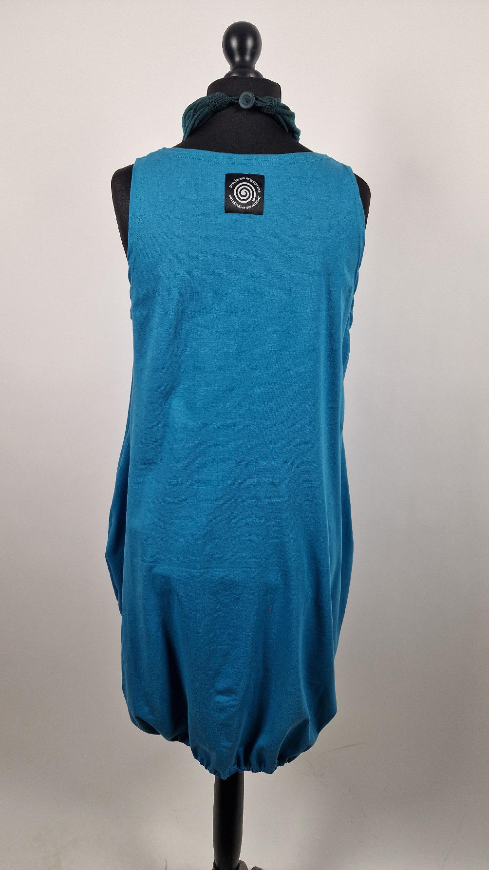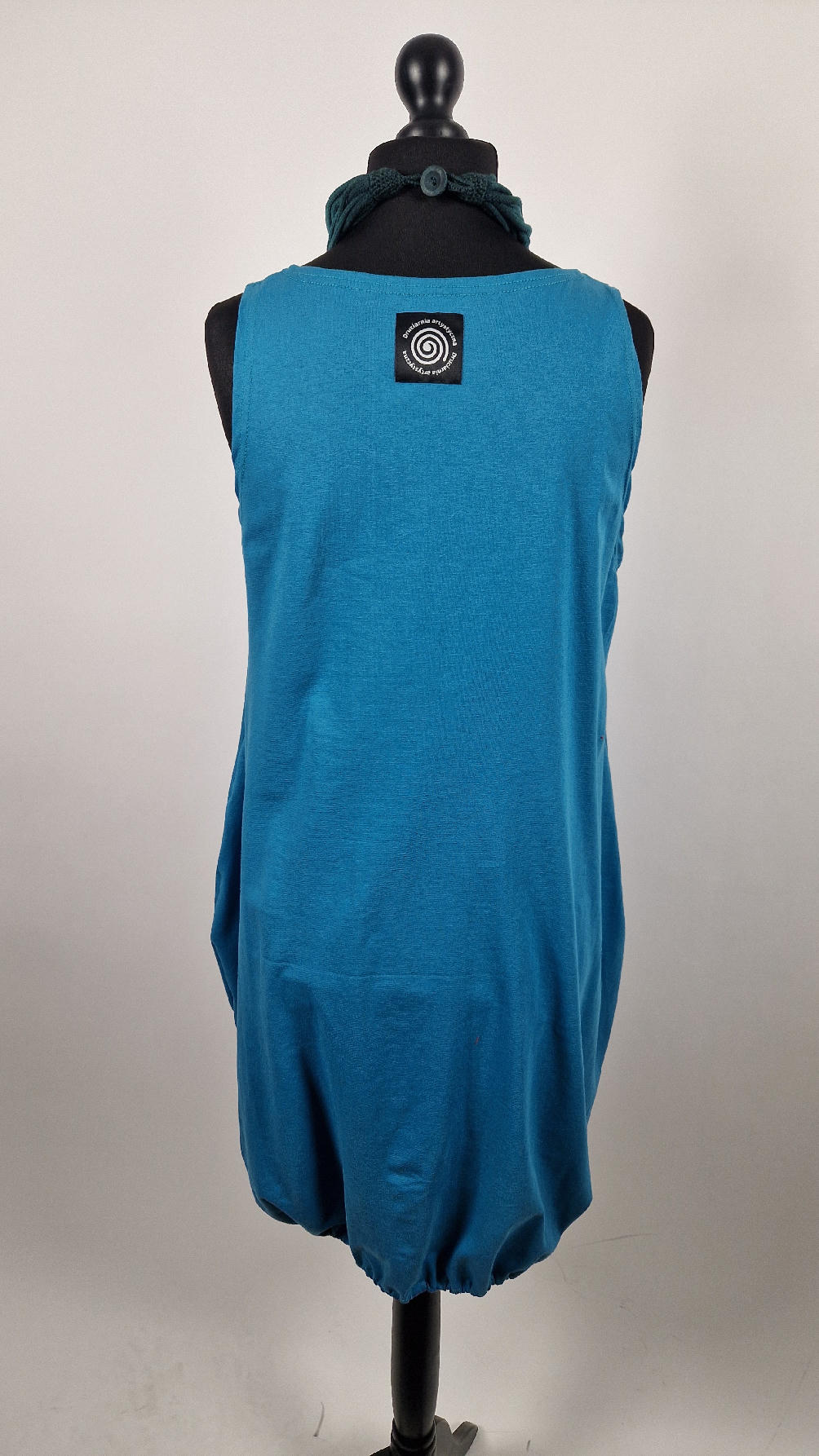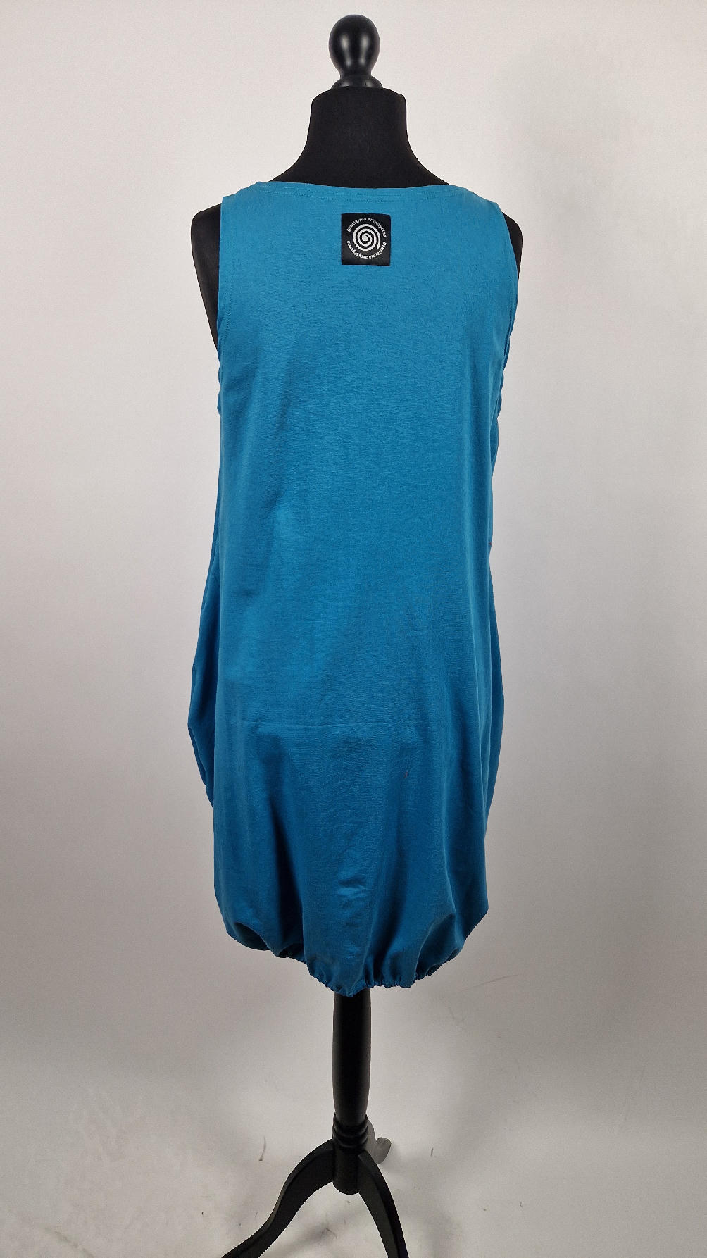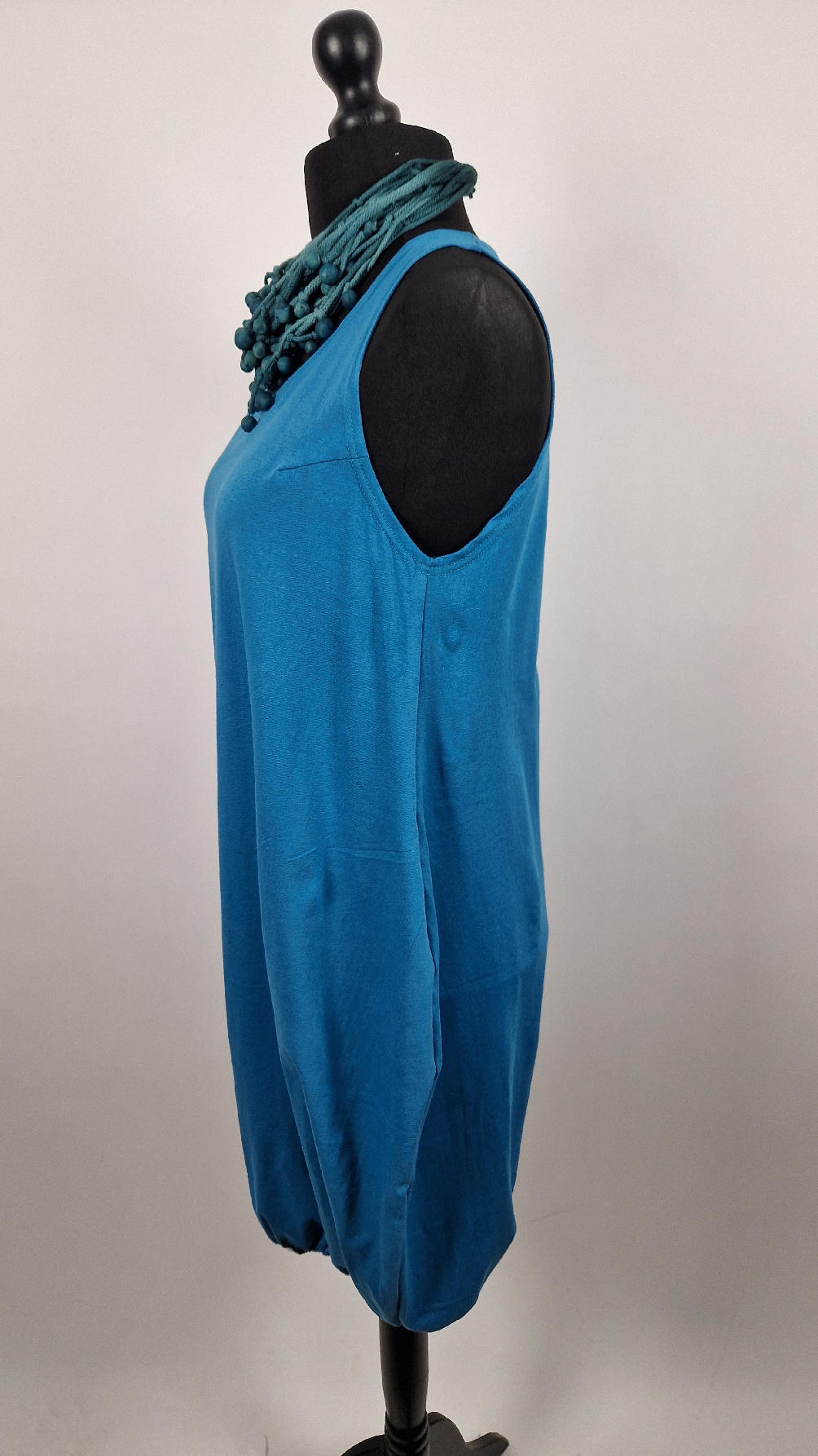 …taka jak ta moja idealna, ulubiona sukienka, która bardzo często, a właściwie codziennie jest bazą do moich wszystkich stylizacji, ale turkusowa . Zakrywa brzuch, a zazwyczaj chcemy go choć trochę zamaskować, chowa biodra, ale jeśli chcesz , możesz ją podciągnąć i zrobić bluzkę lub tunikę, wszyta na dole gumka, na pewno będzie się trzymać tu, gdzie chcesz…Sukienka jest idealna do wyeksponowania biżuterii, możesz do niej założyć wszystkie wisiory i naszyjniki i kolczyki…Możesz ją założyć oczywiście solo, jest idealna! Na tą kieckę możesz zarzucić katanę, otulak, szalik- bo to jest po prostu sukienka idealna do wszystkiego, na lato, na zimę, do teatru, na wyjazd, do samolotu- sama sprawdź!