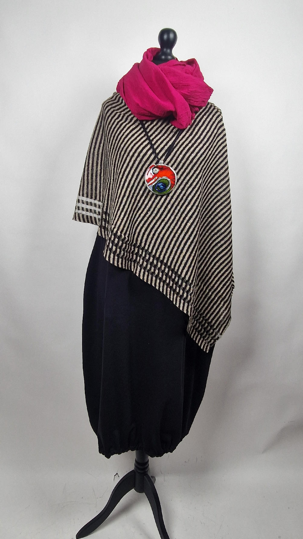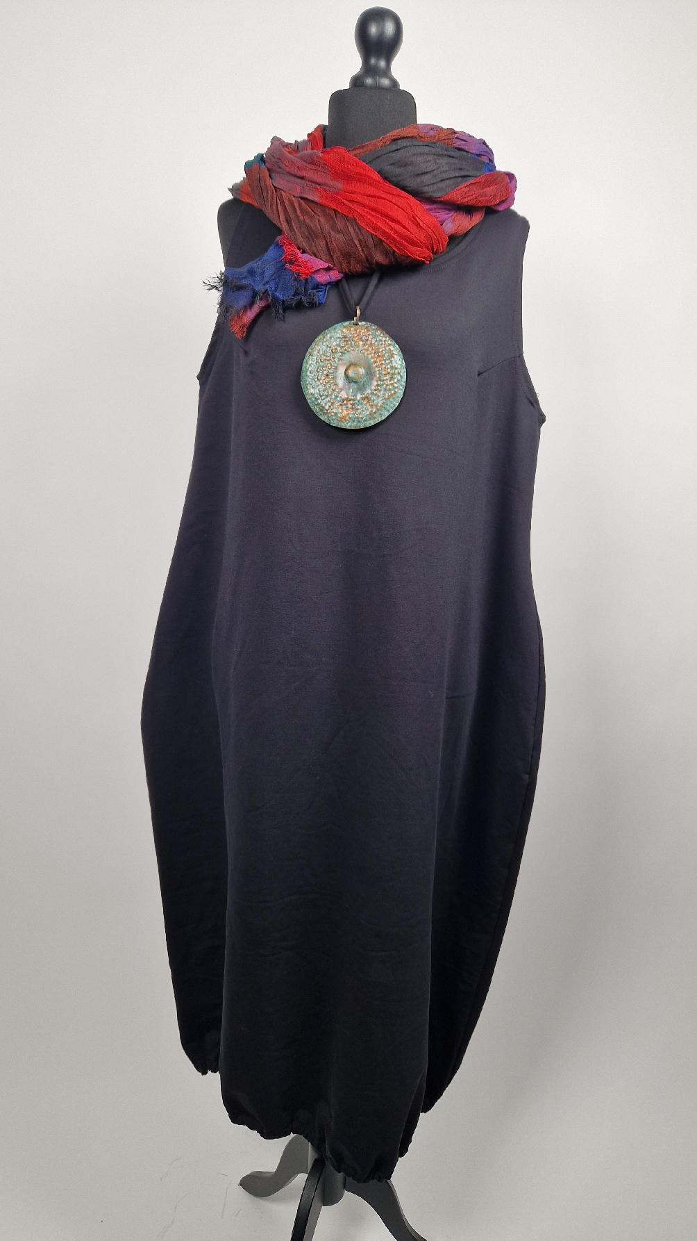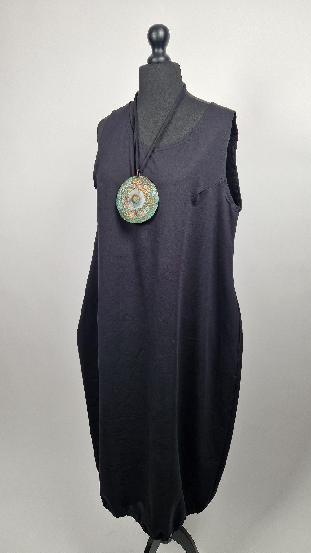 Taka jak moja idealna, ulubiona sukienka, Zuza, która bardzo często, a właściwie codziennie jest bazą do moich wszystkich stylizacji , ale ta jest dłuższa ma 120 cm, od ramienia do dołu. Zakrywa brzuch, a zazwyczaj chcemy go choć trochę zamaskować, chowa biodra, ale jeśli chcesz , możesz ją podciągnąć i zrobić bluzkę lub tunikę, wszyta na dole gumka, na pewno będzie się trzymać tu, gdzie chcesz…Sukienka jest idealna do wyeksponowania biżuterii, możesz do niej założyć wszystkie wisiory i naszyjniki i kolczyki…Możesz ją założyć oczywiście solo, jest idealna! Na tą czarną kieckę możesz zarzucić katanę, otulak, szalik- bo to jest po prostu sukienka idealna do wszystkiego, na lato, na zimę, do teatru, na wyjazd, do samolotu- sama sprawdź!
