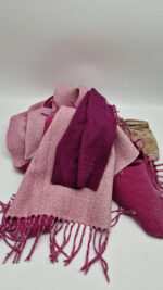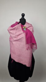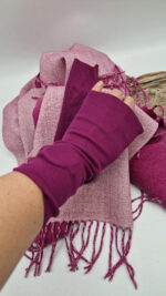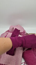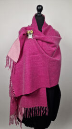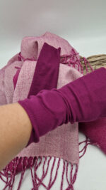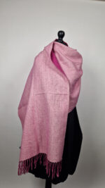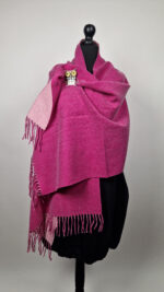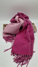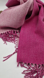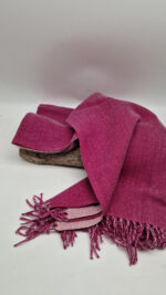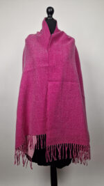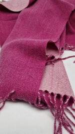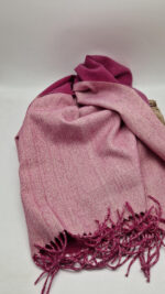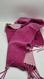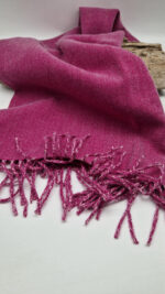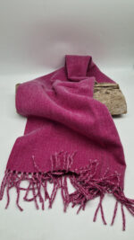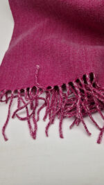 Bardzo duży, bardzo miękki, amarantowy, dwustronny, gładki, elegancki i ponadczasowy szal w cudnym kolorze z długalaśnymi frędzlami. Ciepły, miły i niegryzący. Piękny! Taki, którym możesz się zawinąć i otulić.