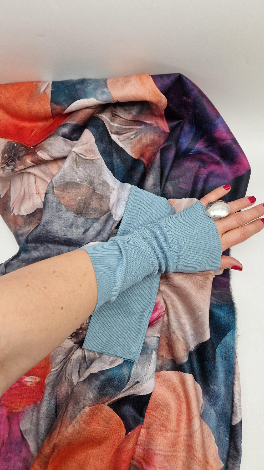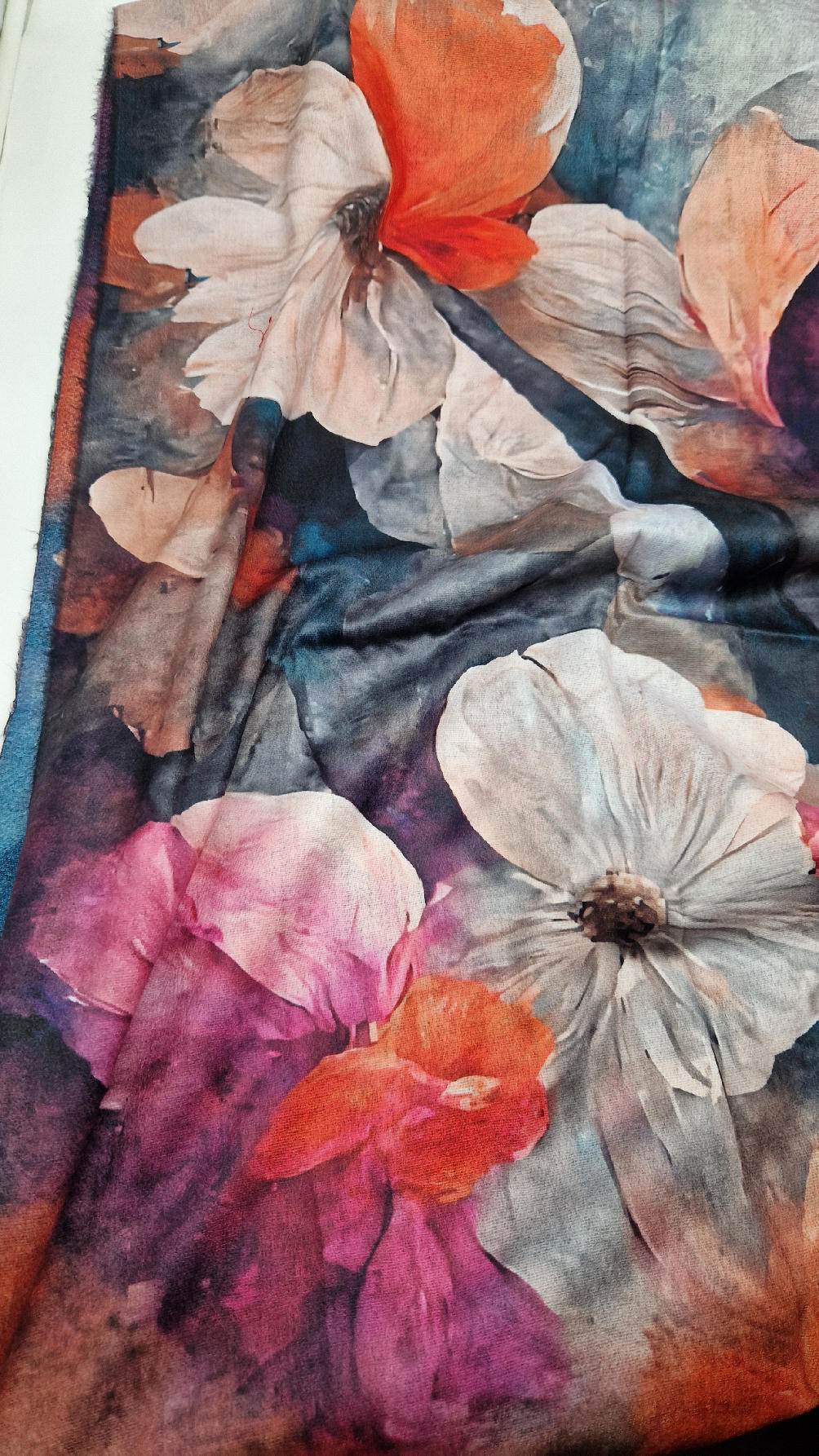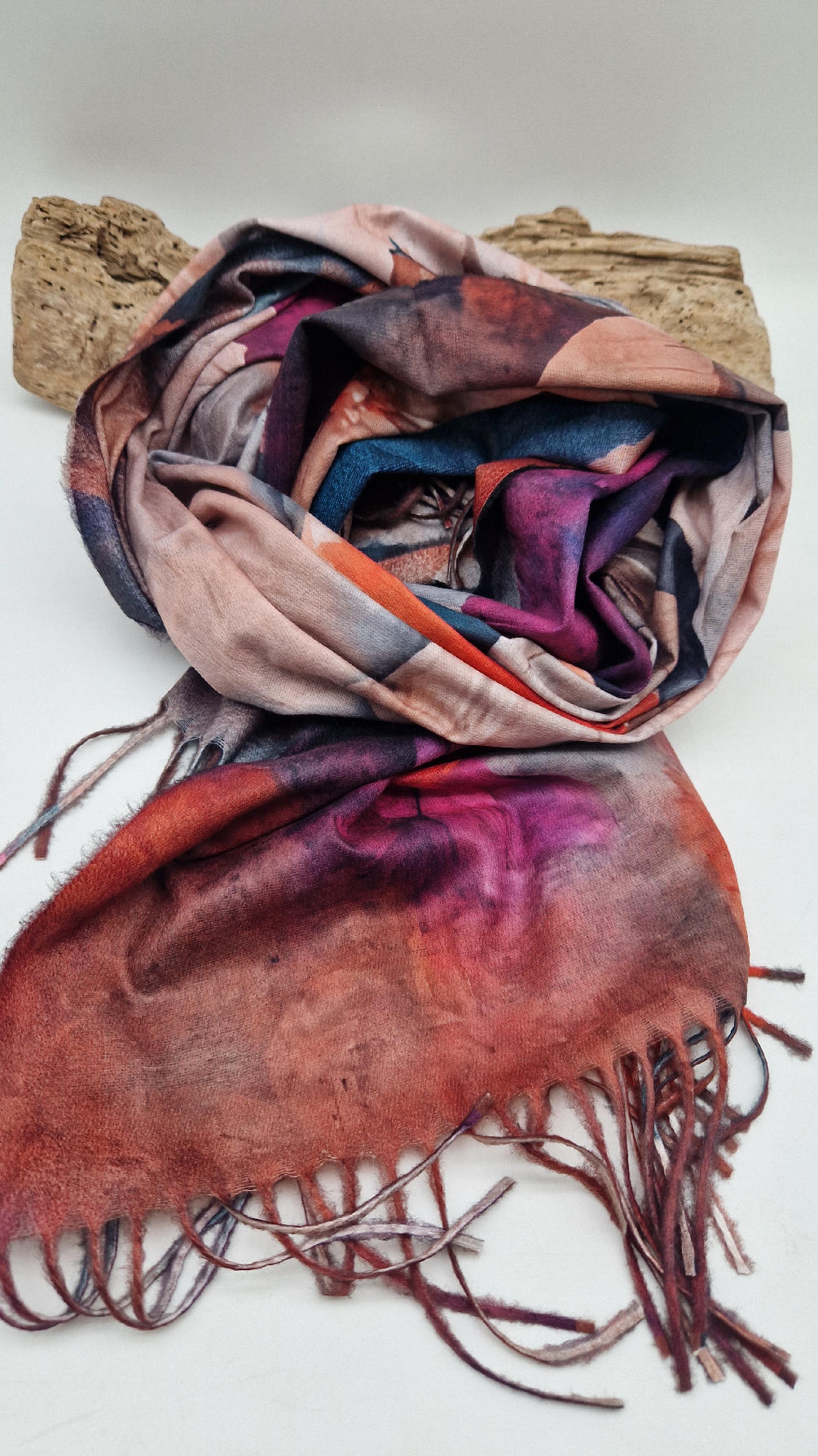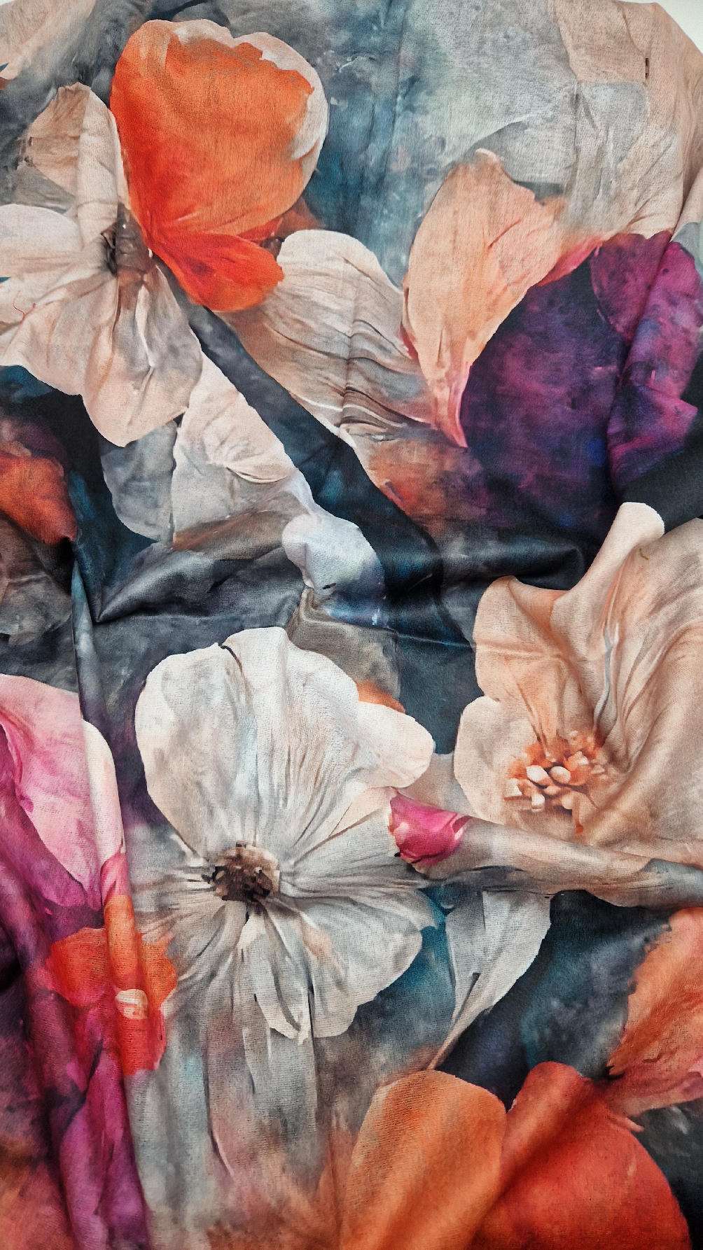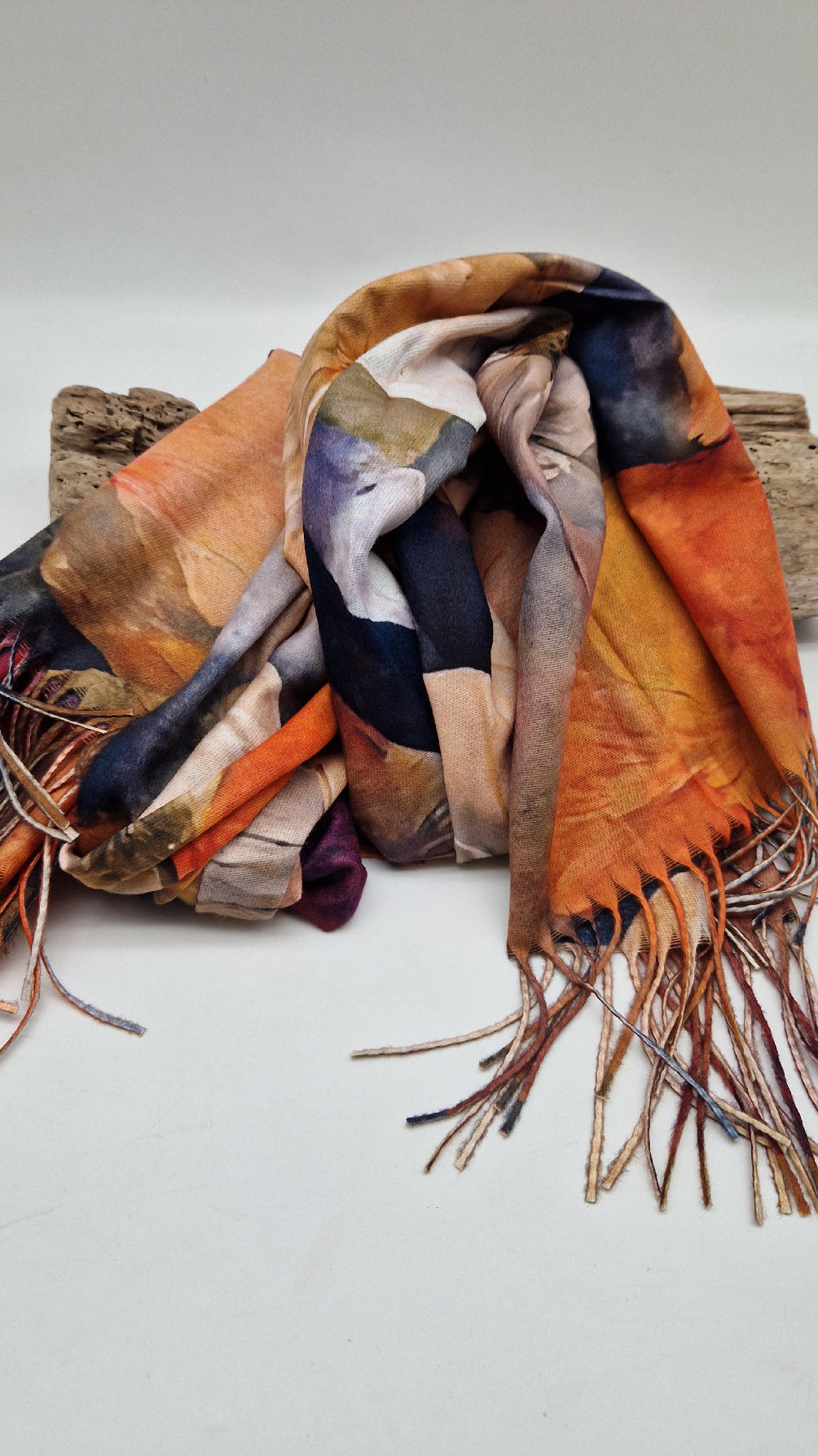 Duży, bardzo miękki, kaszmirowy, kolorowy, ale taki dystyngowanie….piękny i elegancki szal w kwiaty . Szalik jest super miękki, niegryzący, nie taki bardzo gruby..taki idealny . Świetnie zestawione kolory, energetyczne i eleganckie zarazem.