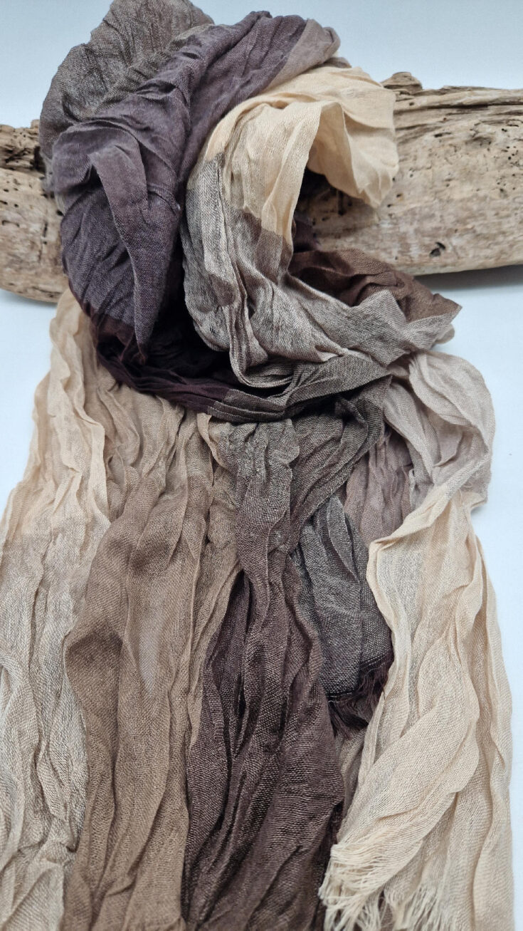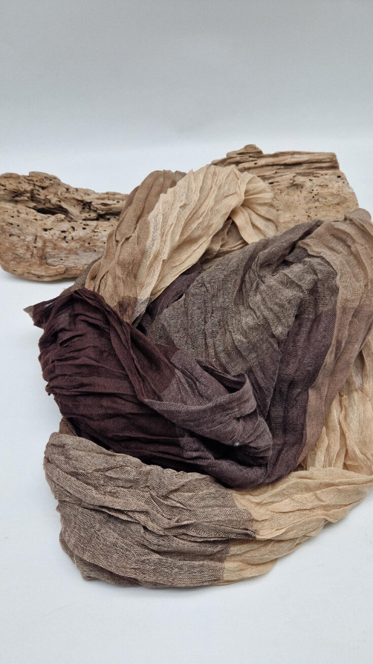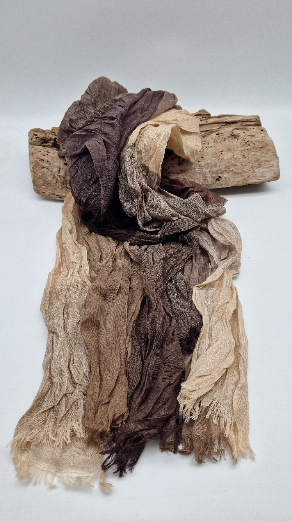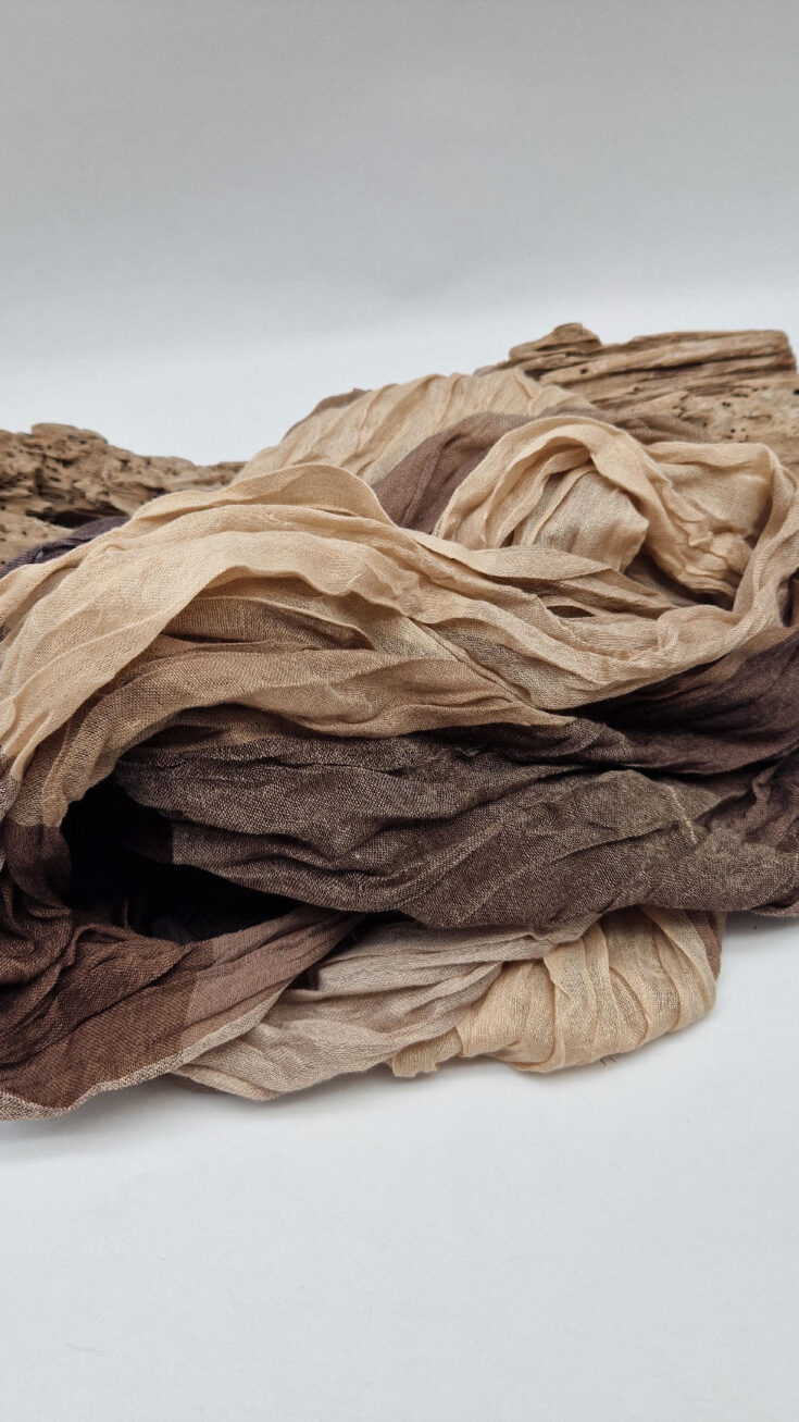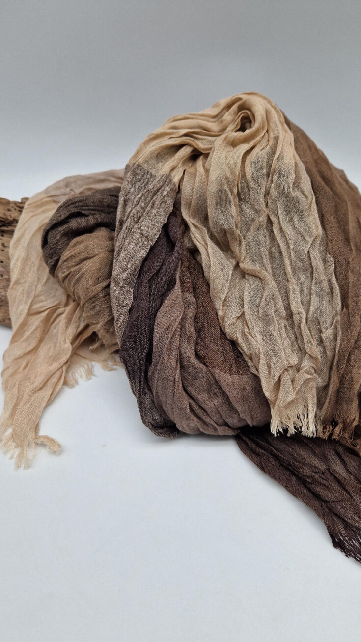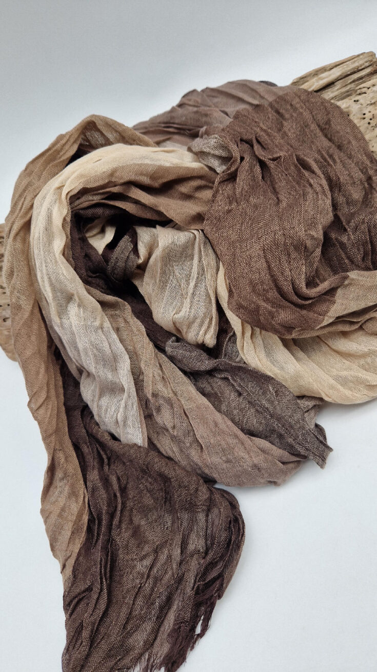 Duży, bardzo miękki, ,,pognieciony” szal w lekką, dużą kratkę . beżowo- brązowy, ale taki zamglony, taki szkocko-tajemniczy, taki dla rudzielca, lub jesieniary. Ponadczasowy, elegancki, taki…z włoskim sznytem…dla Ciebie, a może dla eleganckiego mężczyzny …?