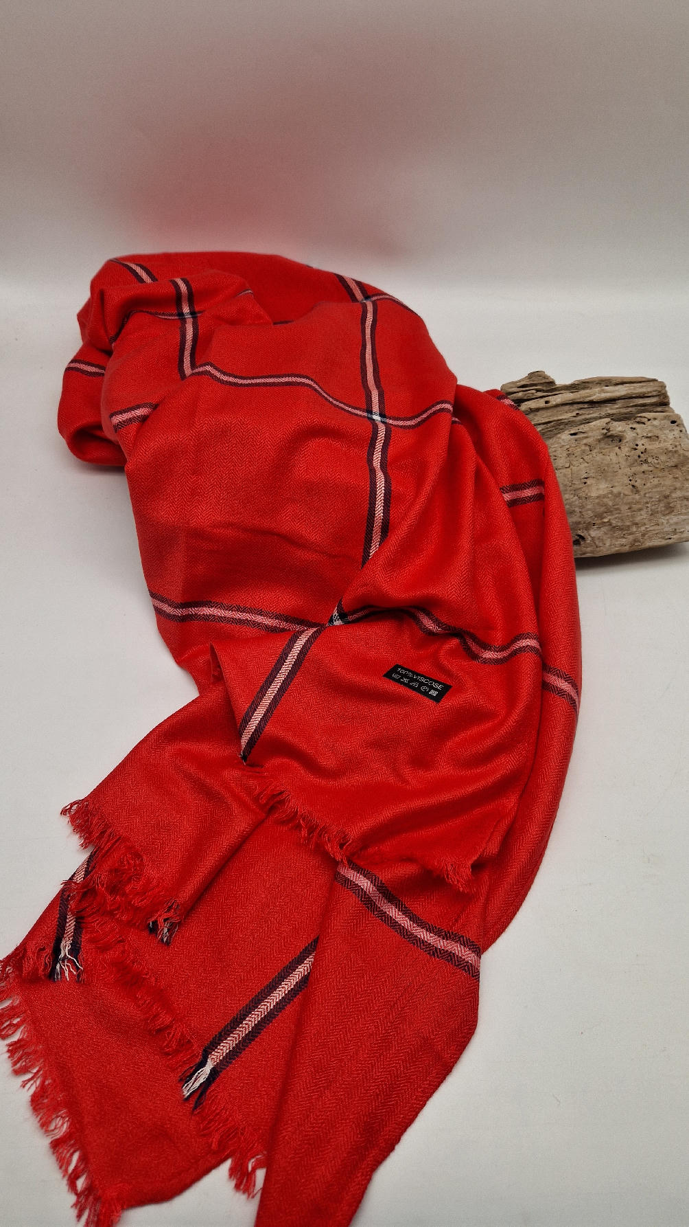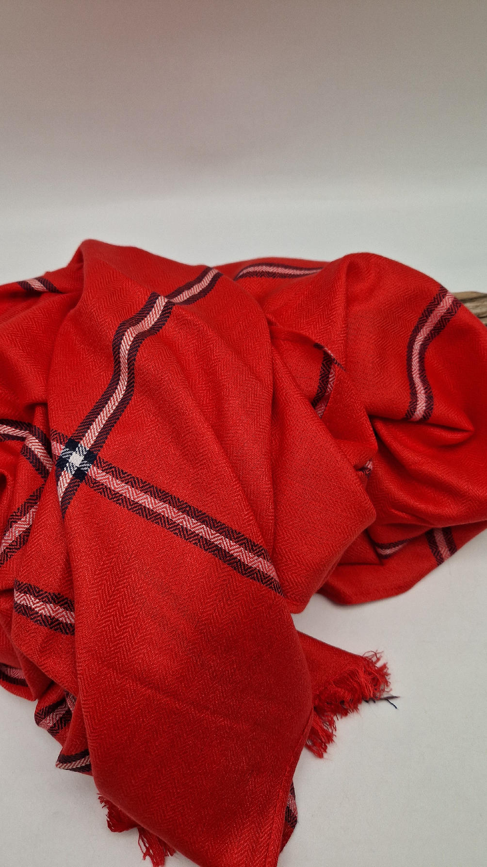 Duży, bardzo miękki, megaenergetyczny szal w lekką, dużą kratkę . Pomarańczowo-czerwony, ognisty, energetyczny, ponadczasowy, elegancki, taki…z włoskim sznytem…dla Ciebie, a może dla eleganckiego mężczyzny …?