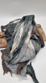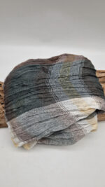 Duży, bardzo miękki, ,,pognieciony” szal w lekką, dużą kratkę . beżowo- szaro-zielony, ale taki zamglony, taki szkocko-tajemniczy, taki dla rudzielca, lub jesieniary. Ponadczasowy, elegancki, taki…z włoskim sznytem…dla Ciebie, a może dla eleganckiego mężczyzny …?