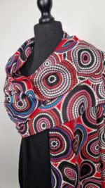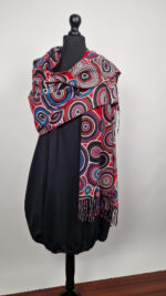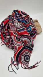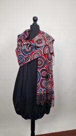 Duży, bardzo miękki, kaszmirowy, czerwony, elegancki szal w kolorowe mandale. Szalik jest grubszy, super miękki, niegryzący, nie taki bardzo gruby..taki idealny . Świetnie zestawione kolory, energetyczne i eleganckie zarazem.
