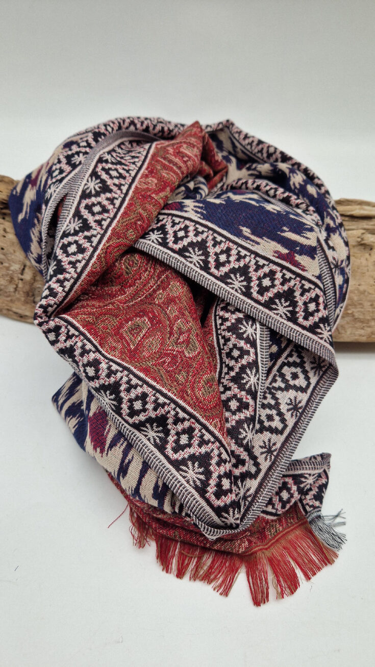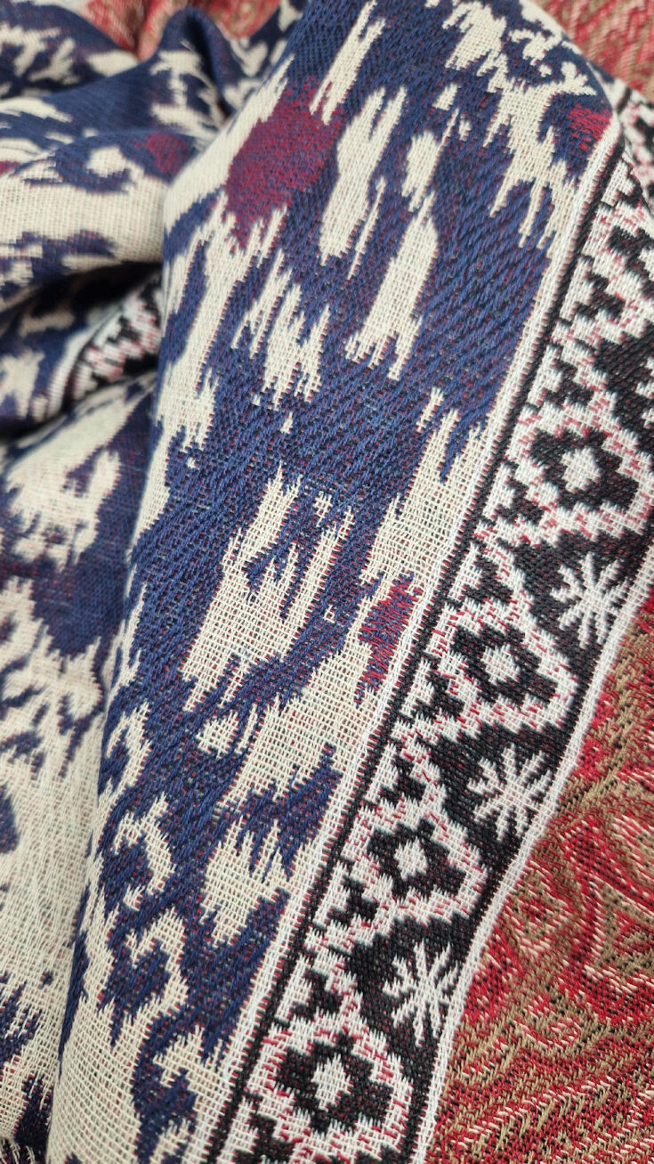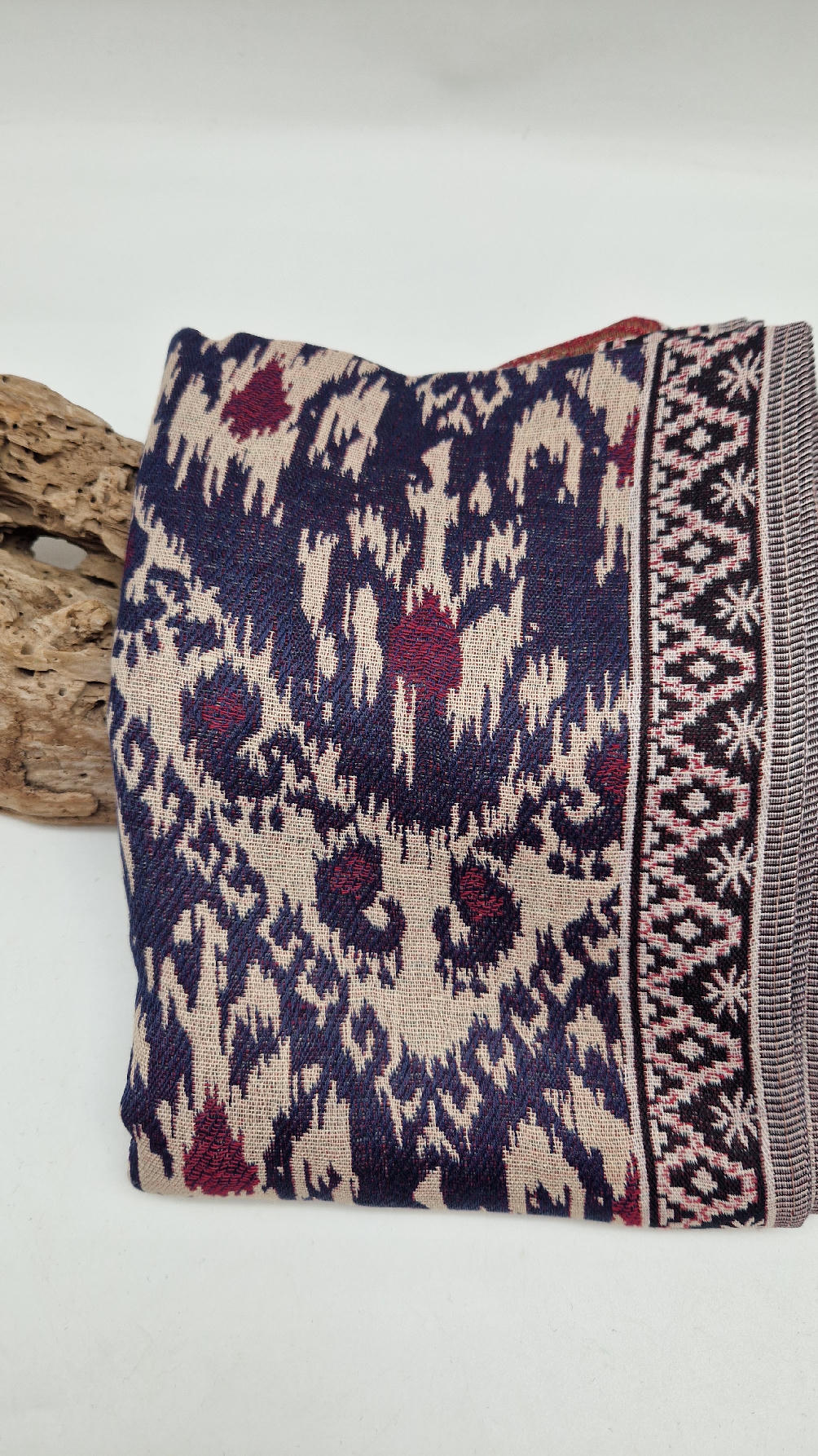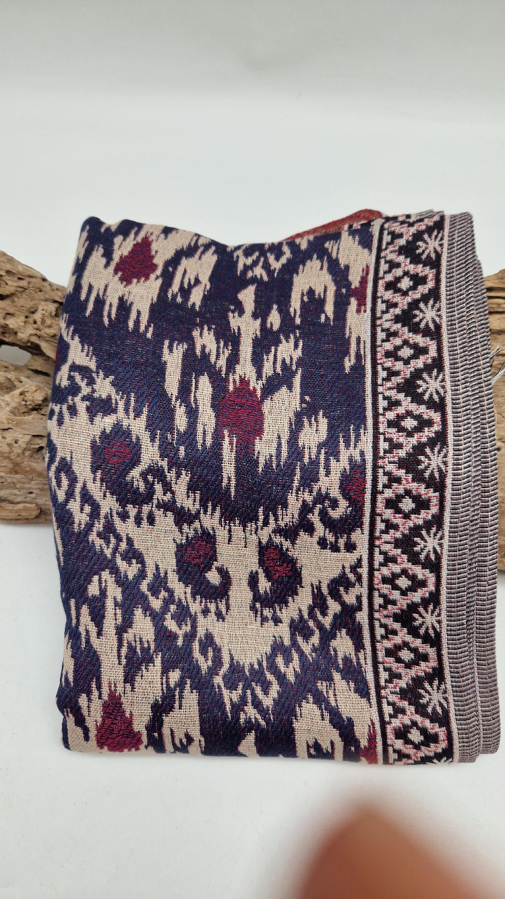 Duży miękki, piękny, kolorowy, cudny wręcz, egzotyczny ciut,  piękny szal we wzory , elegancki i ponadczasowy kaszmirowy szal Ciepły, miły i niegryzący.