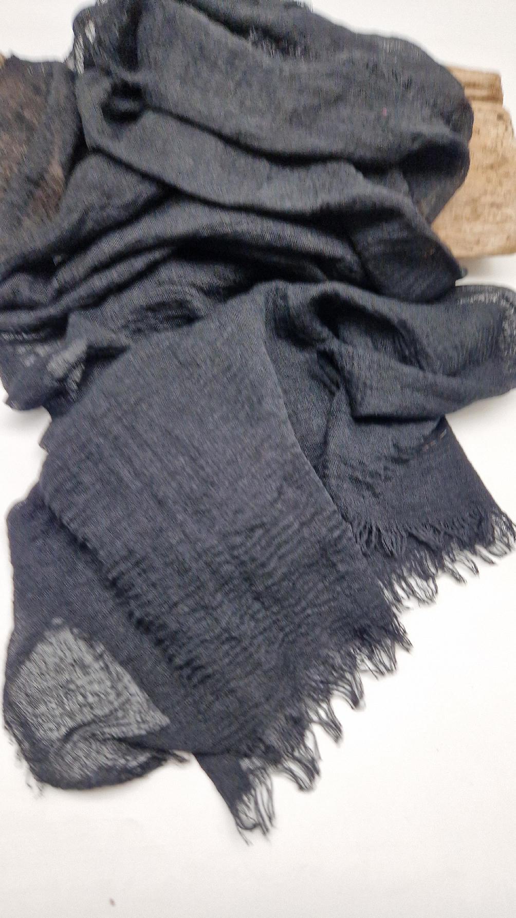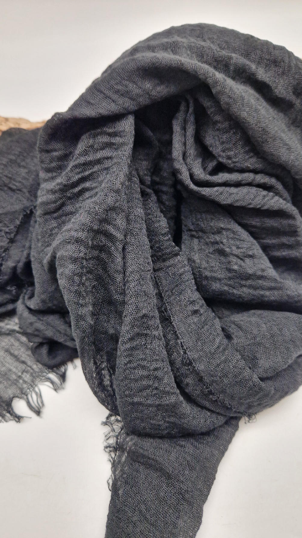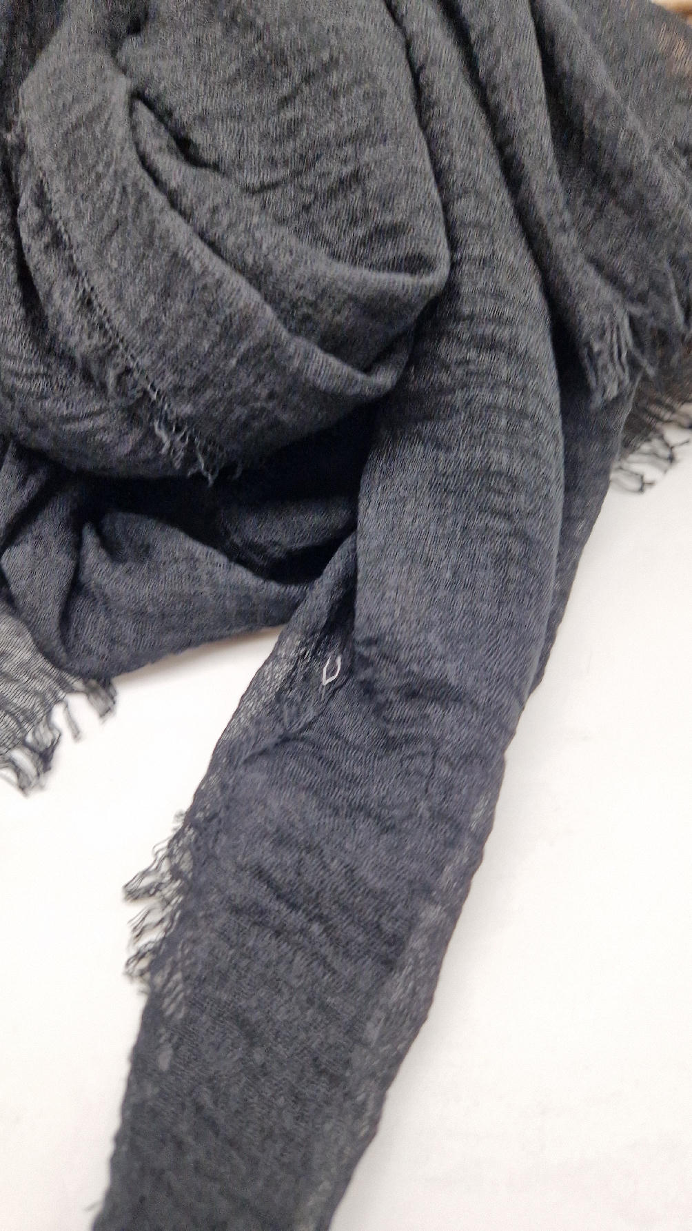 Duży pognieciony szalik, taki idealny do wszystkiego… czarny, gładki szalik do założenia na głowę z pomocą gumki też…; zawsze możesz połączyć go z innym , na przykład w kwiaty, , tak ja robię bardzo często, tworząc 0lbrzymi szal i w kwiaty :)