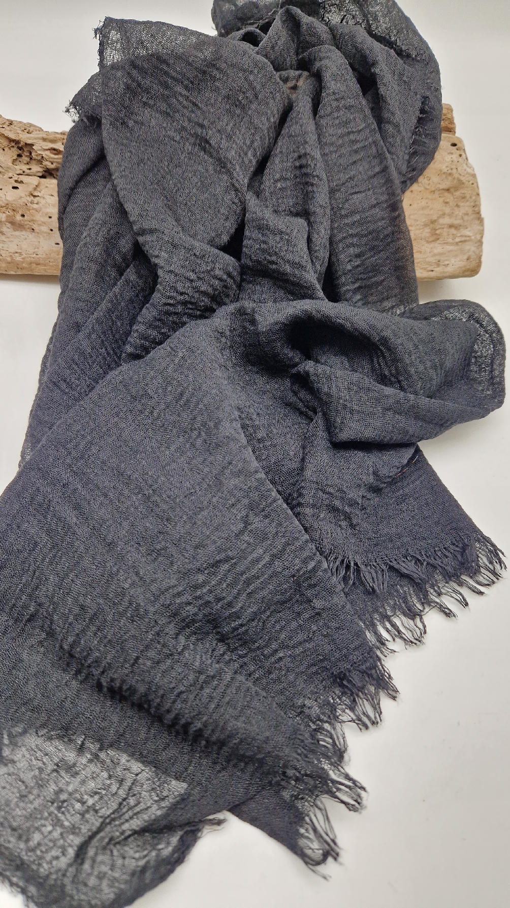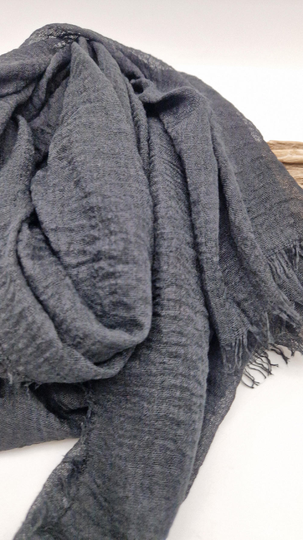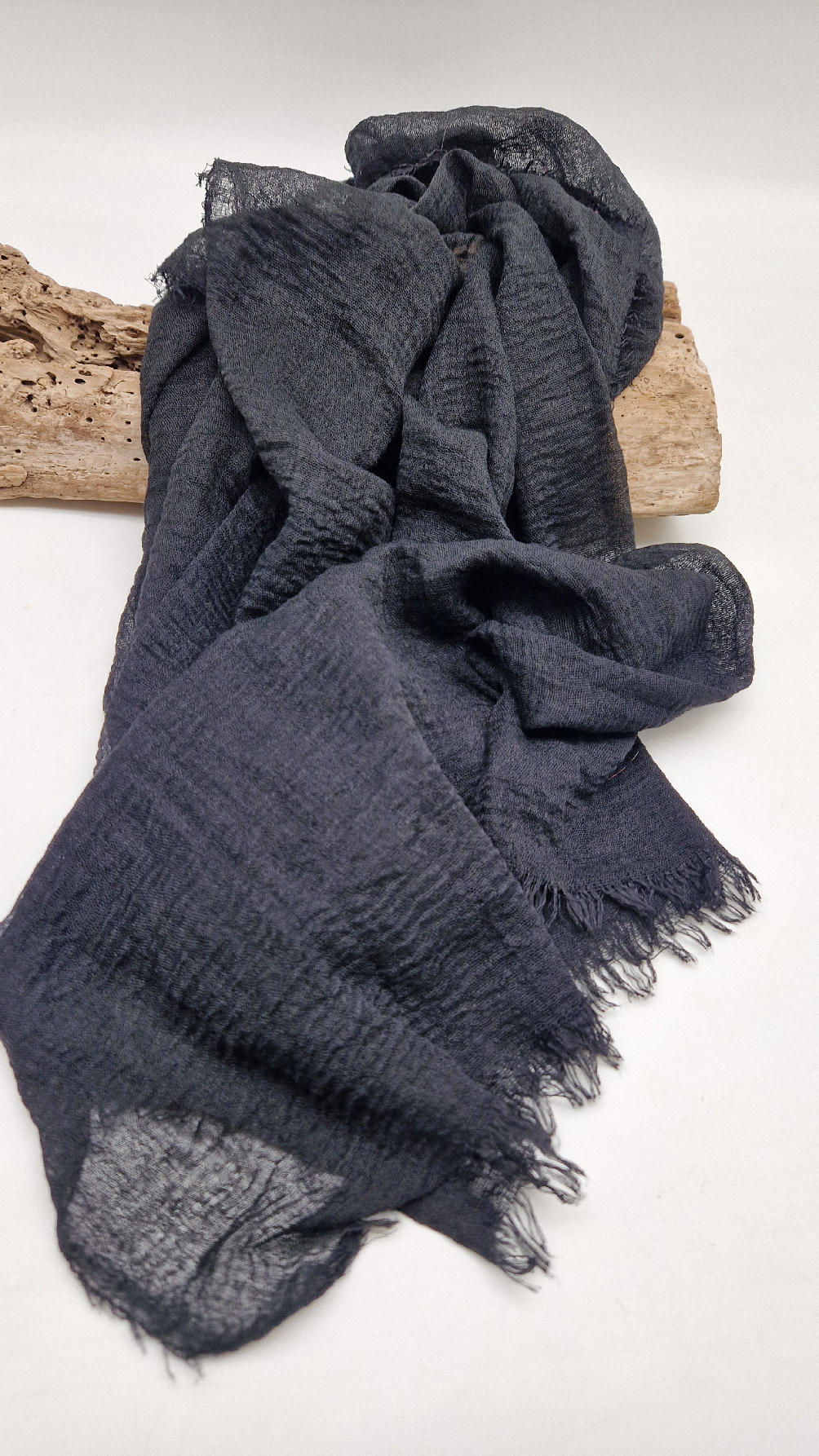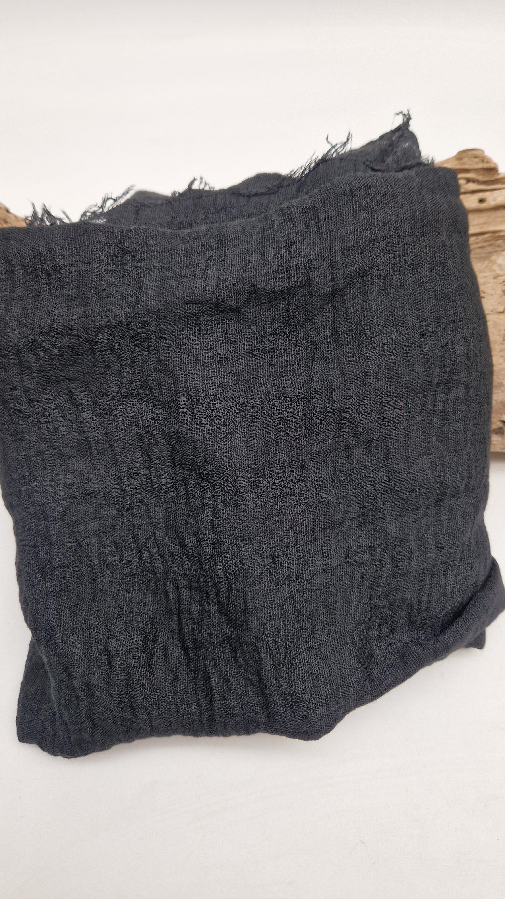 Duży pognieciony szalik, taki idealny do wszystkiego… czarny, gładki szalik do założenia na głowę z pomocą gumki też…; zawsze możesz połączyć go z innym , na przykład w kwiaty, , tak ja robię bardzo często, tworząc 0lbrzymi szal i w kwiaty :)