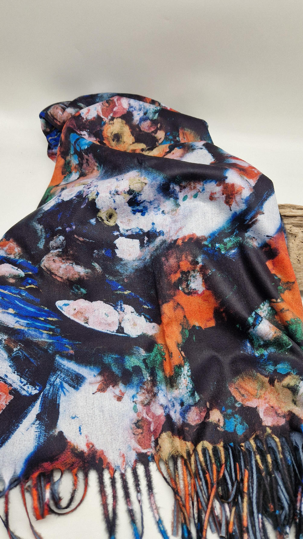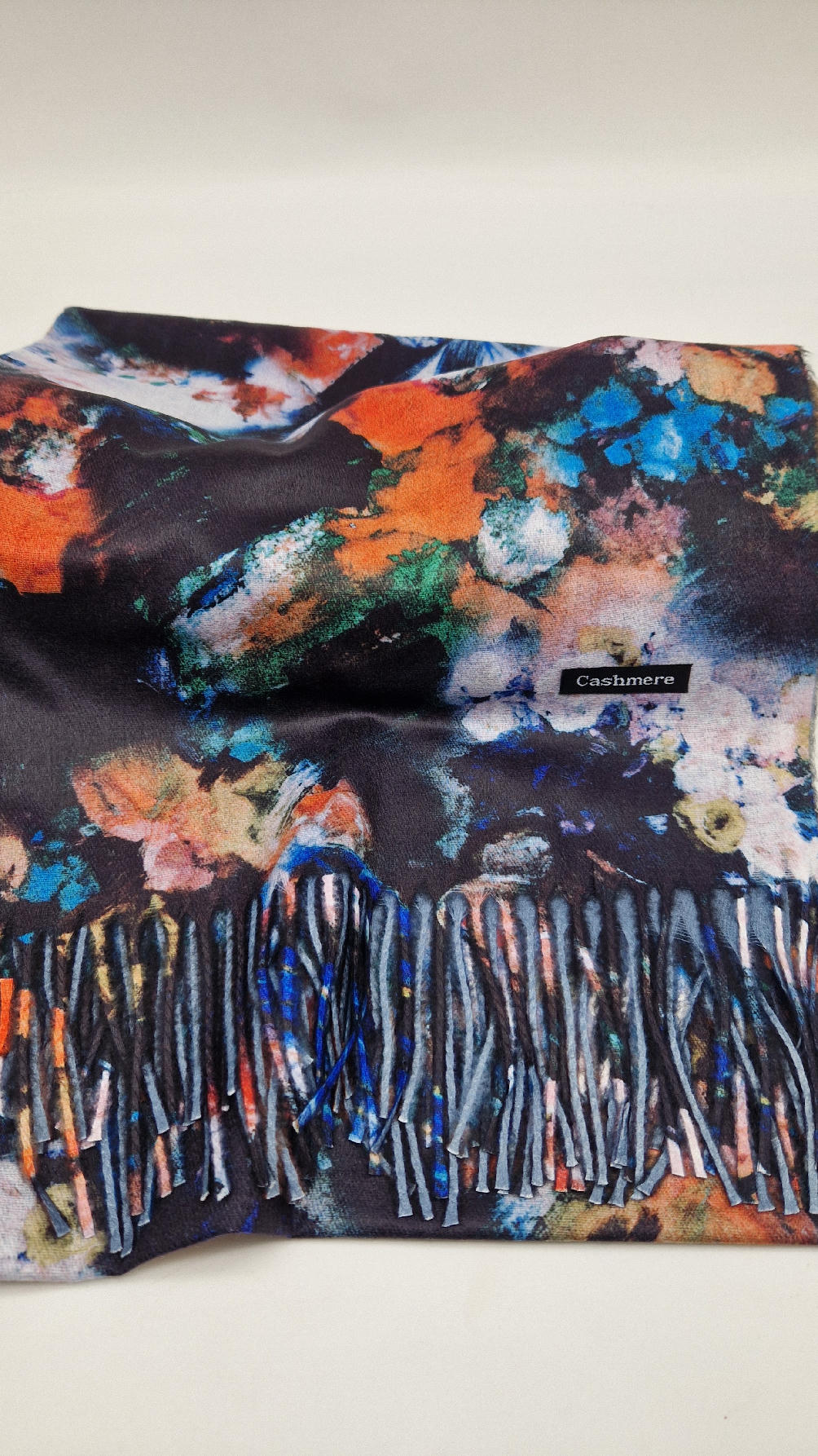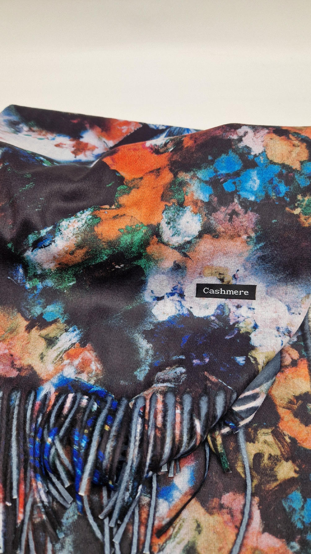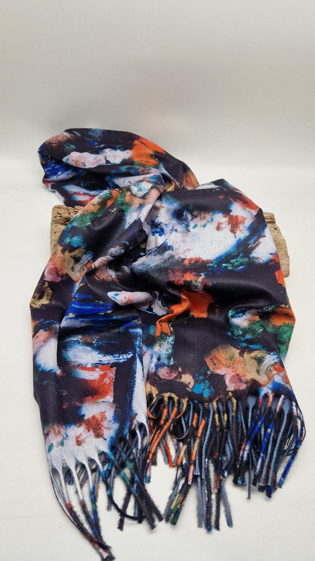 Duży, bardzo miękki, kaszmirowy, megakolorowy, elegancki szal . Szalik jest super miękki, niegryzący, nie taki bardzo gruby..taki idealny . Świetnie zestawione kolory, energetyczne i eleganckie zarazem.