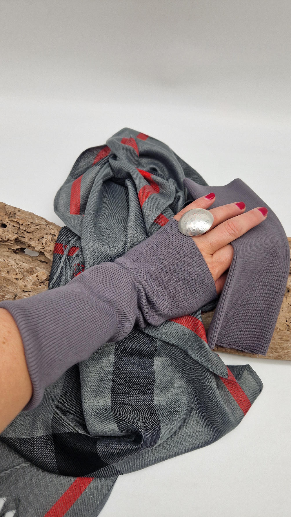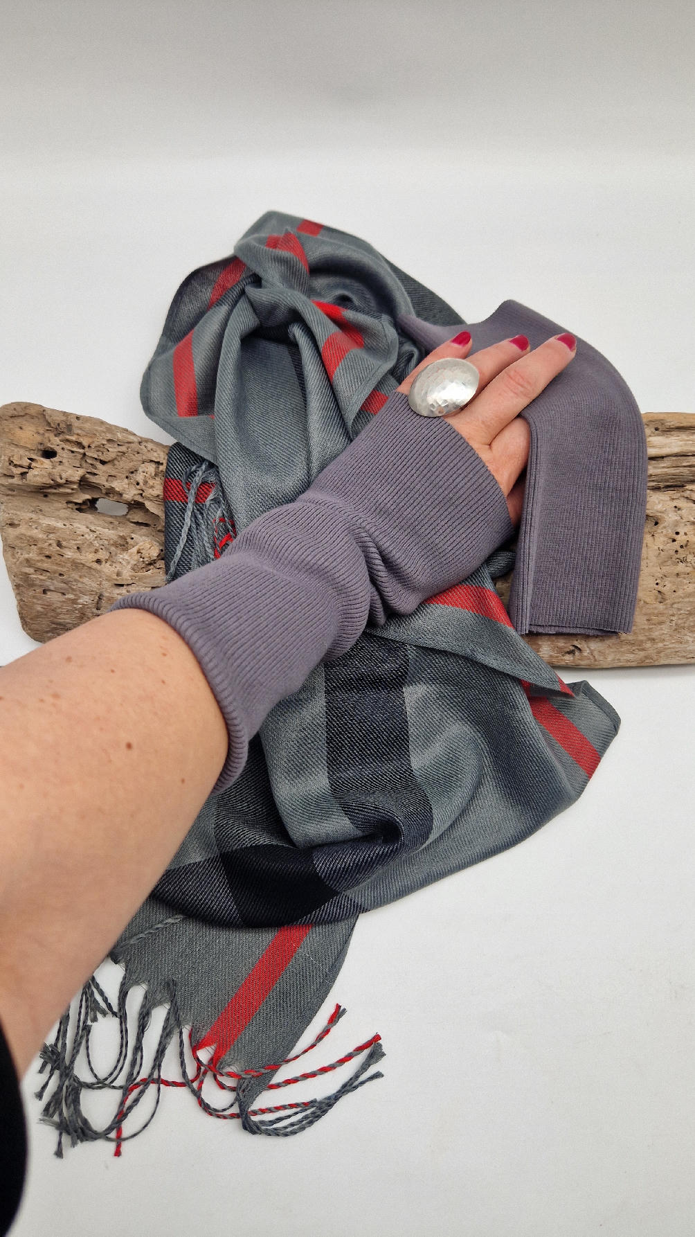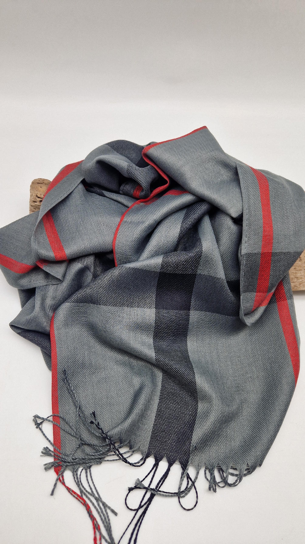 Duży, mega miękki, klasyczny szary szal w kratę . Cudny, zwariowany i ponadczasowy, taki do wszystkiego…elegancki, taki…z włoskim sznytem…dla Ciebie, a może dla eleganckiego mężczyzny …? Świetnie pasują do niego czerwone ZARĘKAWKI