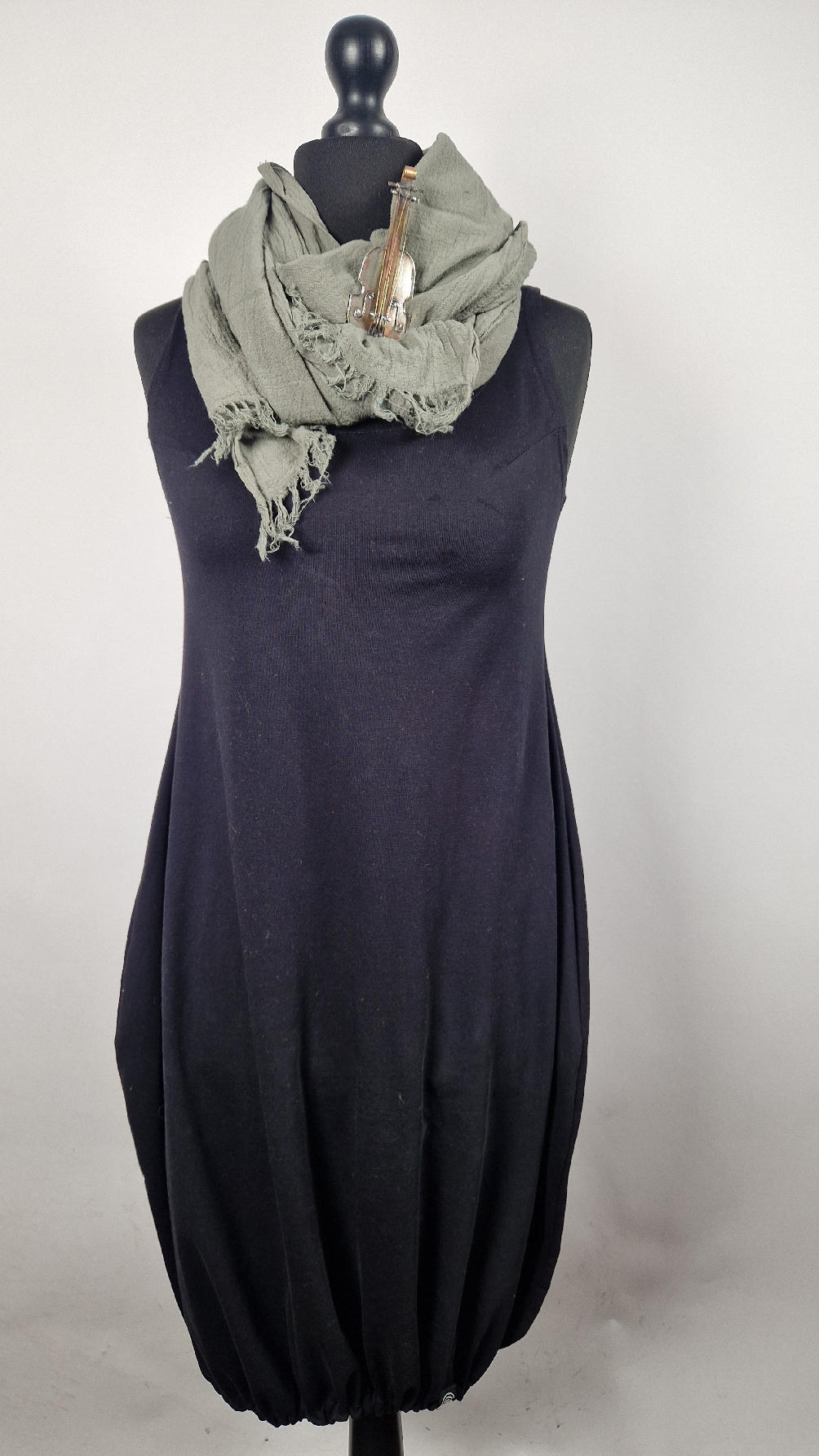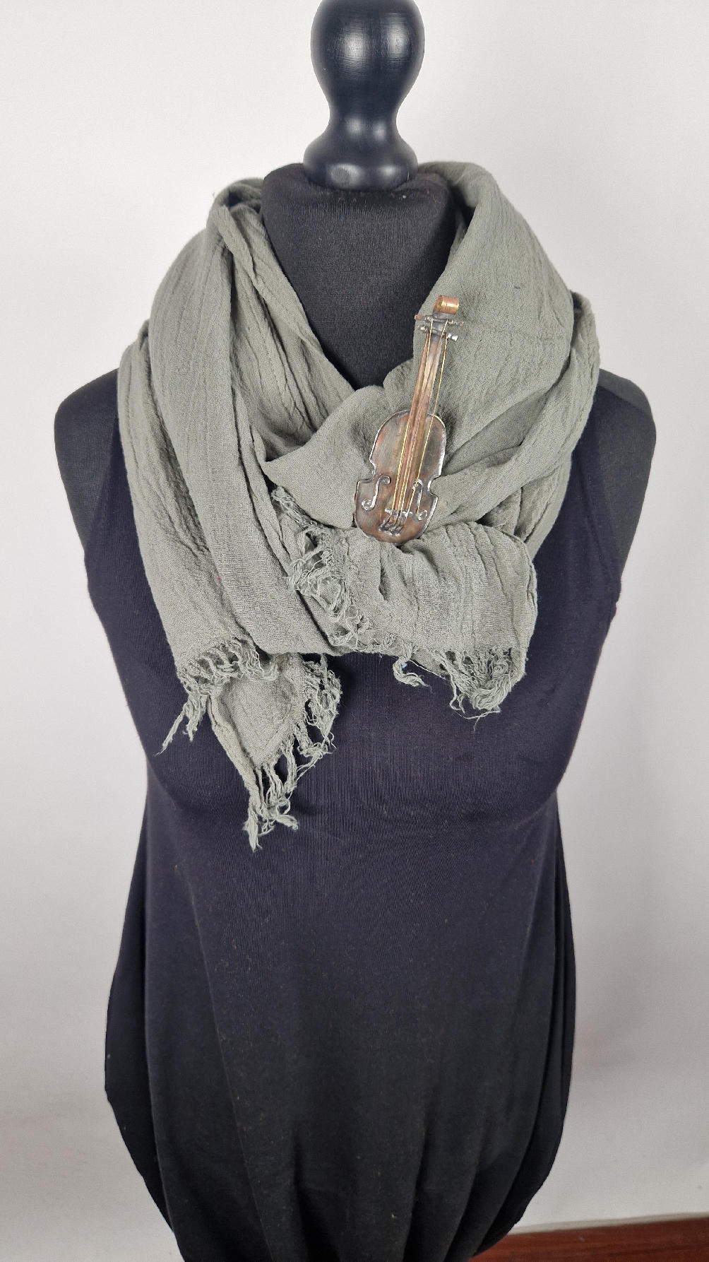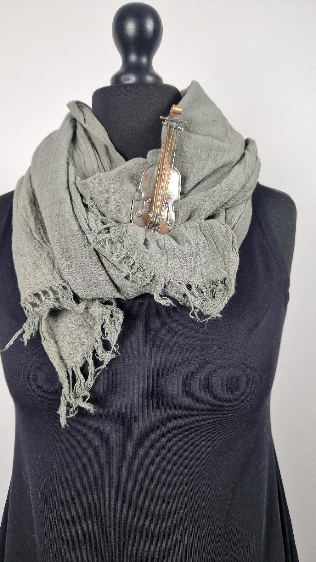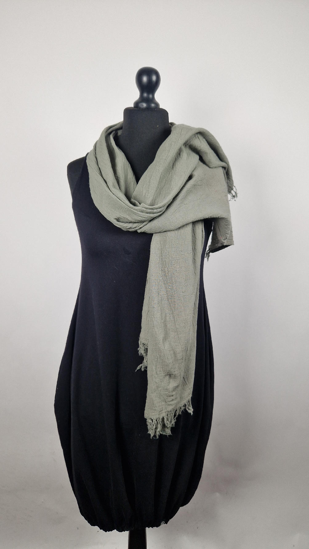 Duży, ręcznie robiony i farbowany szal z bawełny w eleganckim szaro-beżowym kolorze, pognieciony i zwariowany , z frędzlami .