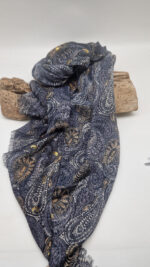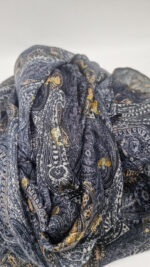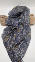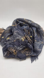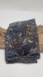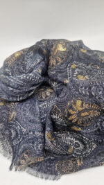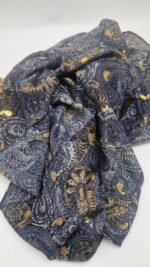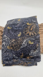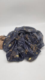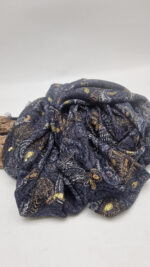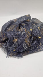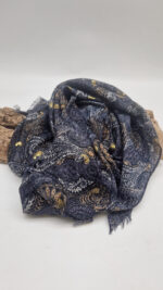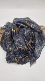 Duży, bardzo miękki, czarny, elegancki szal we wzory z odrobiną złota. Szalik jest grubszy ciut, taki idealny do katany, czy otulaka . Świetnie zestawione kolory, energetyczne i eleganckie zarazem, z lekkim, takim jedwabistym połyskiem.