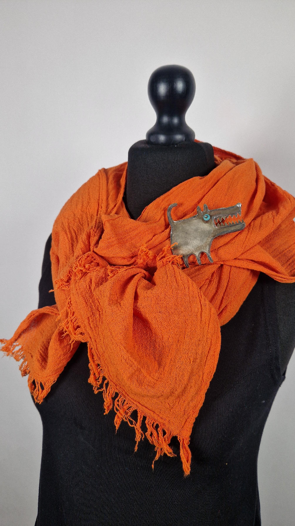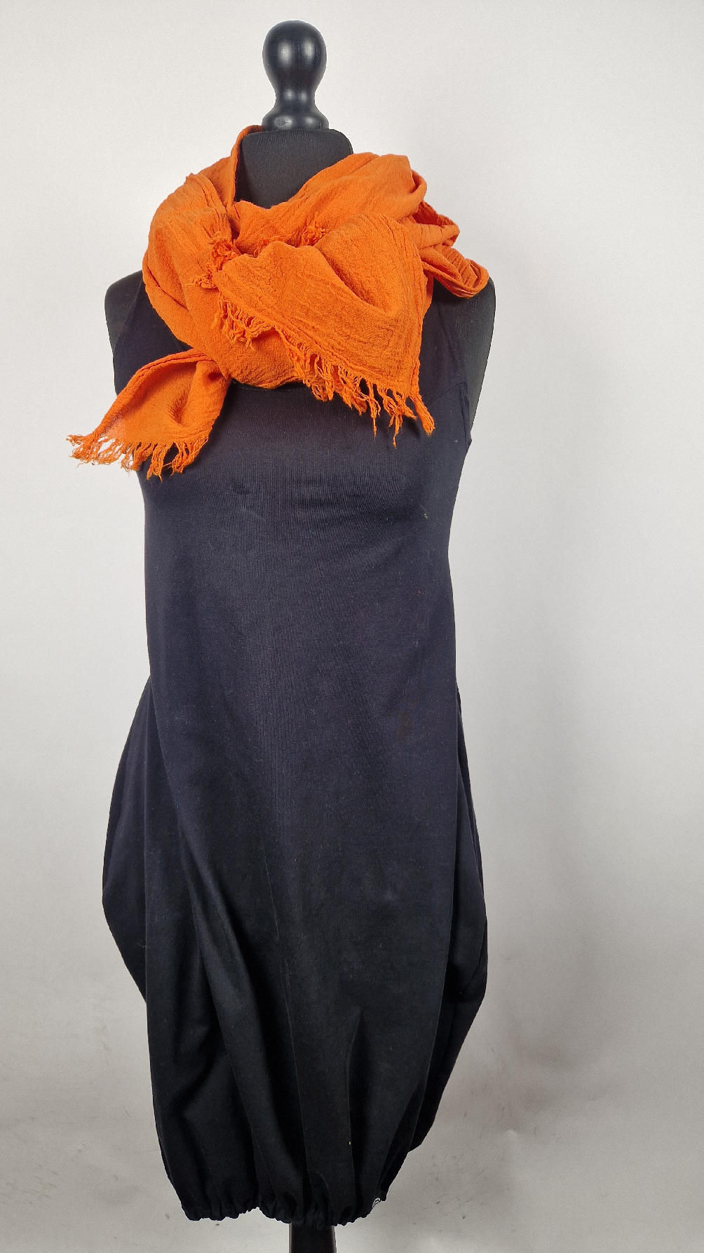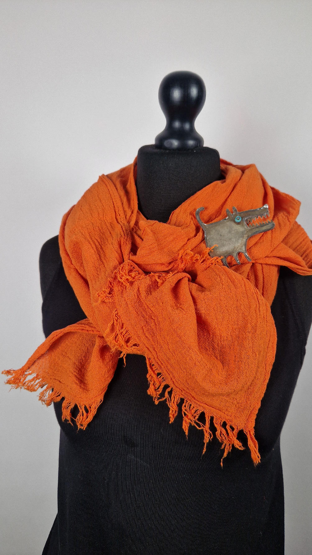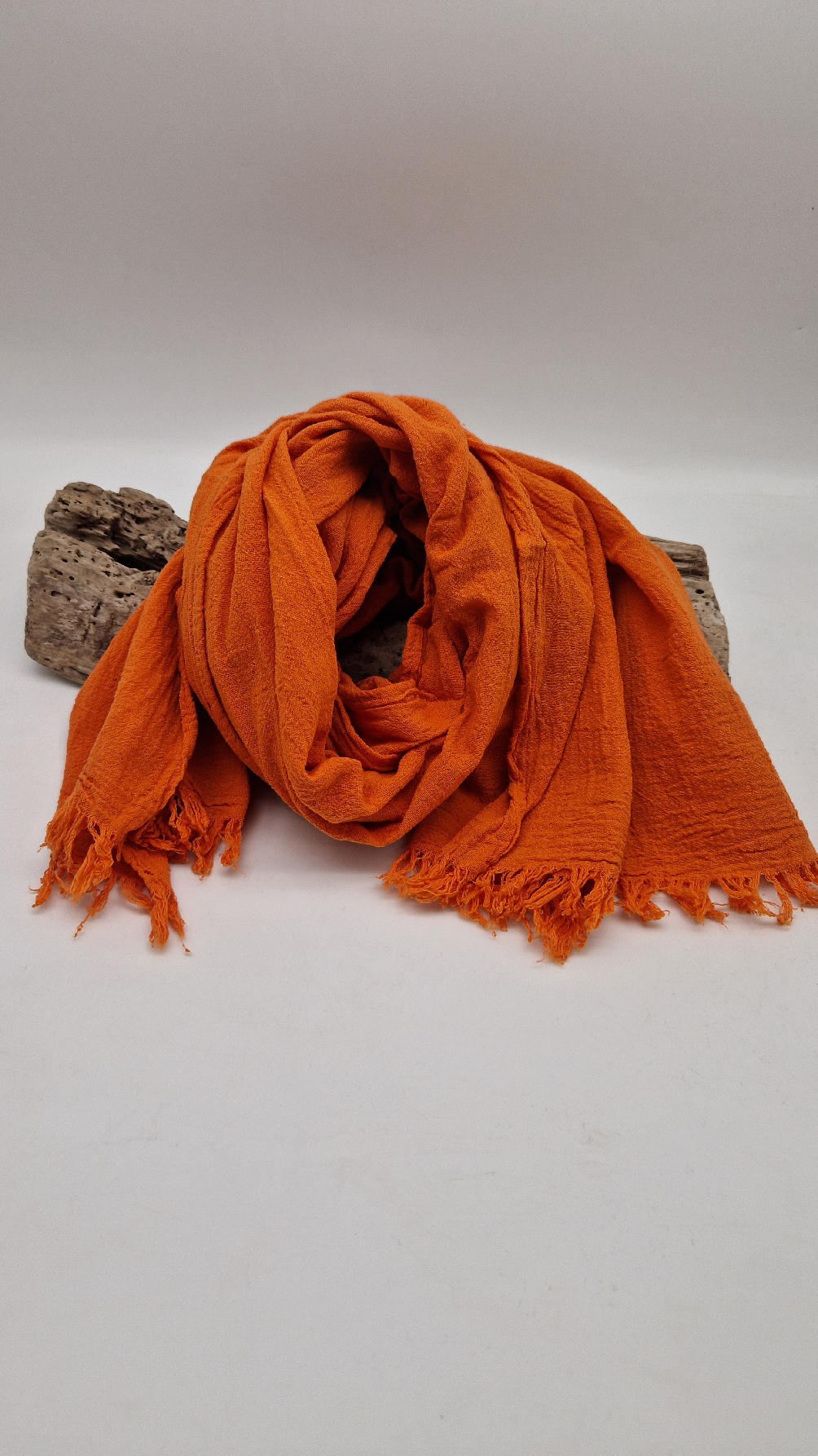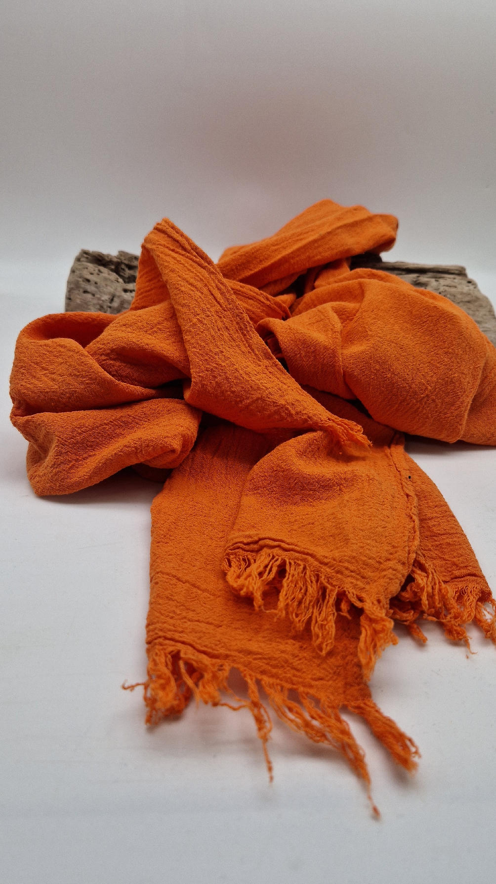 Duży, piękny szal z bawełny w bardzo głębokim kolorze, bardzo nasycony pomarańczowy pognieciony i zwariowany , z frędzlami .