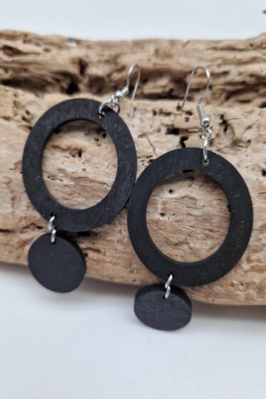 Śliczne kolczyki zrobione z alpaki, składające się z dwóch połączonych elementów liścia i owocu na cudnie wygiętym ogonku.