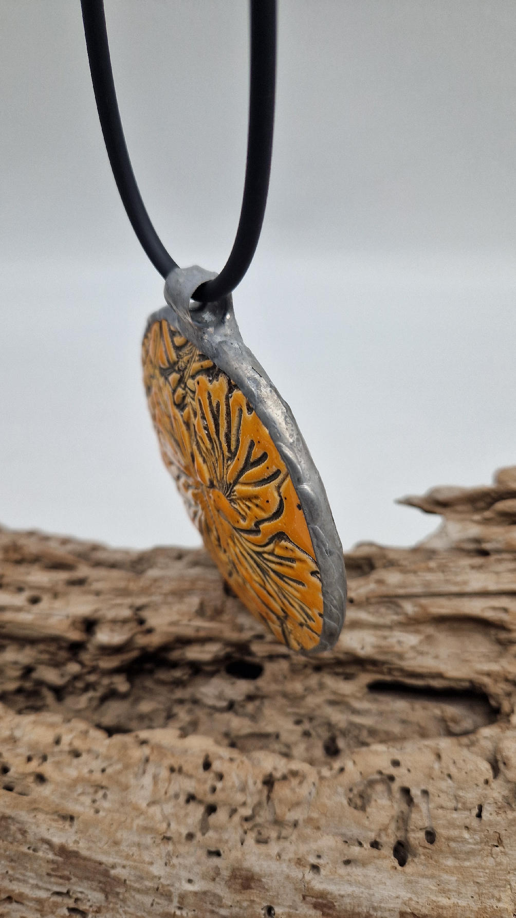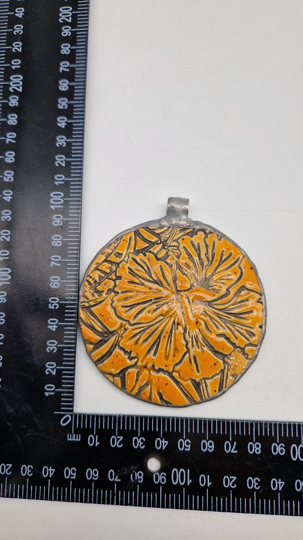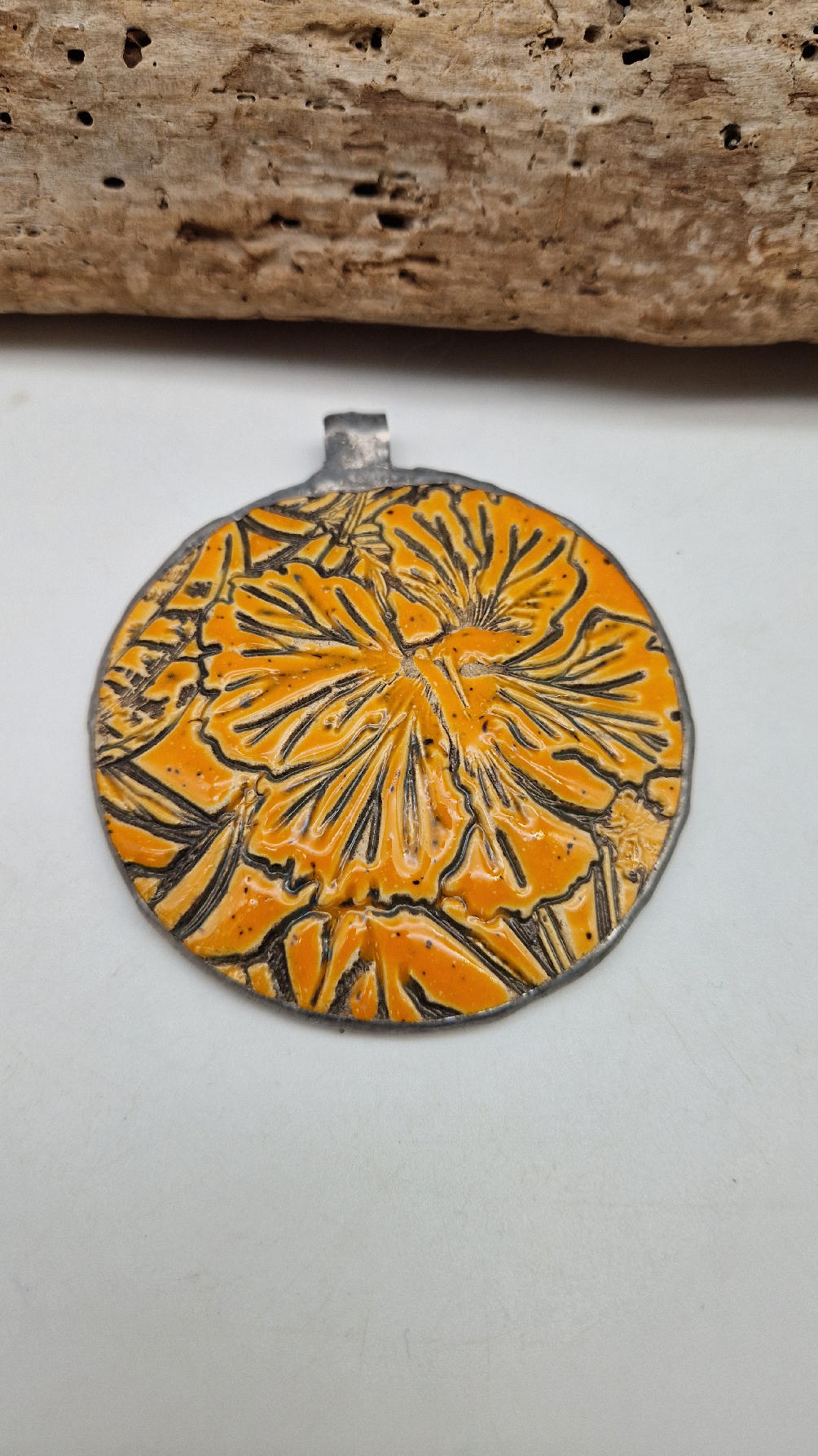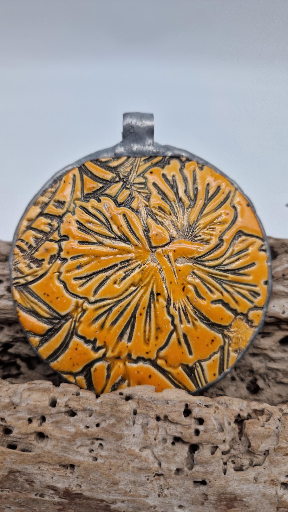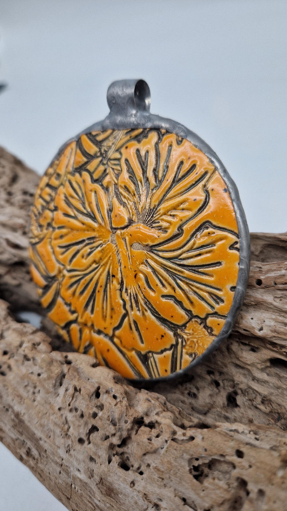 Cudny, ceramiczny intensywnie żólty, duży wisior, ceramika oprawiona w metal, która będzie piękną dekoracją Twojego dekoltu.