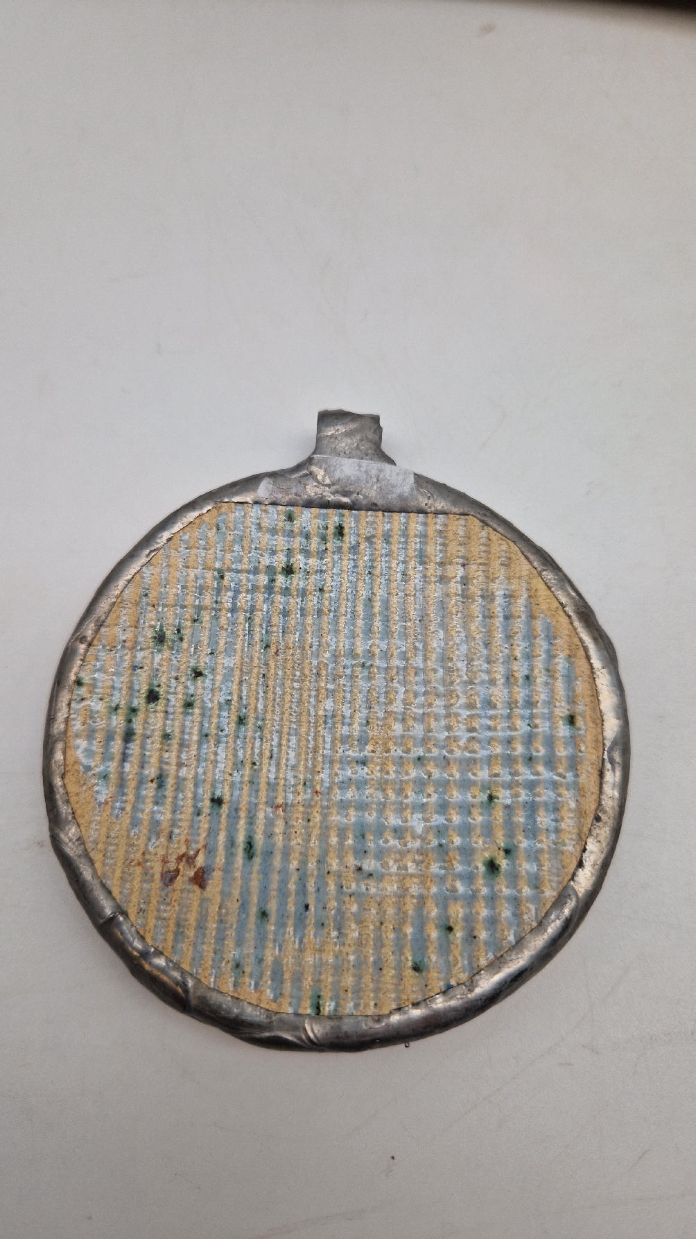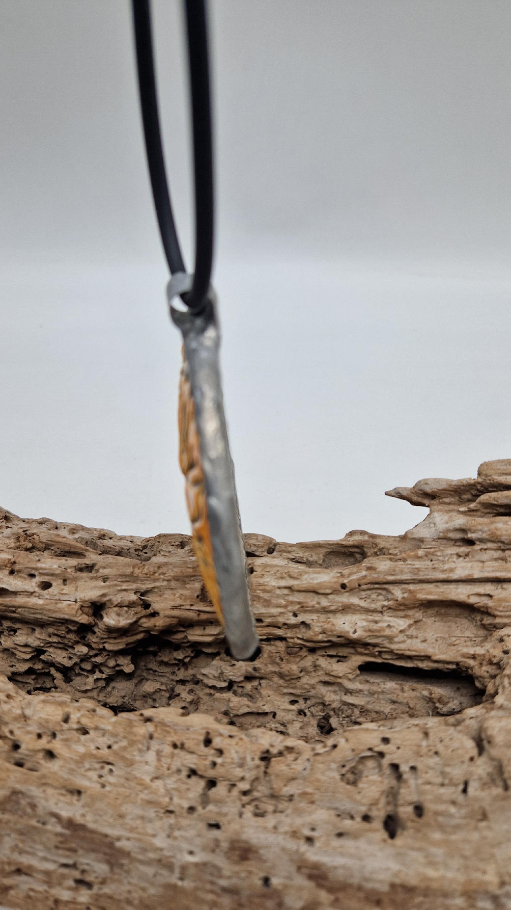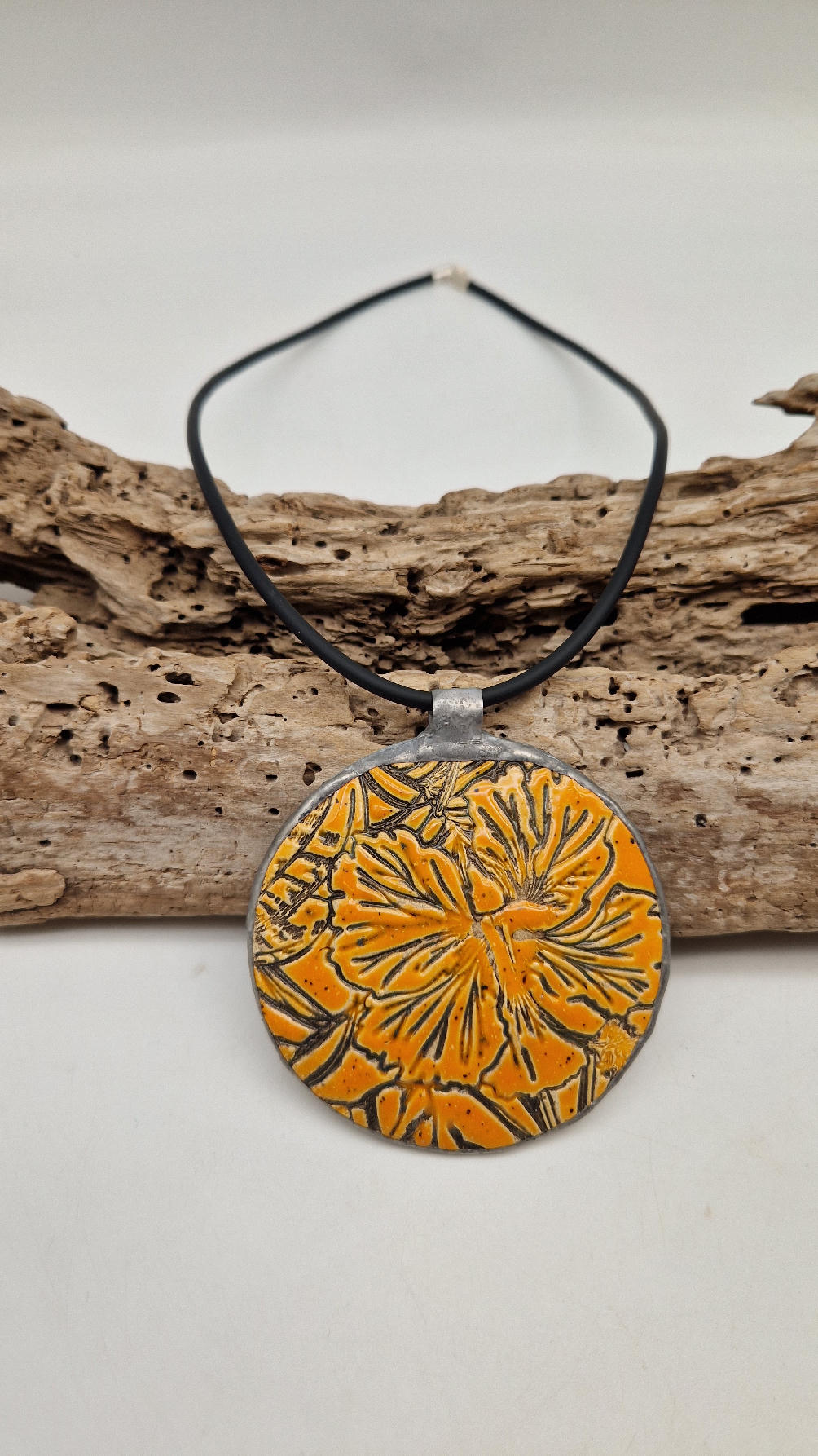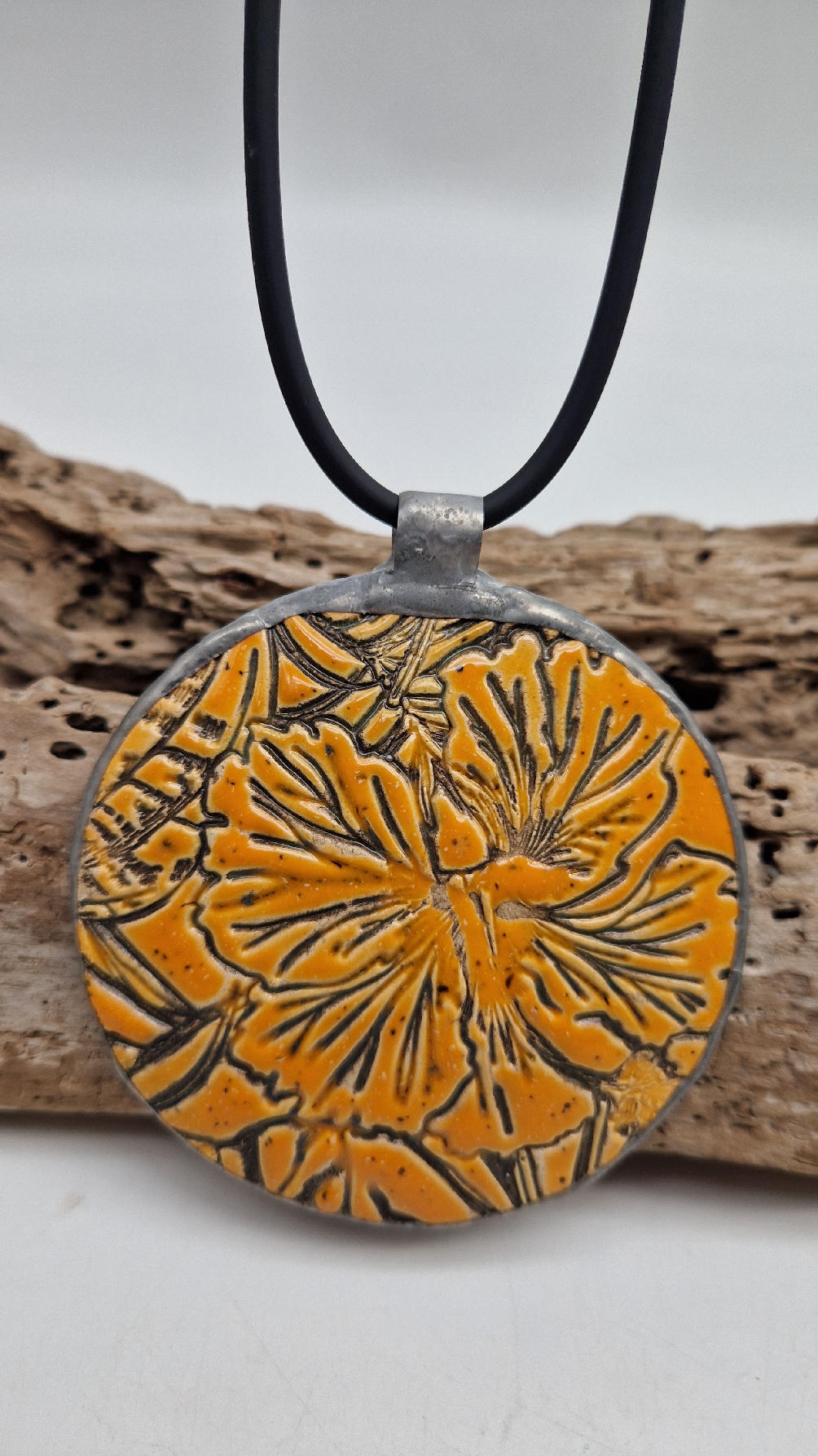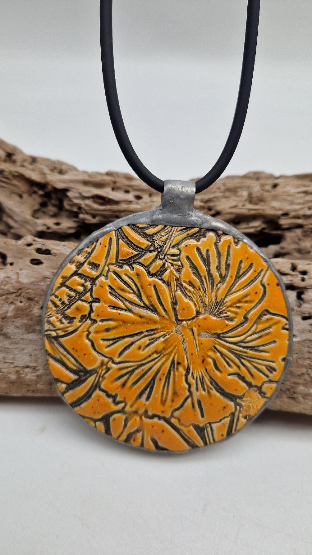 Cudny, ceramiczny intensywnie żólty, duży wisior, ceramika oprawiona w metal, która będzie piękną dekoracją Twojego dekoltu.