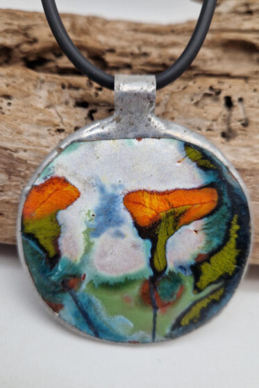 Duży wisior wykonany z masy plastycznej, bardzo oryginalny i przykuwający uwagę.
