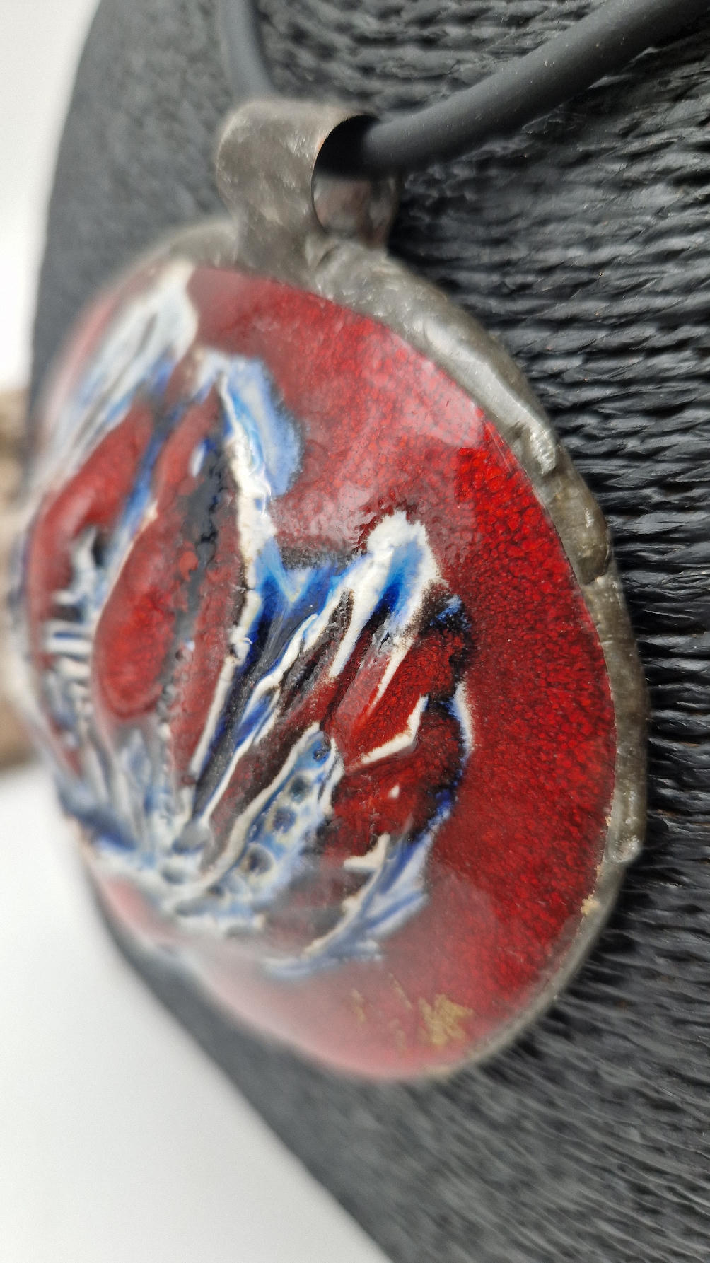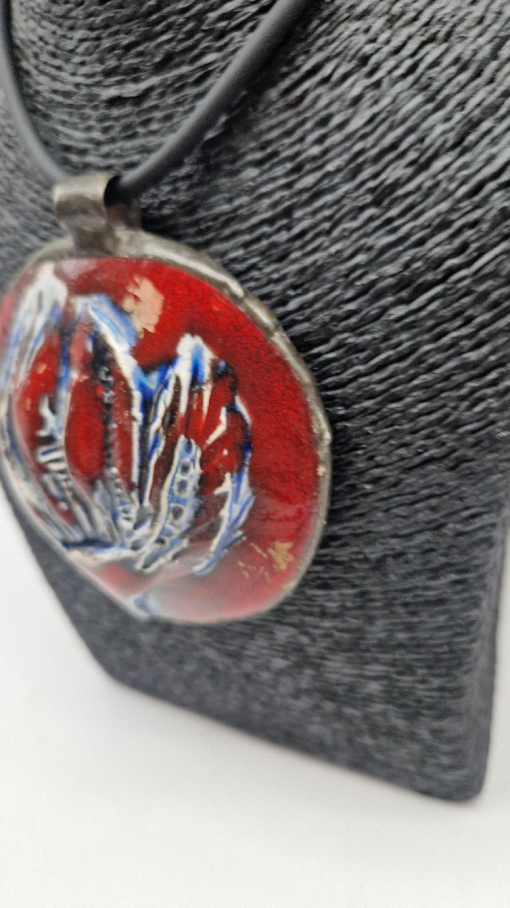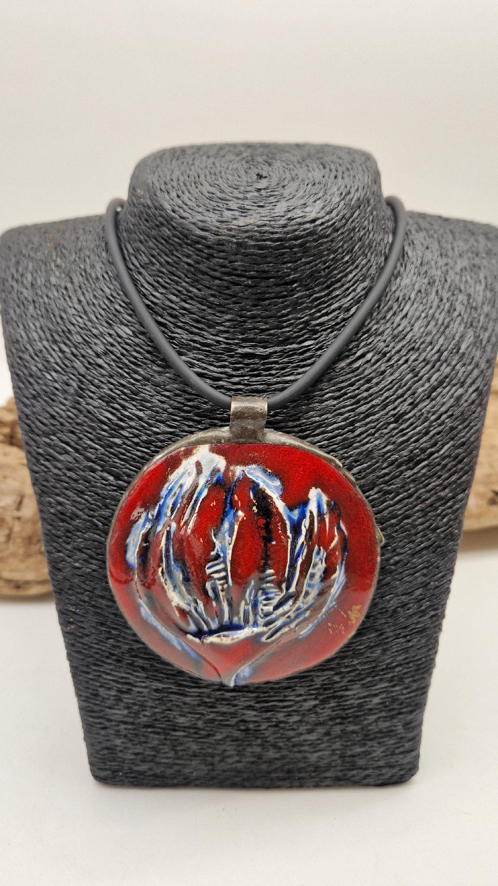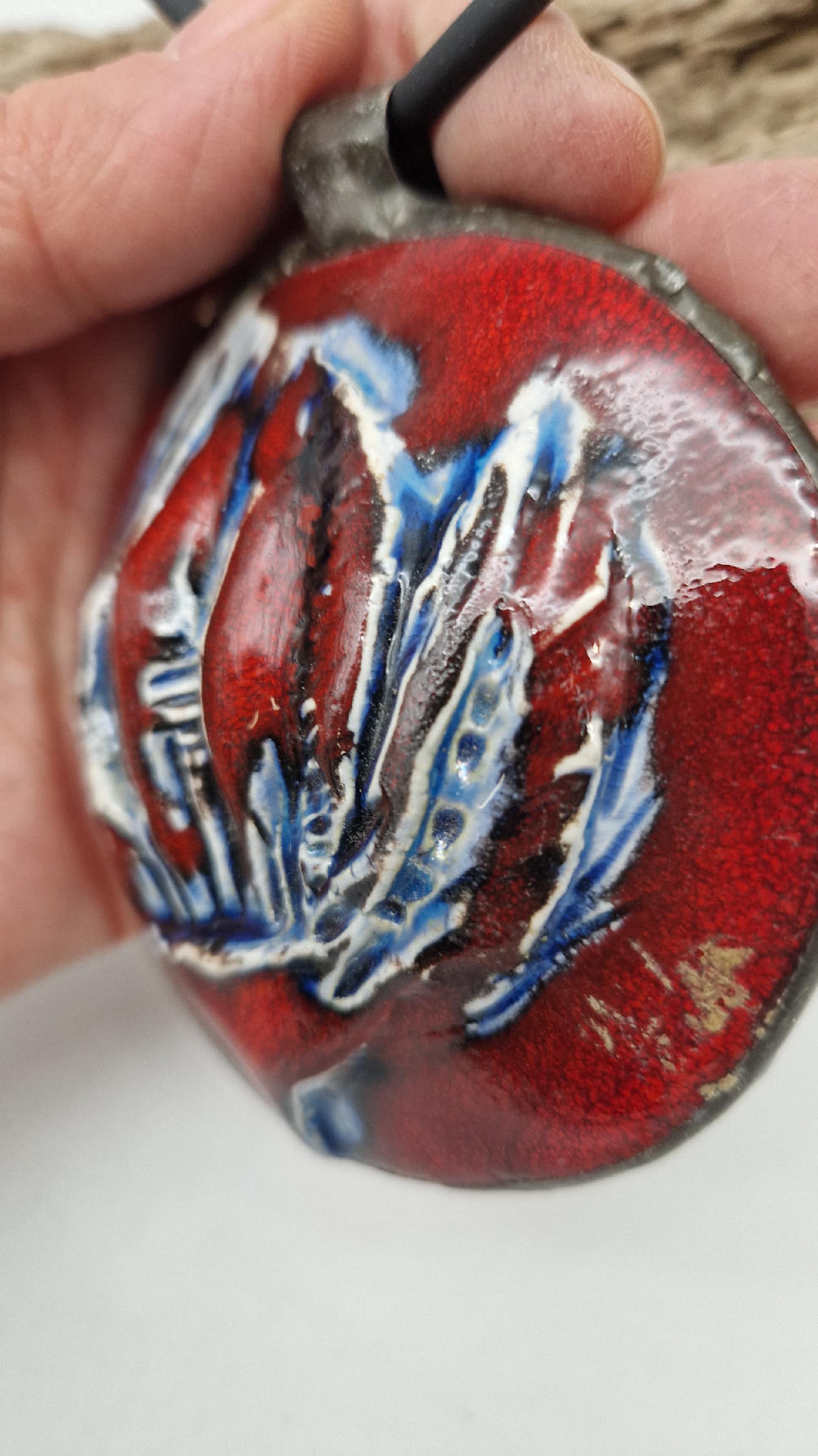 Piękny, duży ,ceramiczny, czerwono-granatowy wisior, przestrzenny, wypukły piękny tulipa, Twoja własna cudna rzeźba.