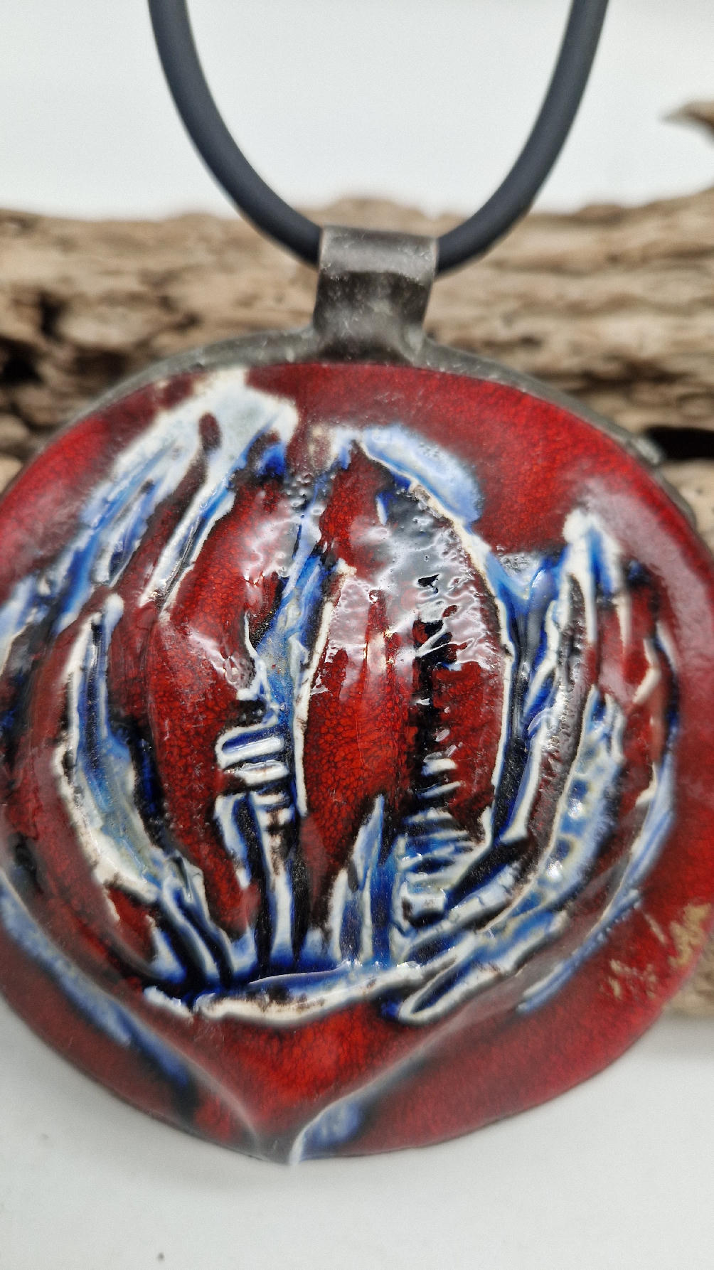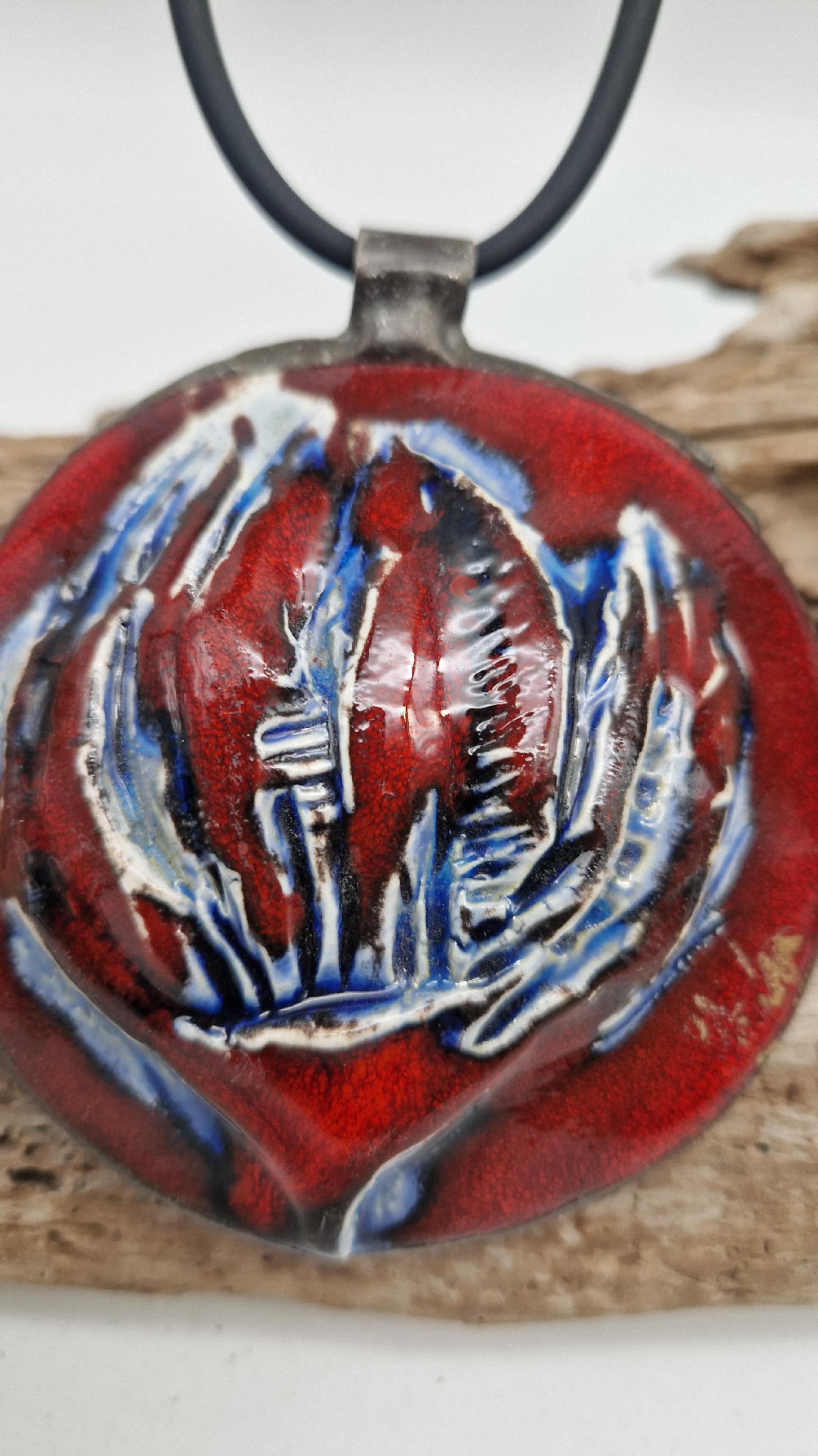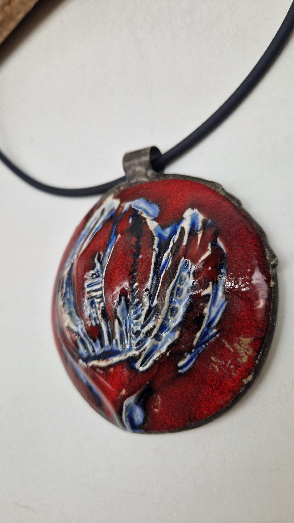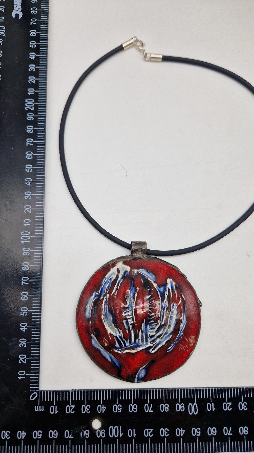 Piękny, duży ,ceramiczny, czerwono-granatowy wisior, przestrzenny, wypukły piękny tulipa, Twoja własna cudna rzeźba.