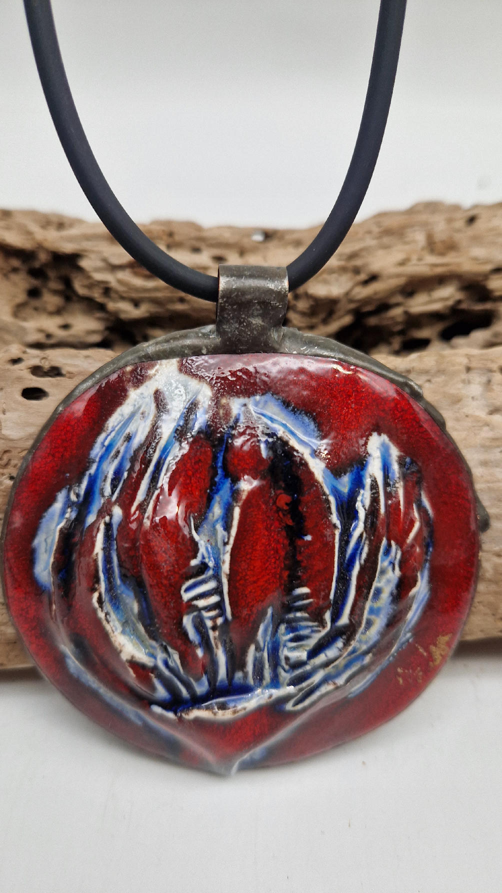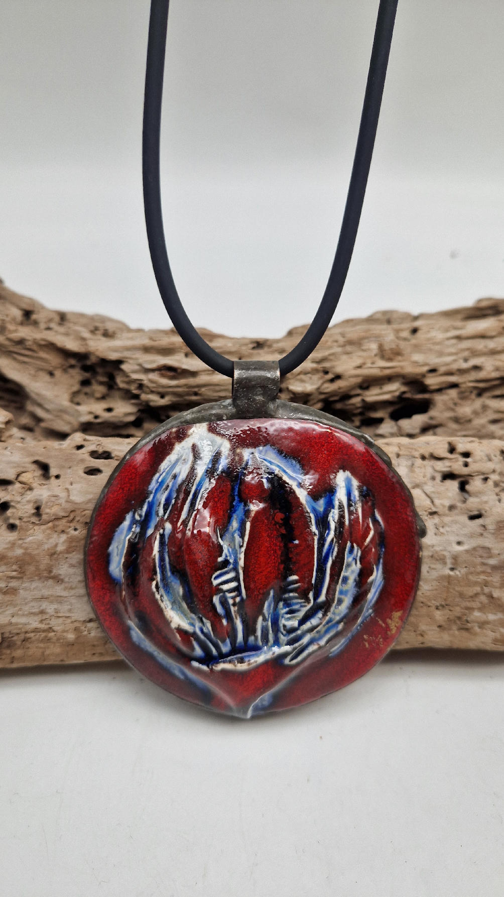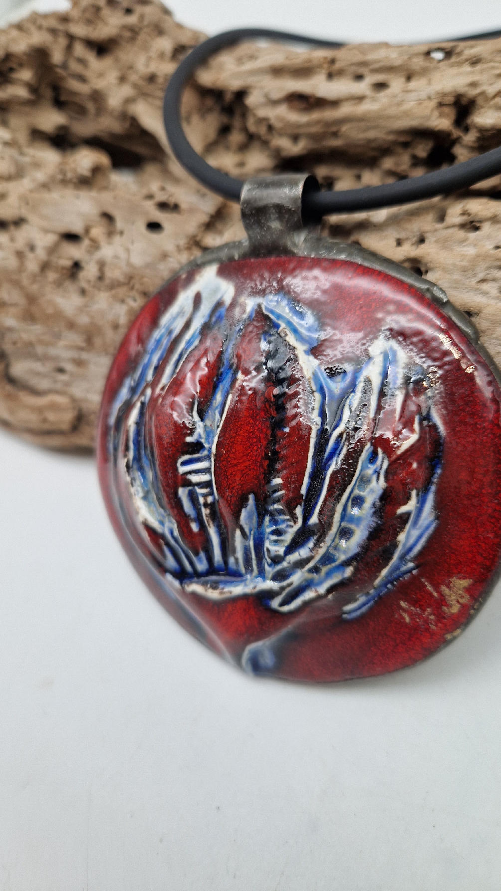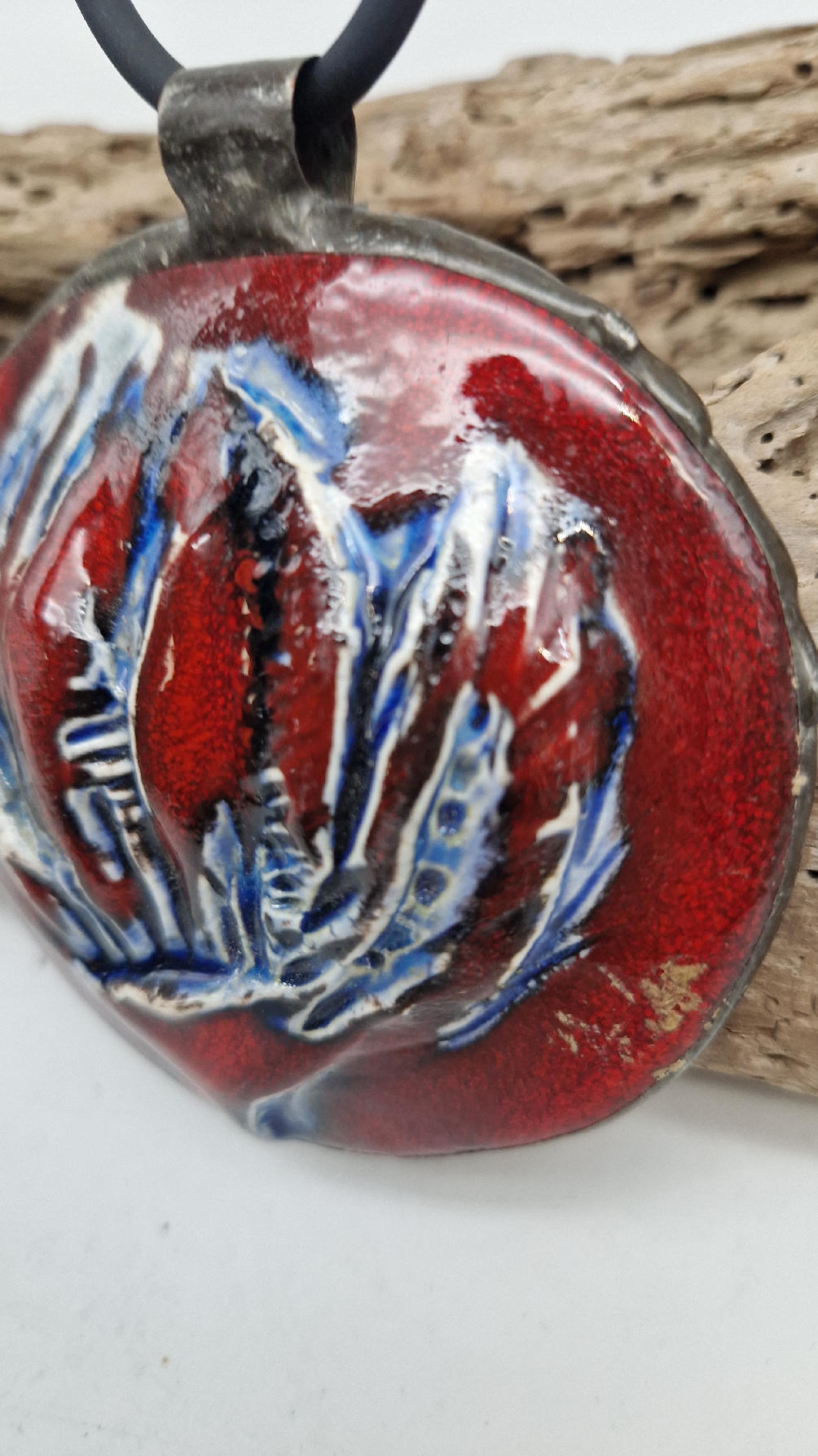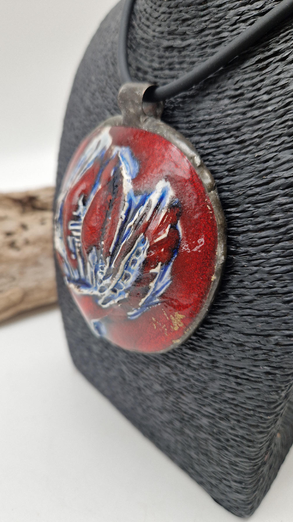 Piękny, duży ,ceramiczny, czerwono-granatowy wisior, przestrzenny, wypukły piękny tulipa, Twoja własna cudna rzeźba.