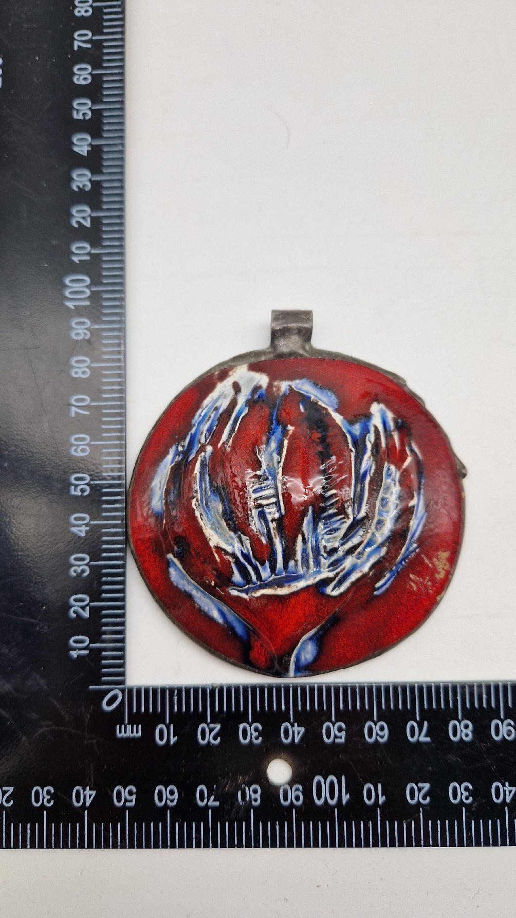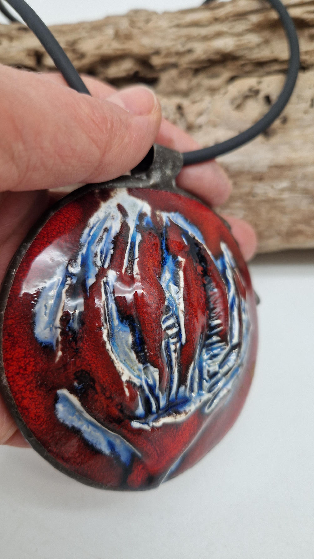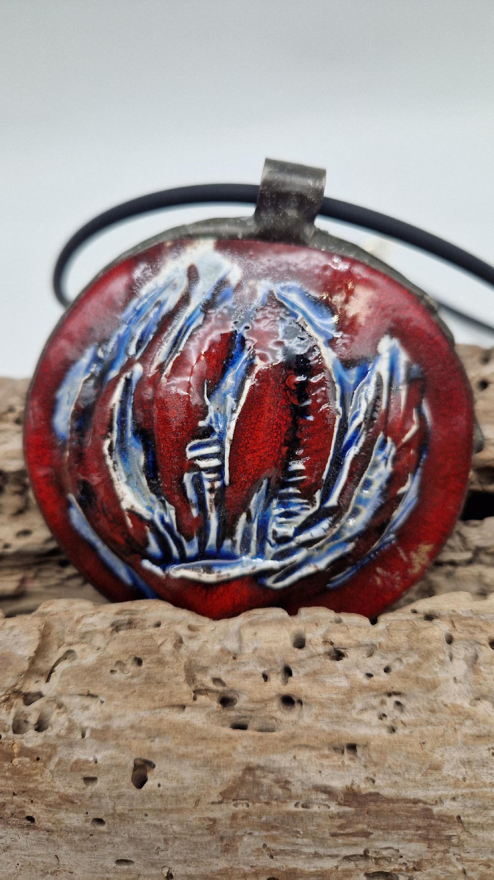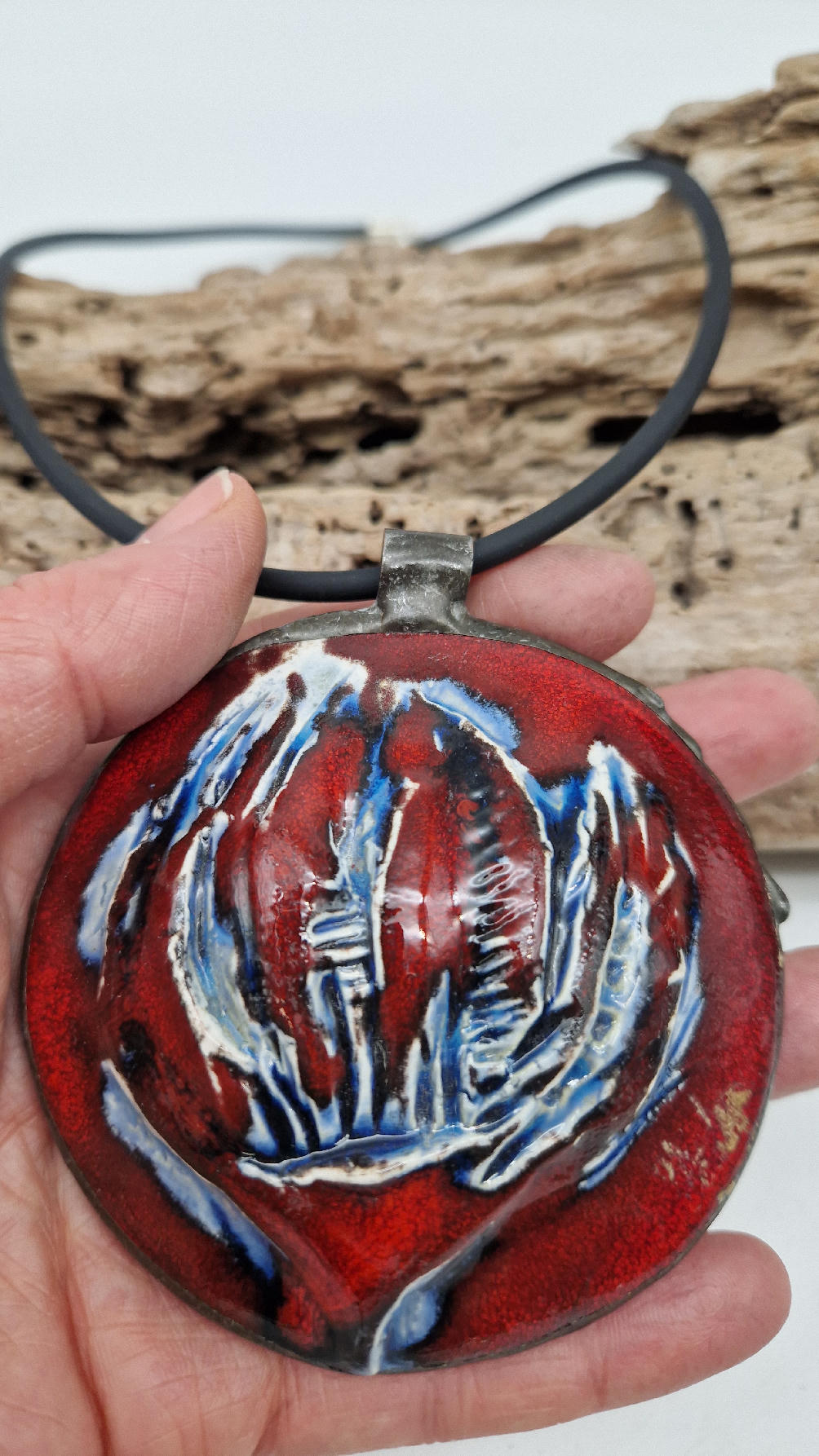Piękny, duży ,ceramiczny, czerwono-granatowy wisior, przestrzenny, wypukły piękny tulipa, Twoja własna cudna rzeźba.