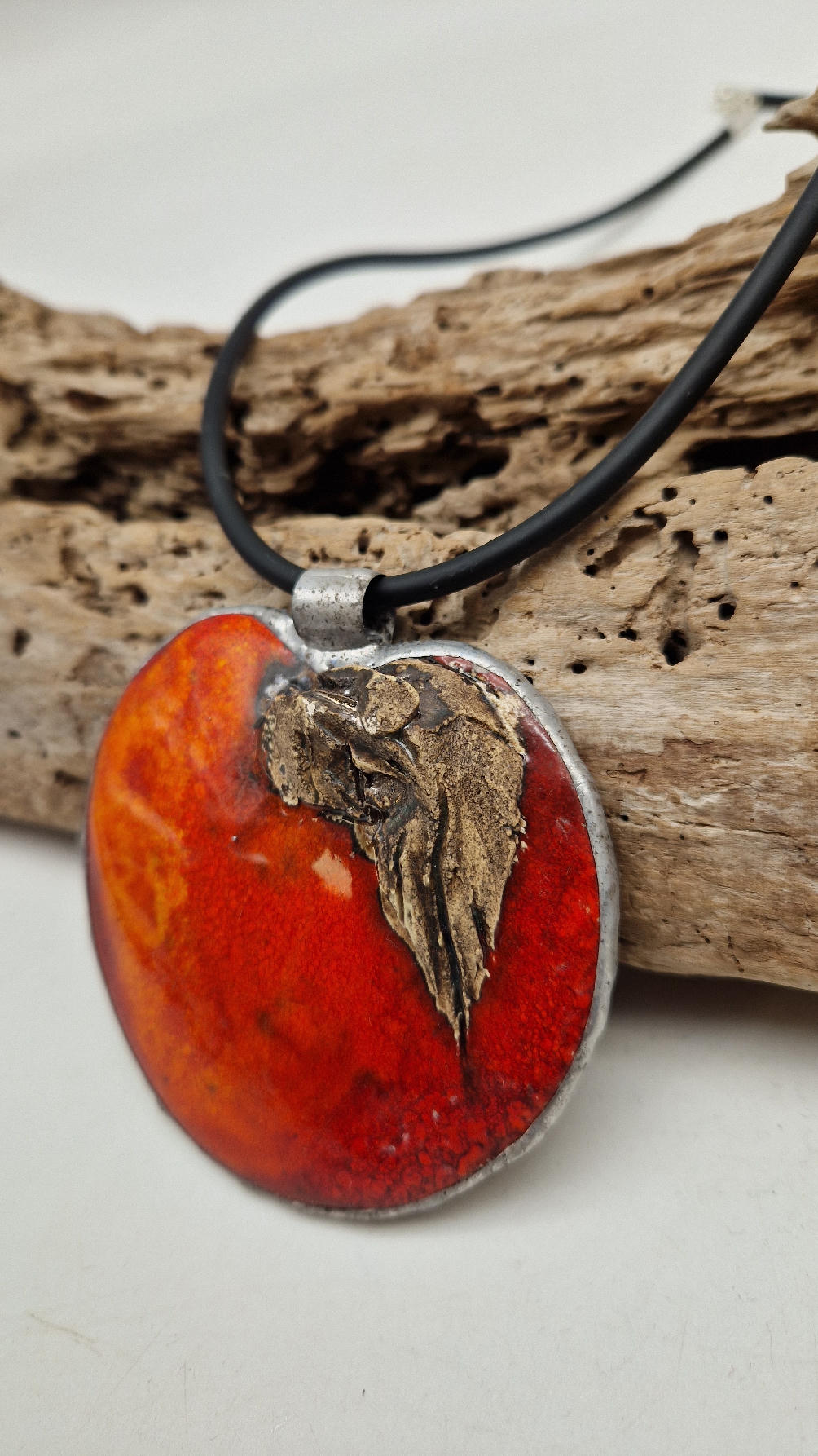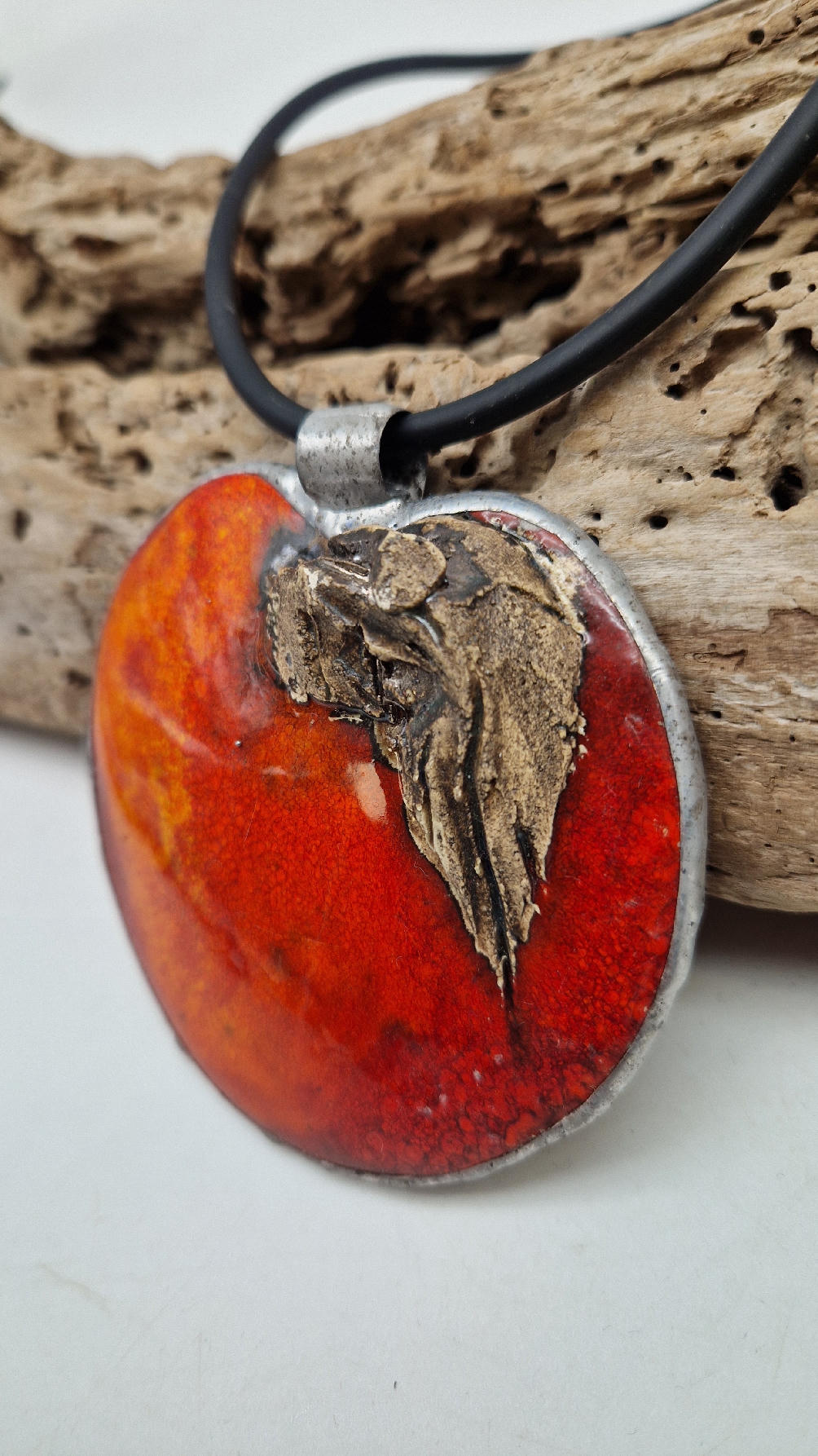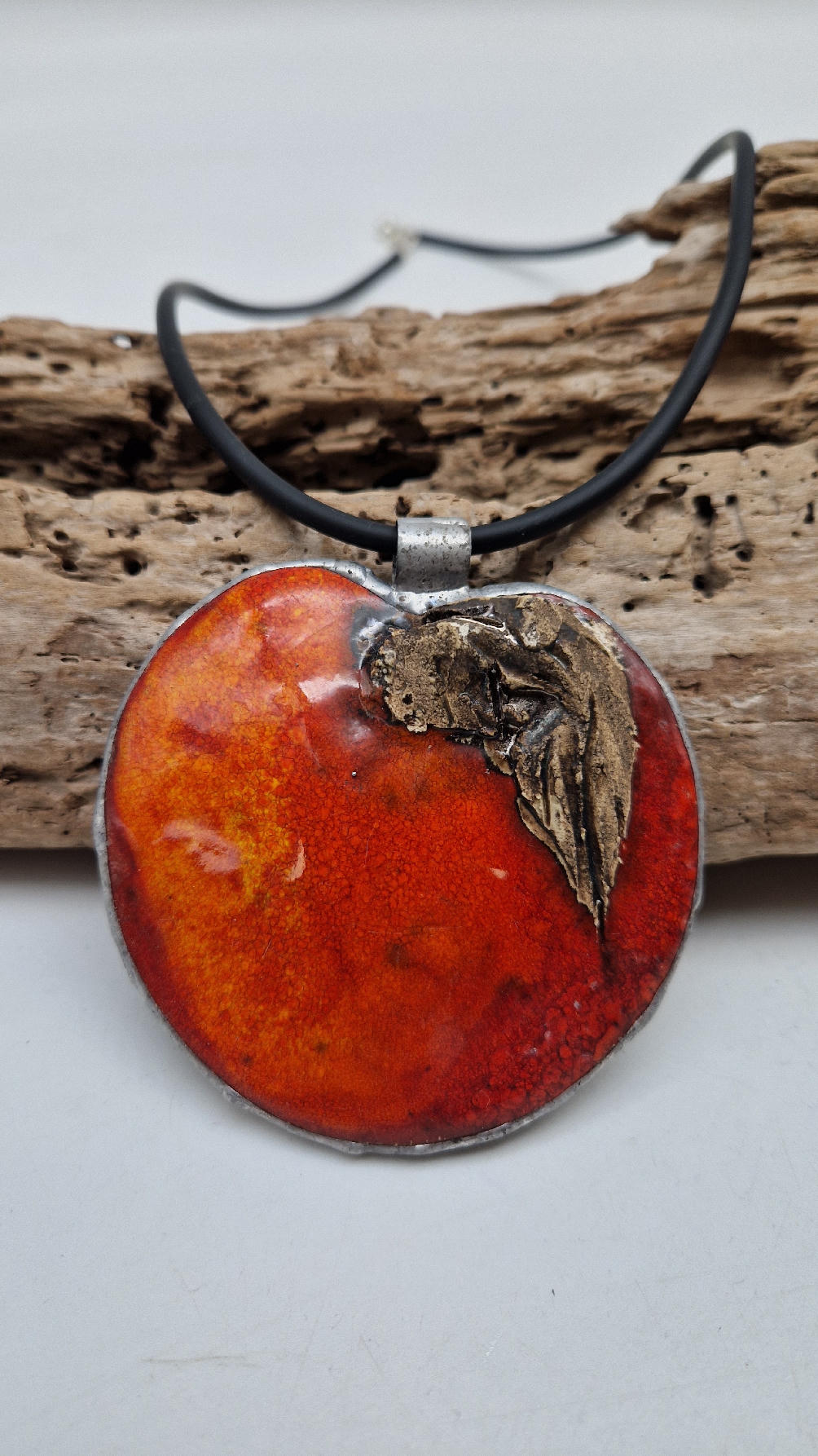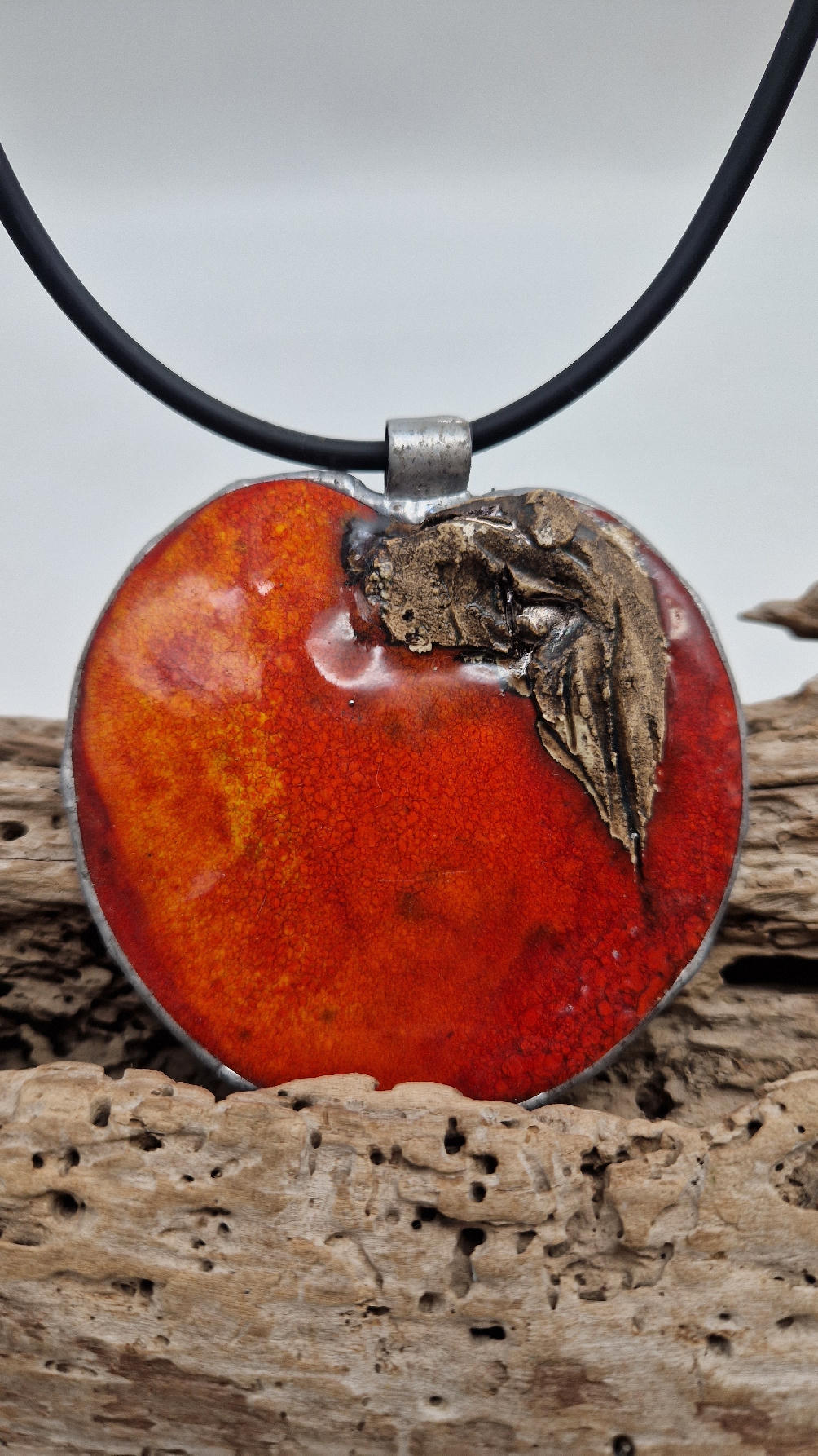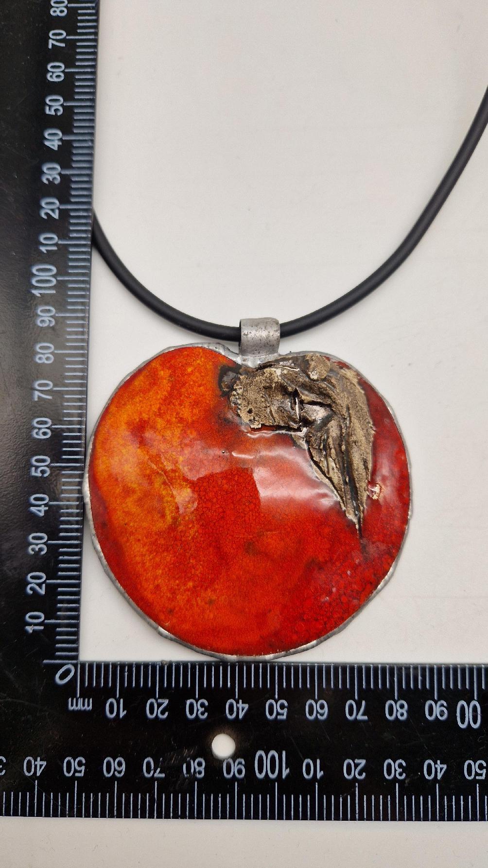 Cudny, ceramiczny duży wisior, ogniście soczyste, czerwone, śliczne jabłko, ceramika oprawiona w metal, cudna płaskorzeźba, która będzie piękną dekoracją Twojego dekoltu.