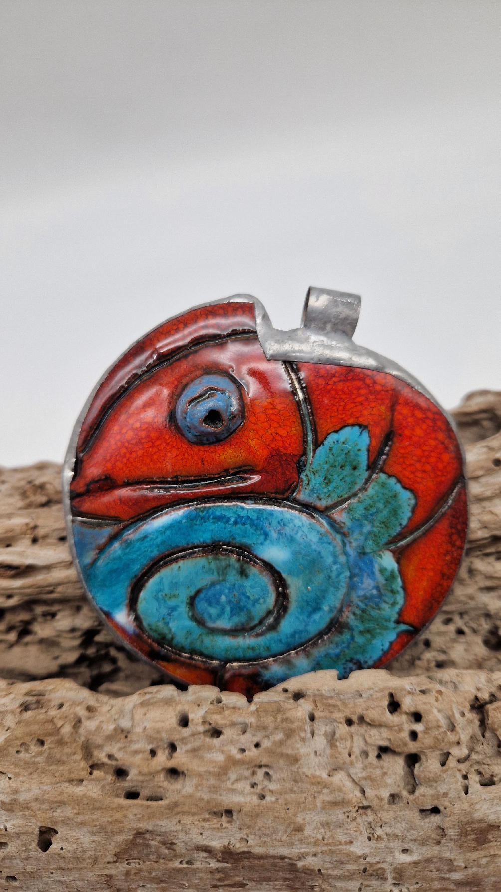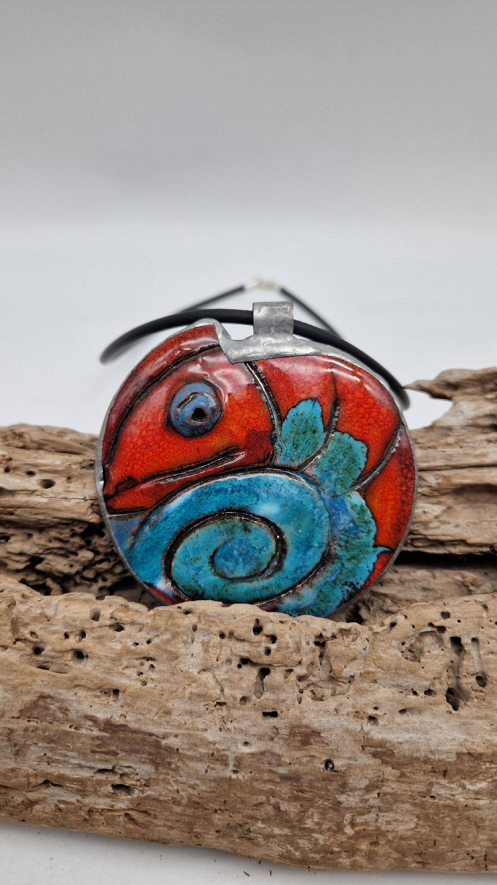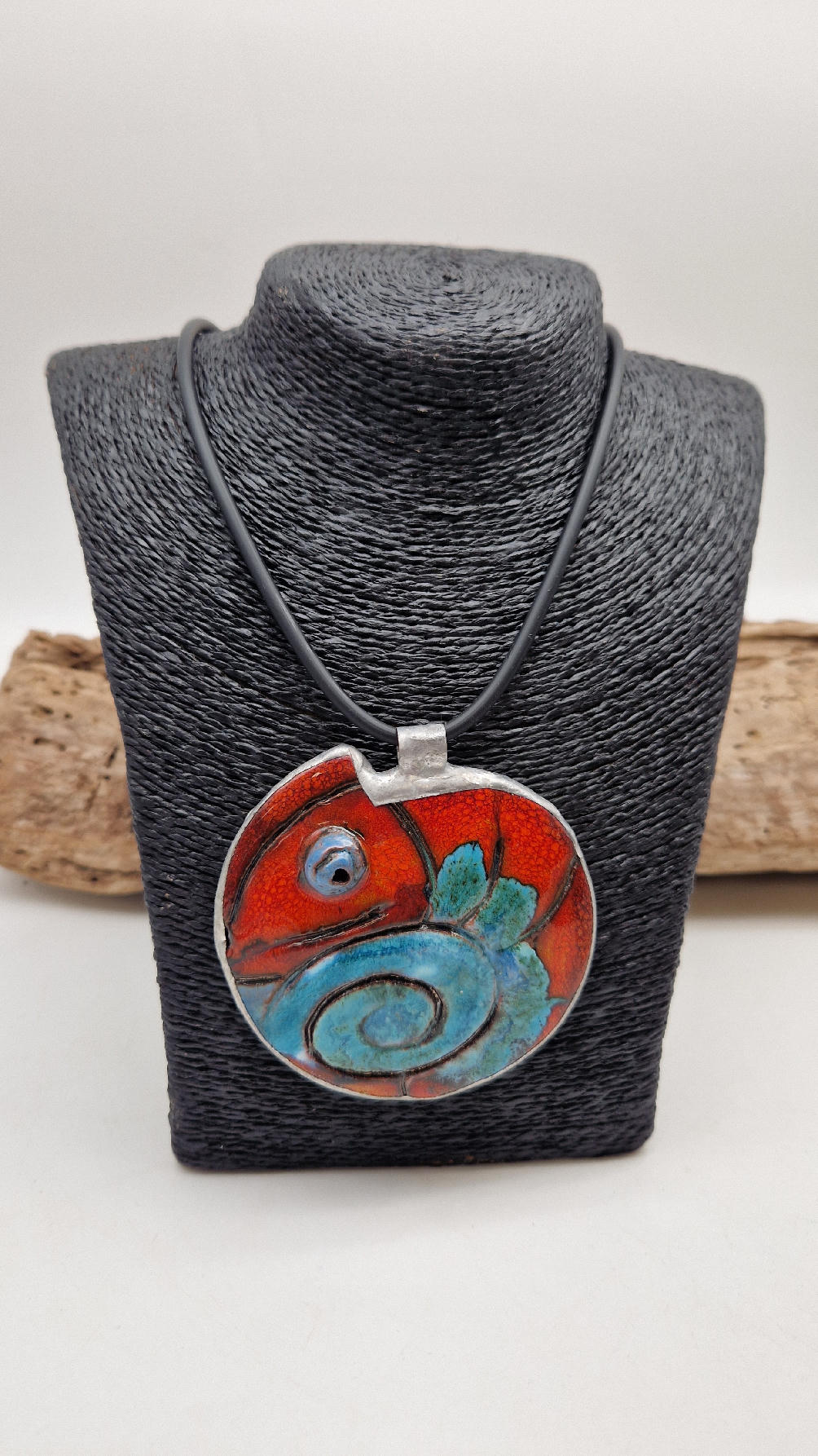 Piękny czerwono-niebiesko-zielony,duży, zupegłnie obłędny wisior, Kameleon …zupełnie niesamowita rzeźba , którą możesz mieć zawsze przy sobie…