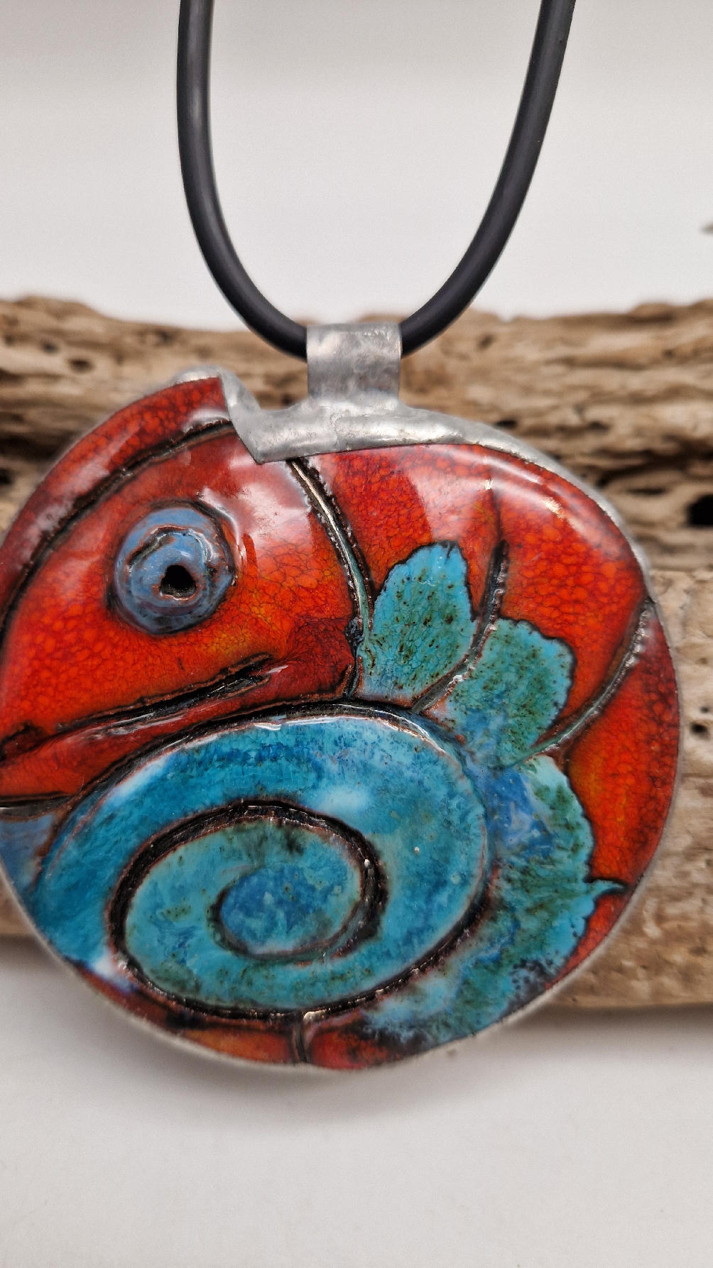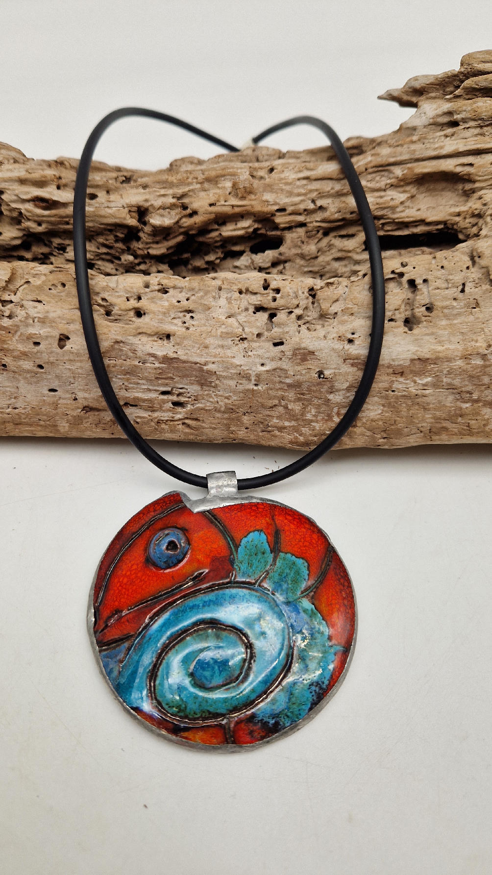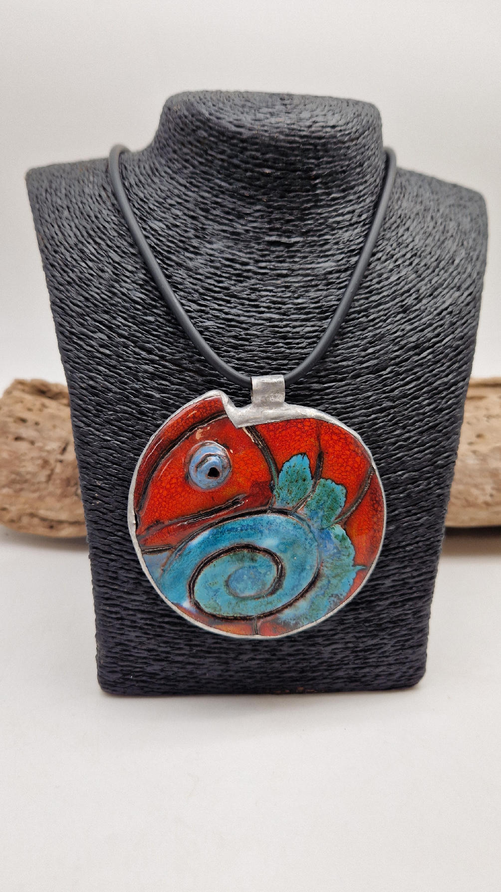 Piękny czerwono-niebiesko-zielony,duży, zupegłnie obłędny wisior, Kameleon …zupełnie niesamowita rzeźba , którą możesz mieć zawsze przy sobie…