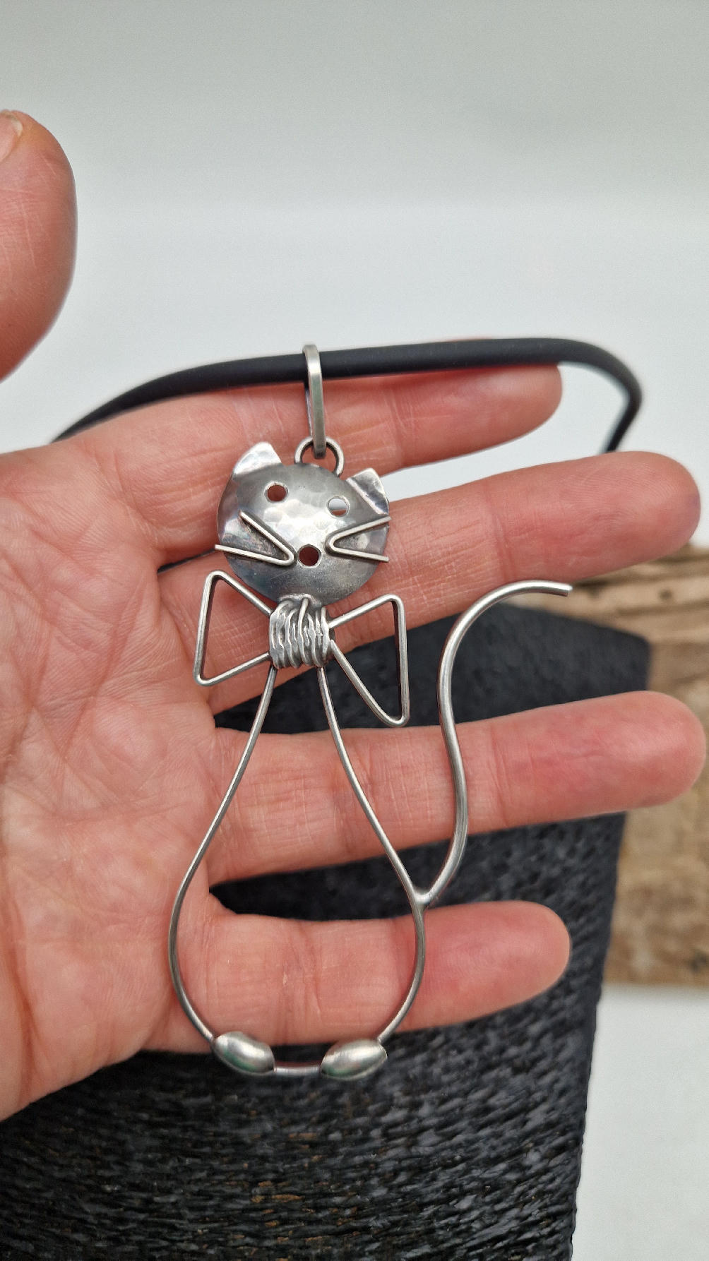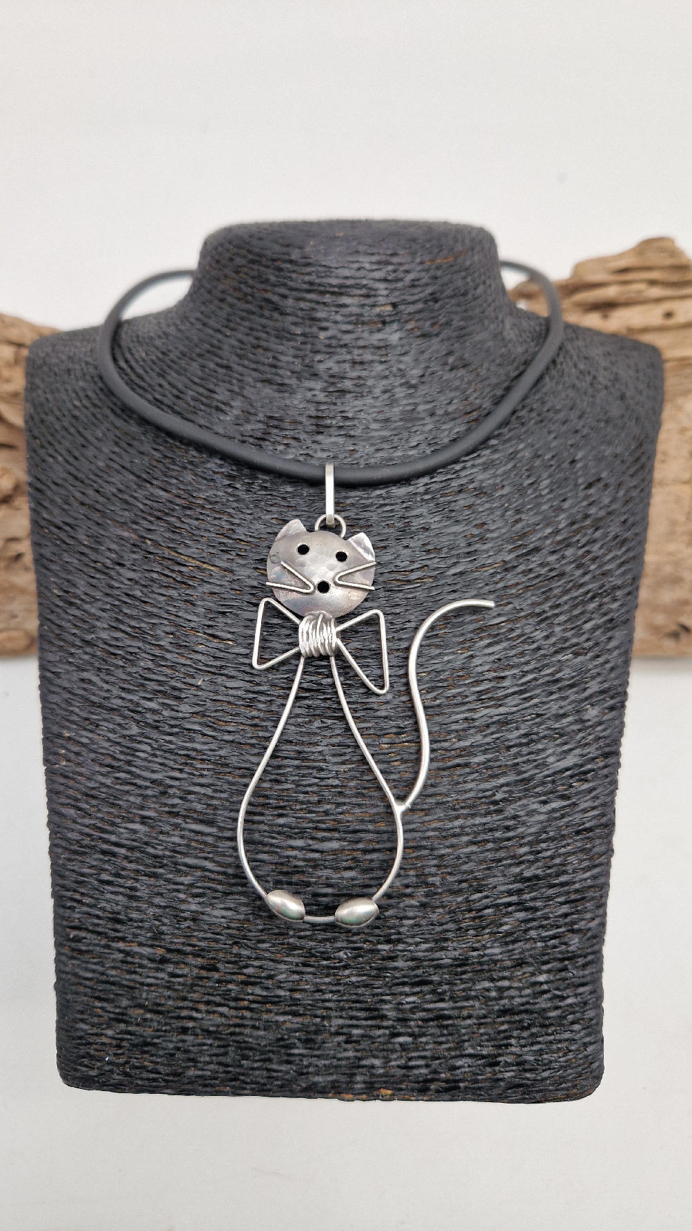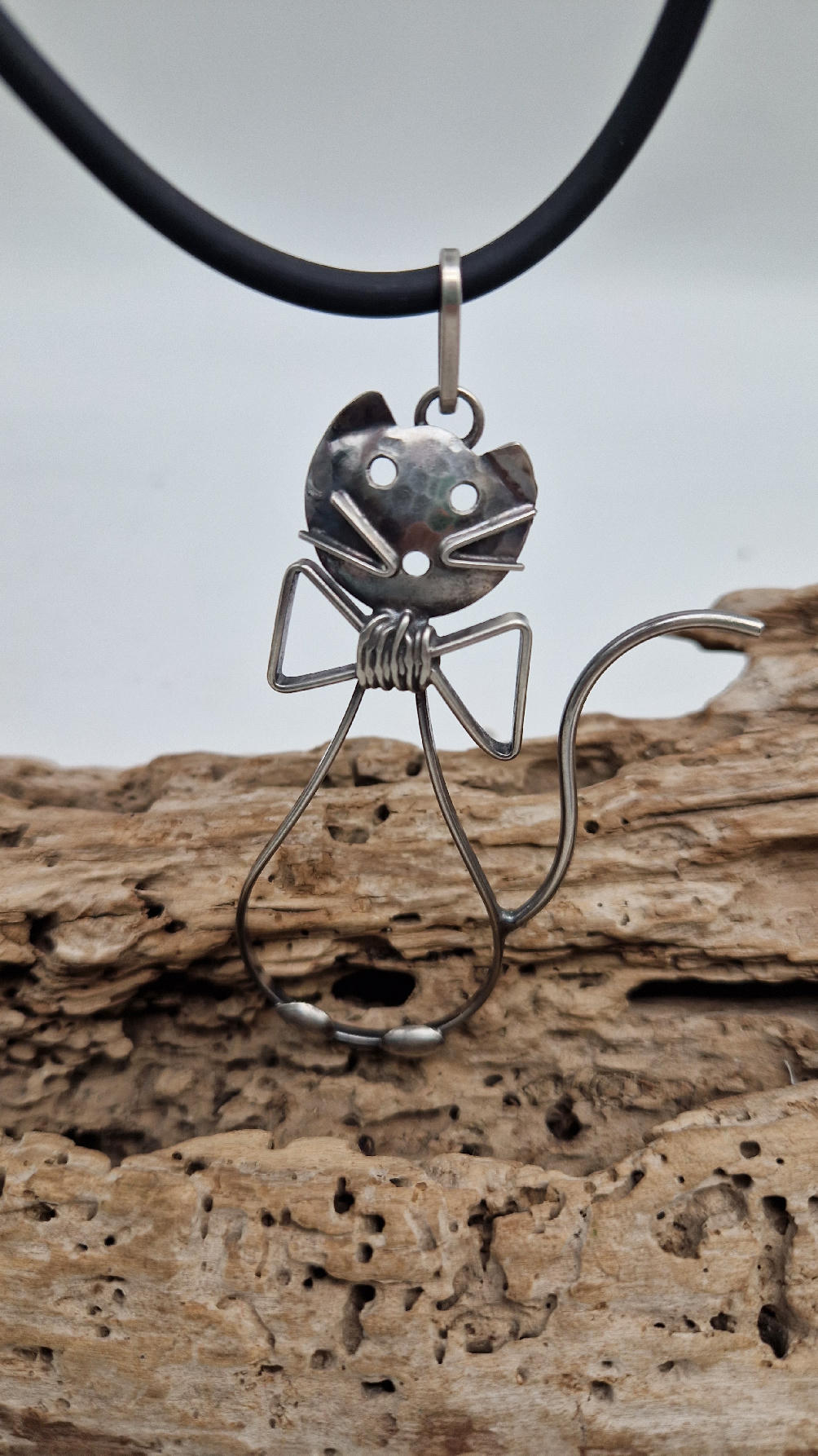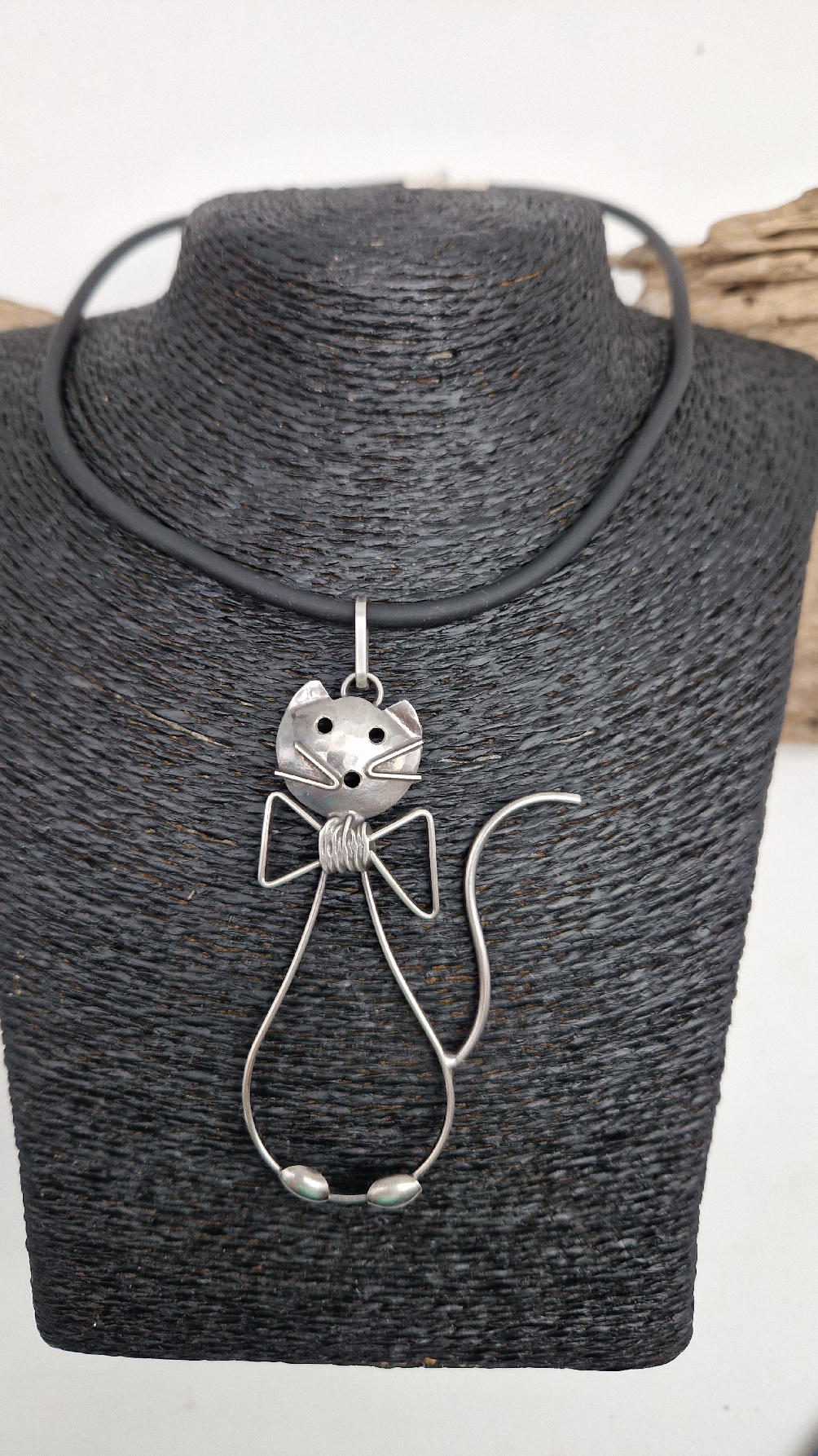 *do wisiora dołączam kauczukowy rzemień,ok. 50 cm , możesz również zawiesić swojego kota na srebrzonej obroży, która znajdziesz w sklepie