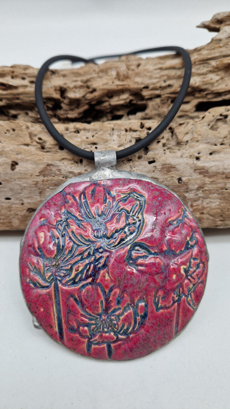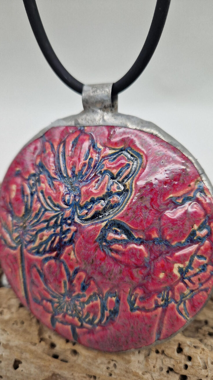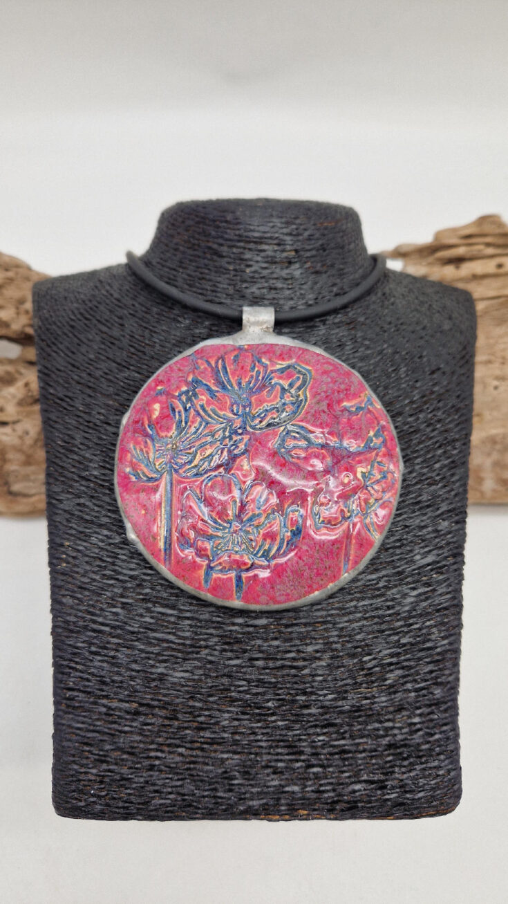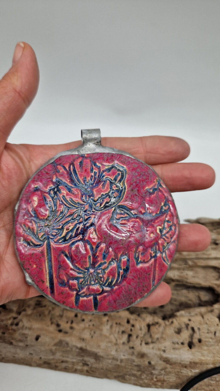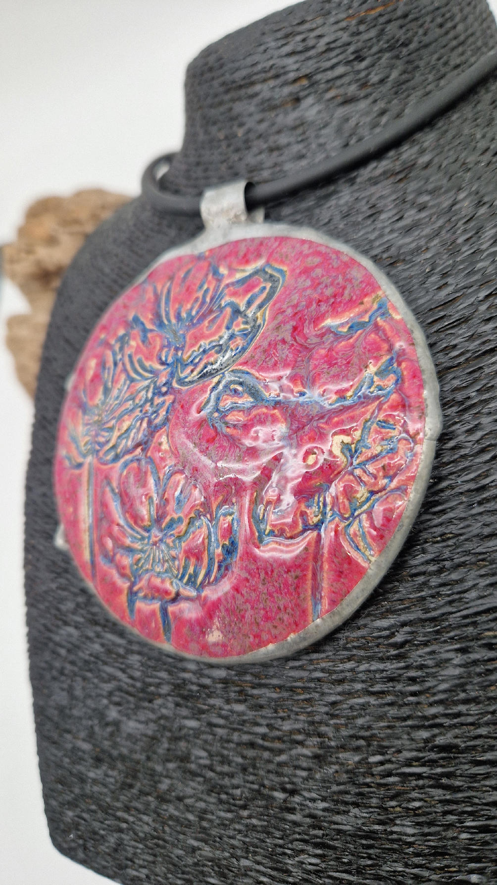 Cudny, ceramiczny megaróżowy, duży wisior, ceramika oprawiona w metal, która będzie piękną dekoracją Twojego dekoltu.