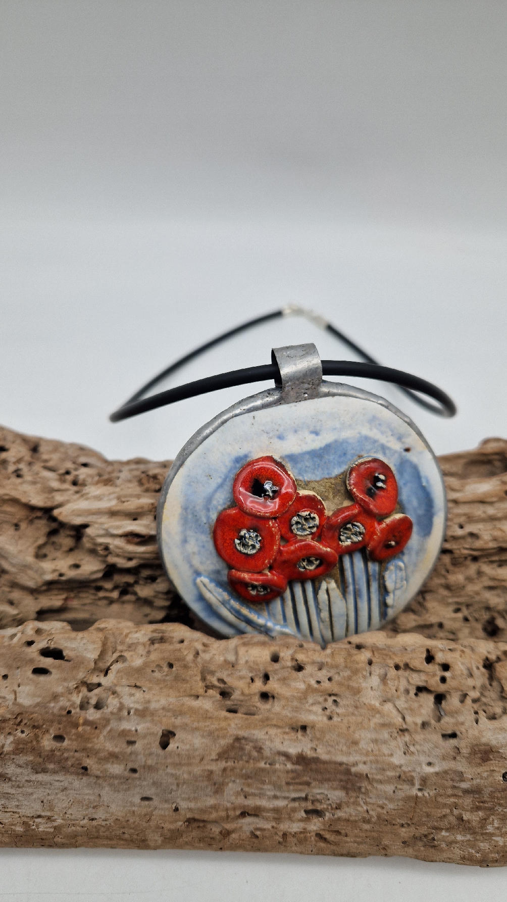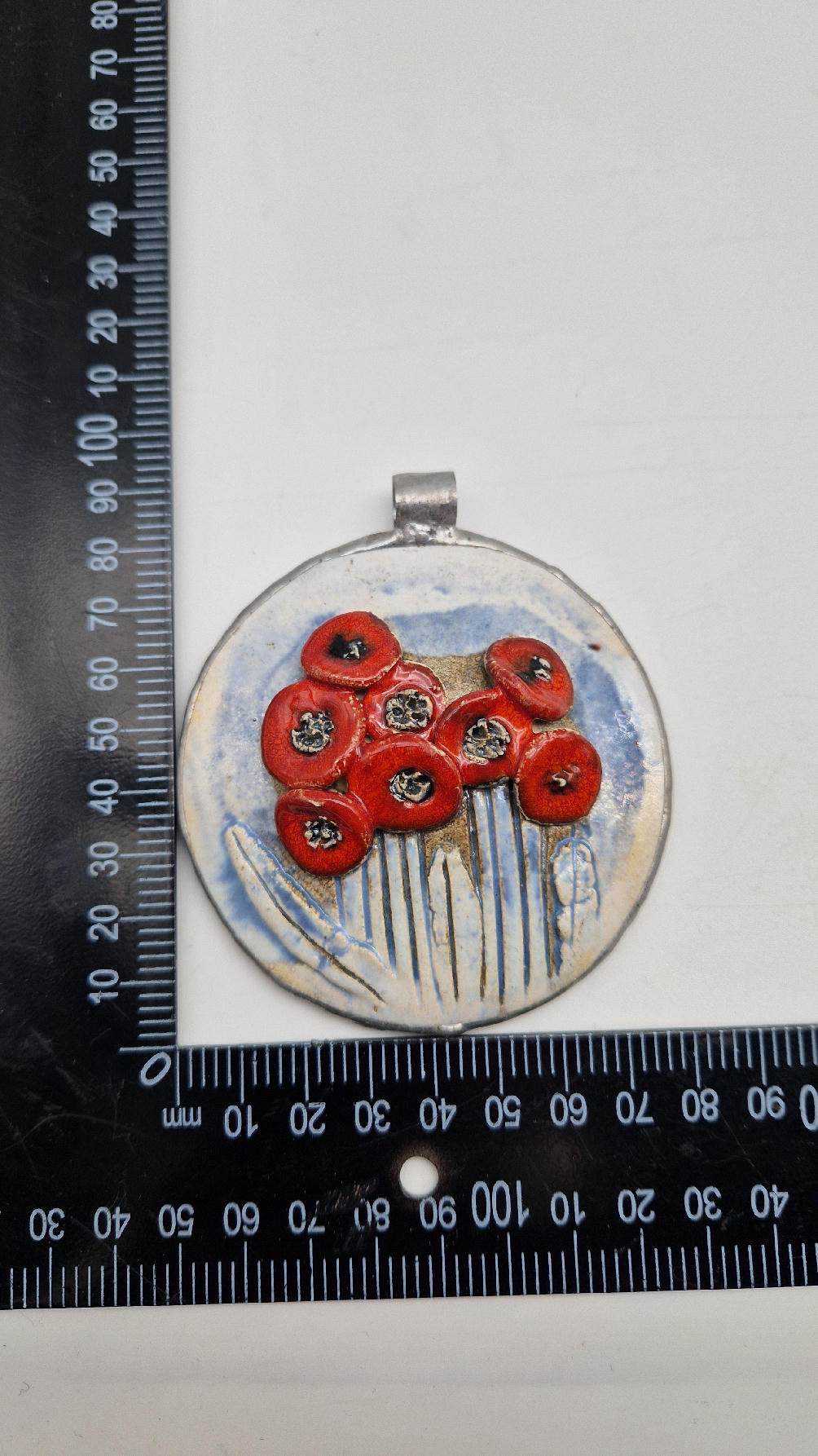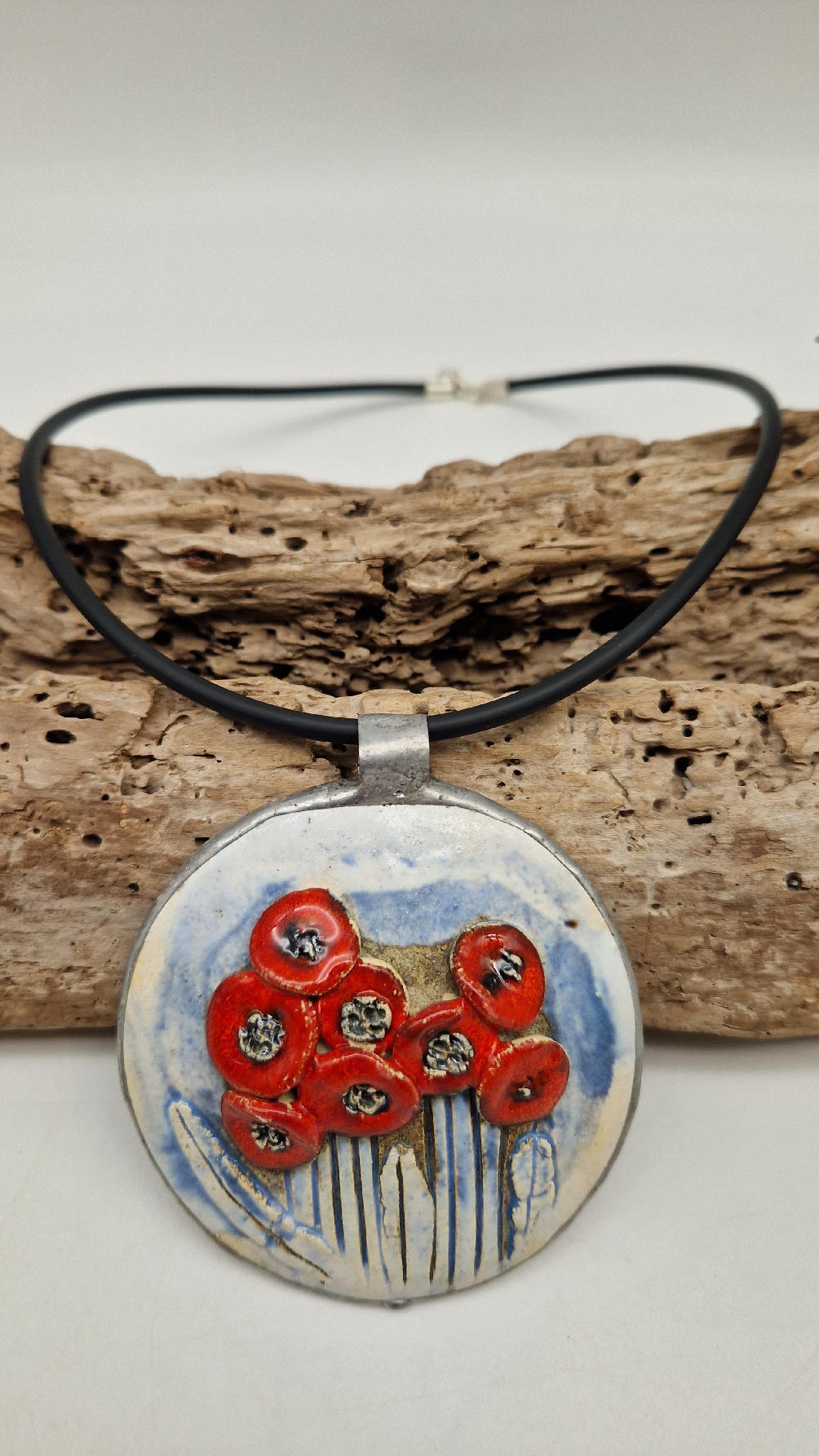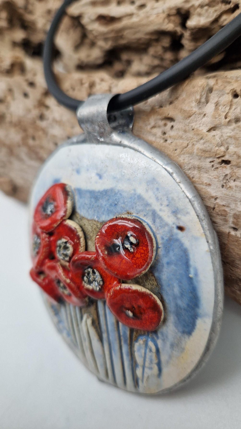 Śliczny ceramiczny, duży wisior zawieszony na kauczukowym rzemieniu. Kwiaty, ale takie niewiędnące i śliczne ,które będą cieszyć oczy niezmiennie przez długi czas..