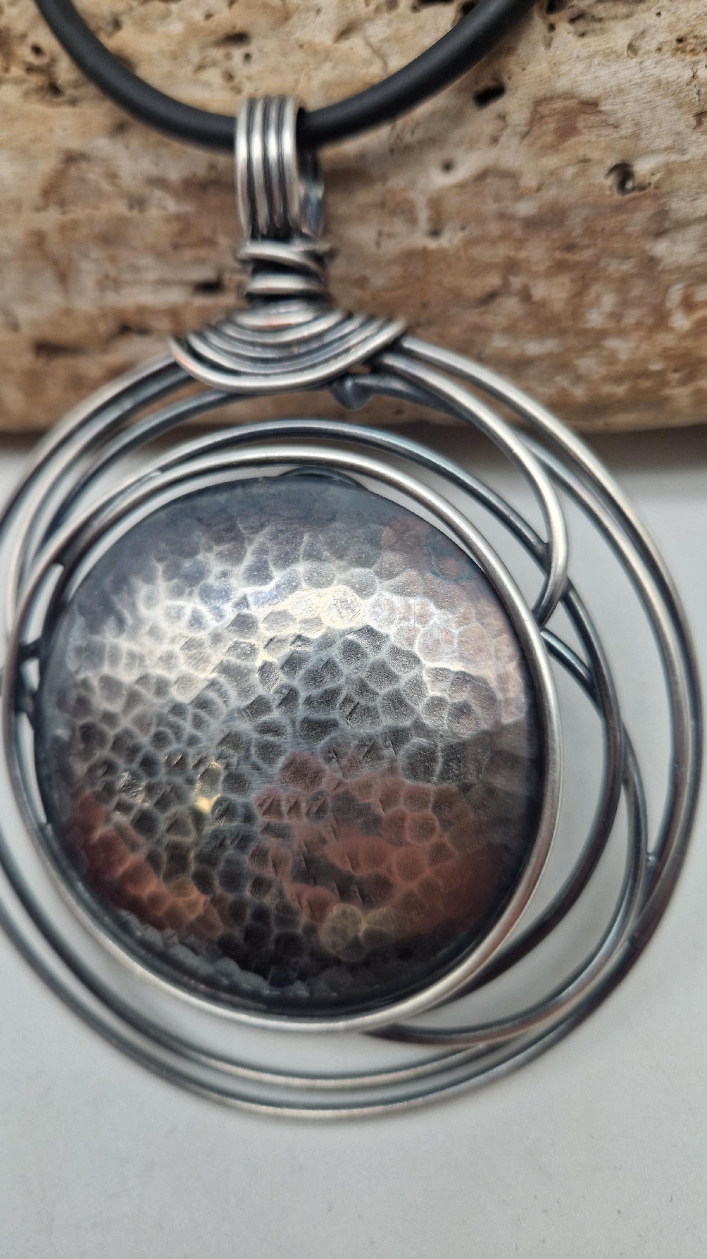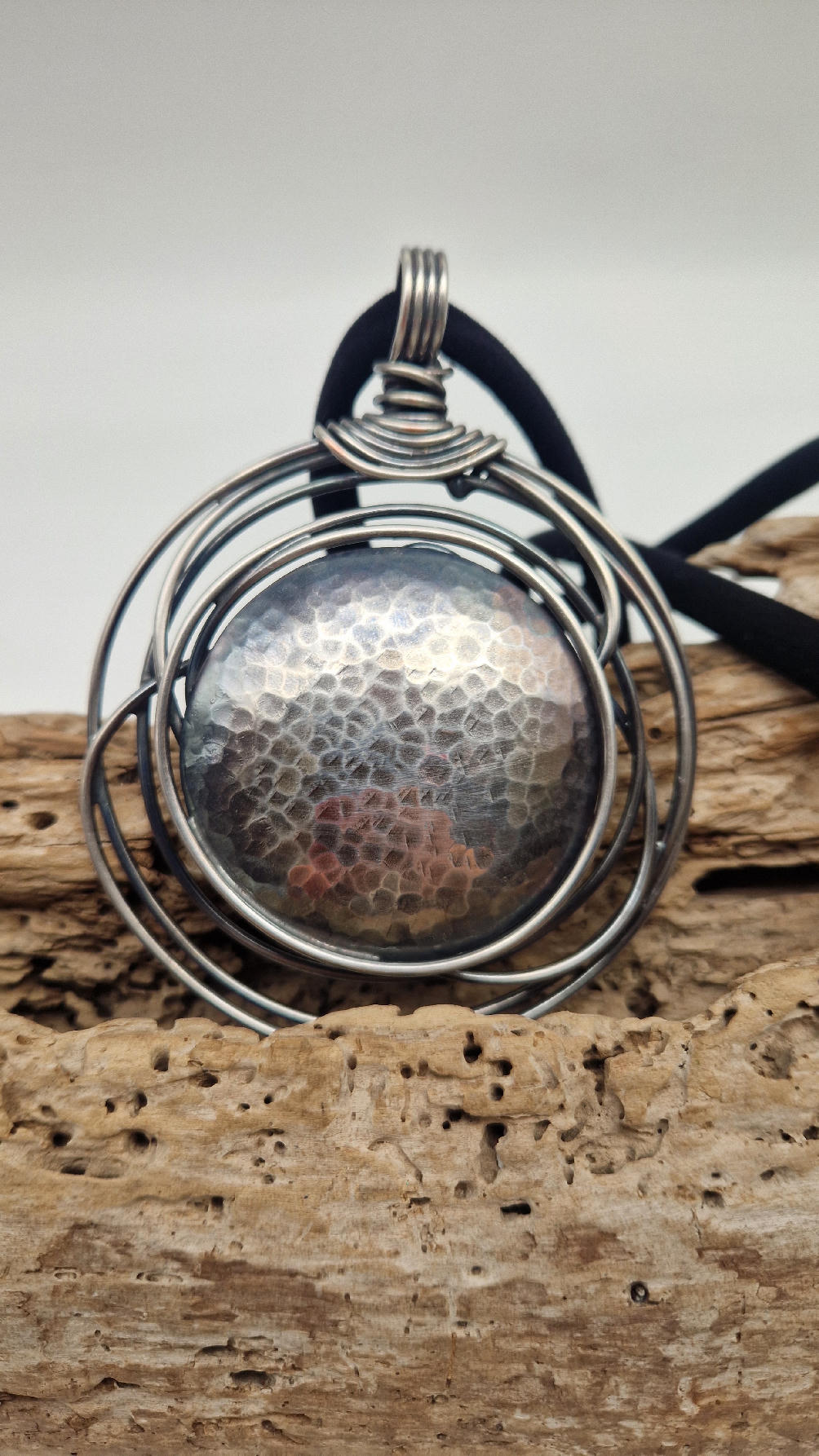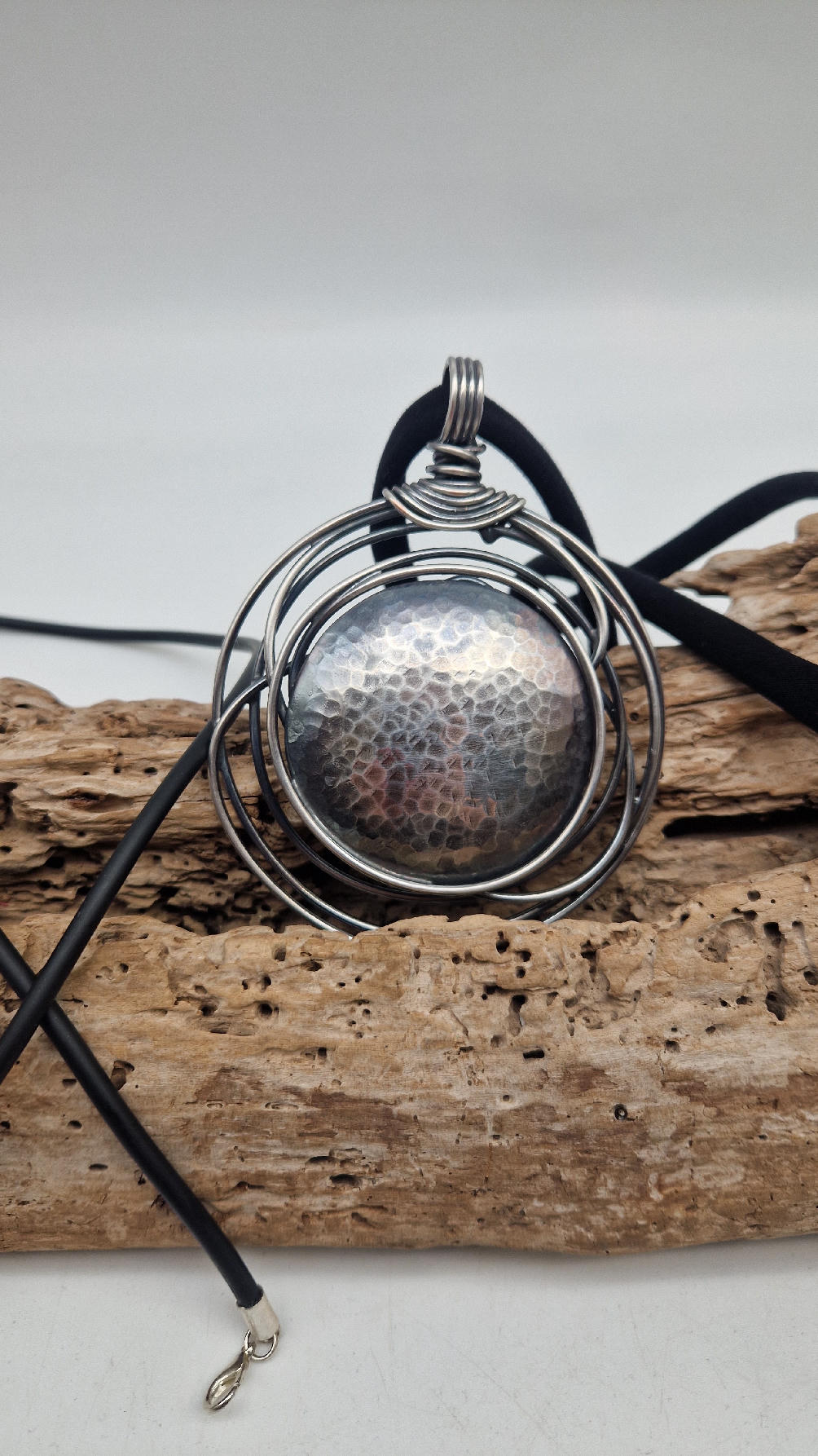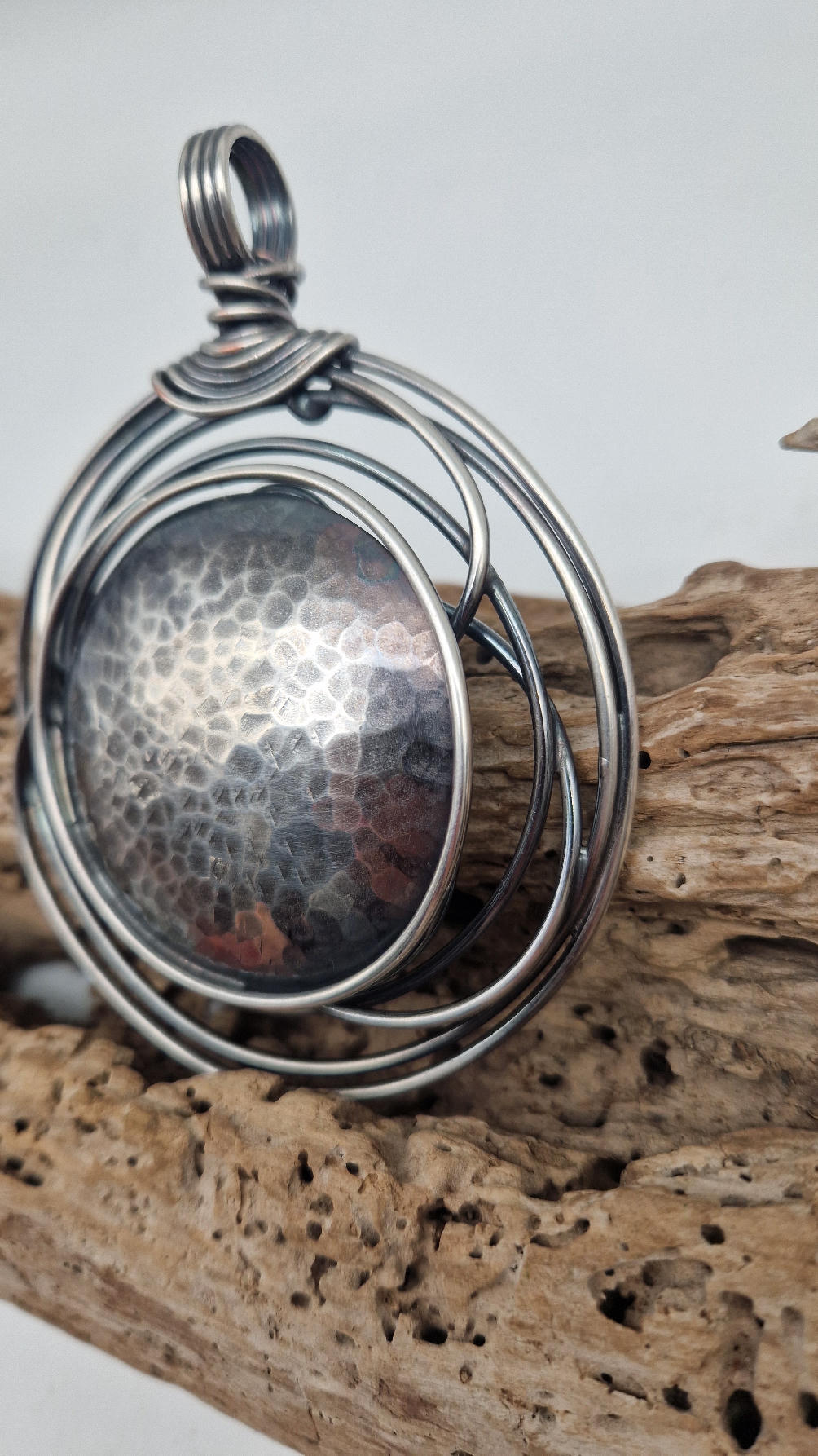 Duży metalowy wisior, taki…idealny… do wszystkiego, okrągły,  bardzo oryginalny, przestrzenny zrobiony z miedzi, kuty, patynowany, srebrzony, cudny…taki, że zakochasz się od pierwszego założenia . Ja noszę go bardzo często…