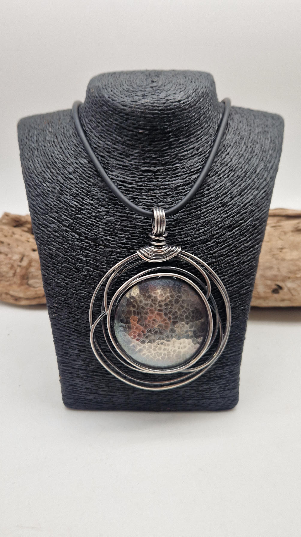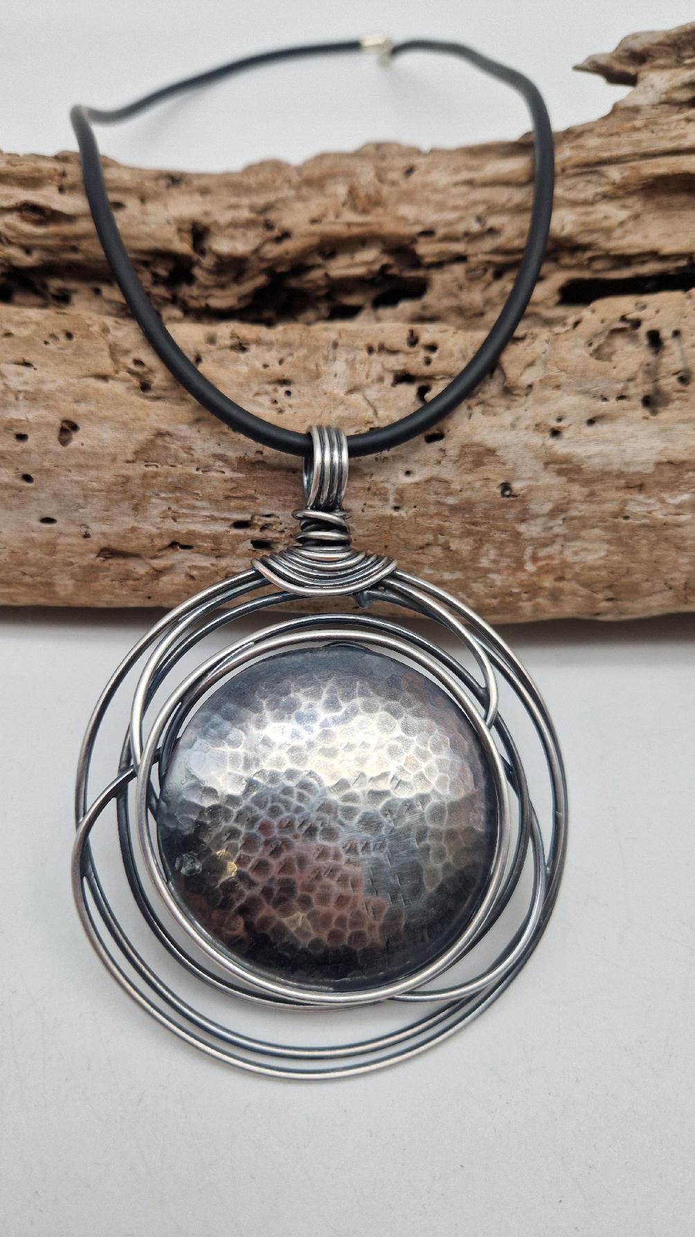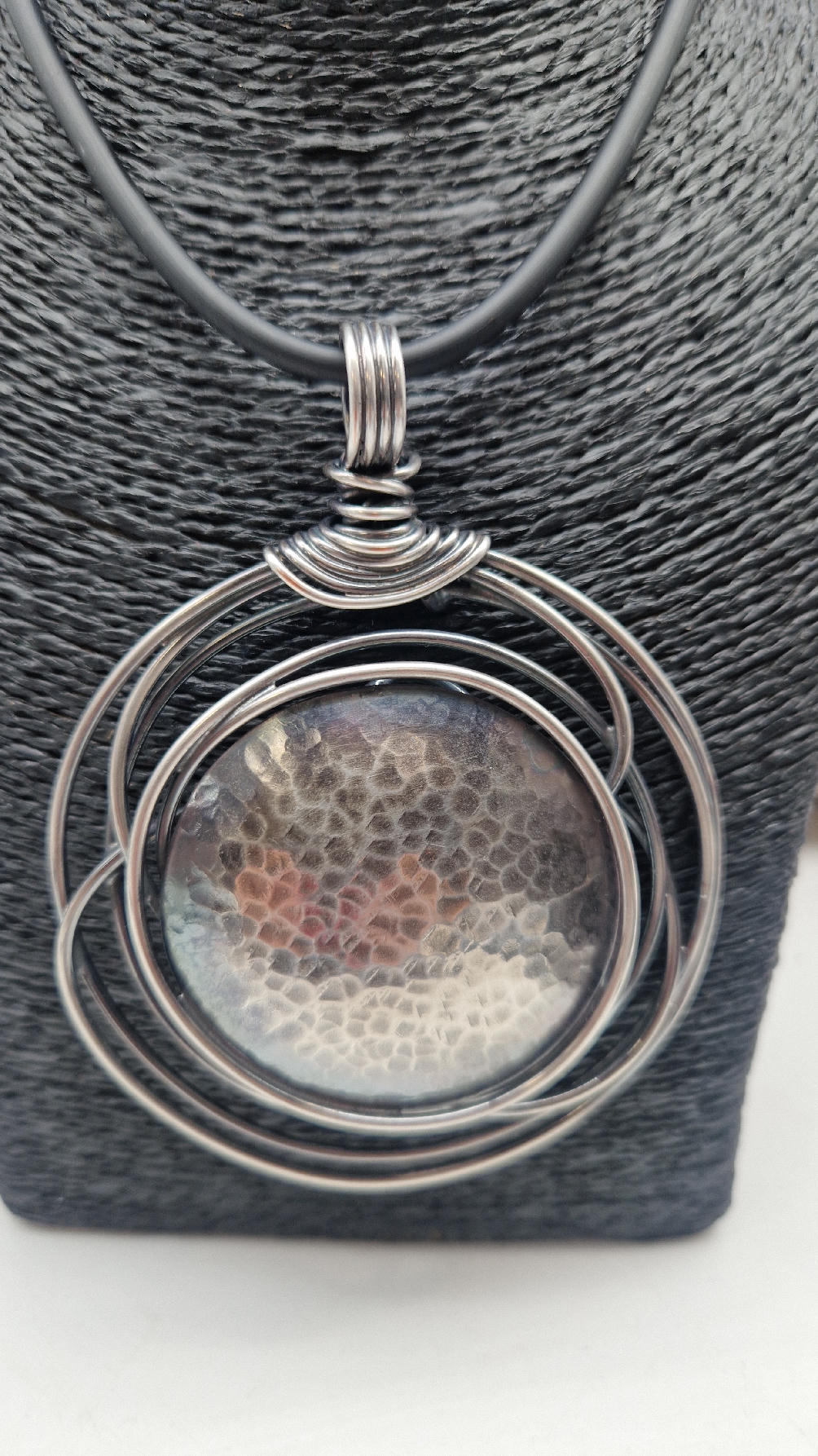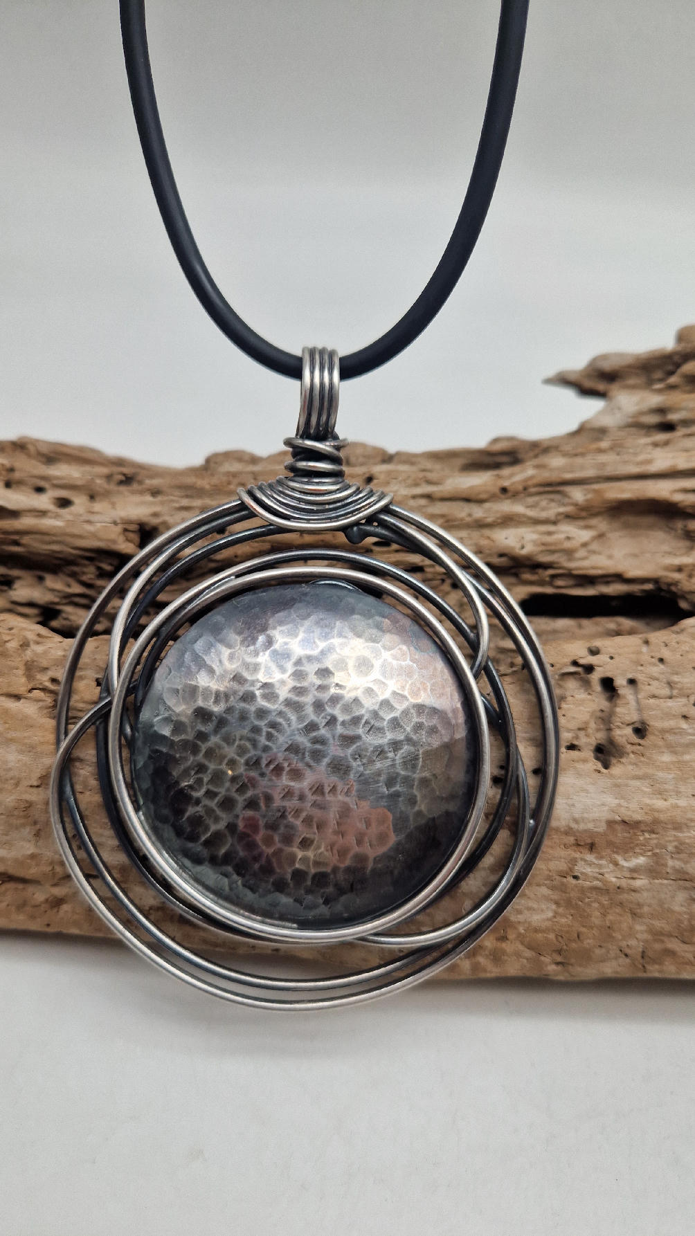 Duży metalowy wisior, taki…idealny… do wszystkiego, okrągły,  bardzo oryginalny, przestrzenny zrobiony z miedzi, kuty, patynowany, srebrzony, cudny…taki, że zakochasz się od pierwszego założenia . Ja noszę go bardzo często…