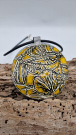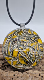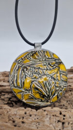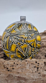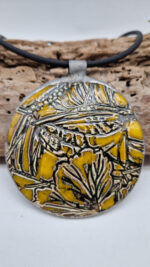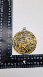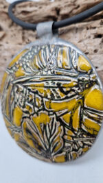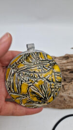 Cudny, ceramiczny cytrynowo-rżólty, duży wisior, ceramika oprawiona w metal, która będzie piękną dekoracją Twojego dekoltu.
