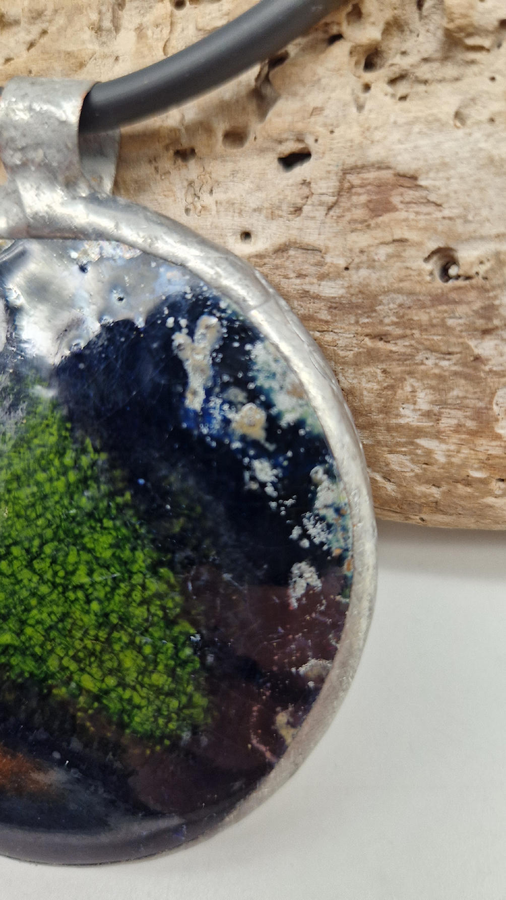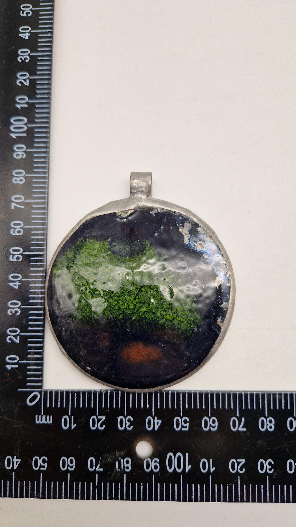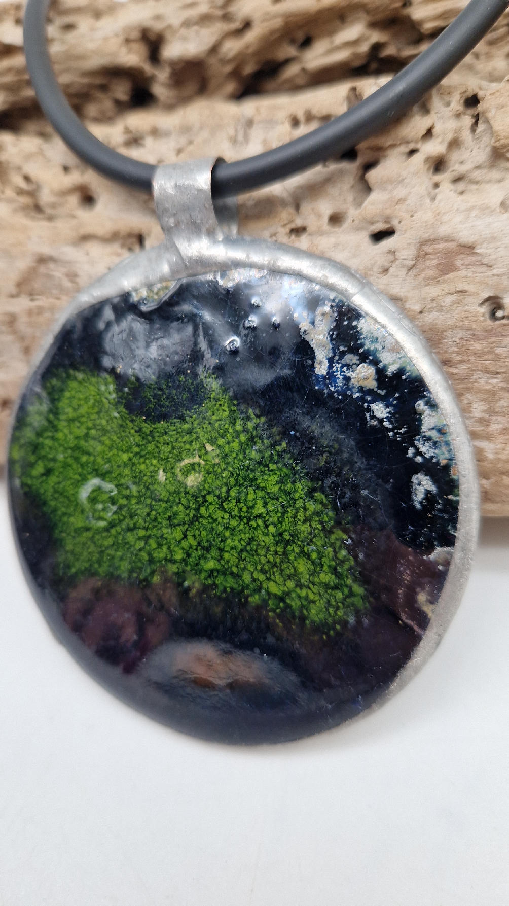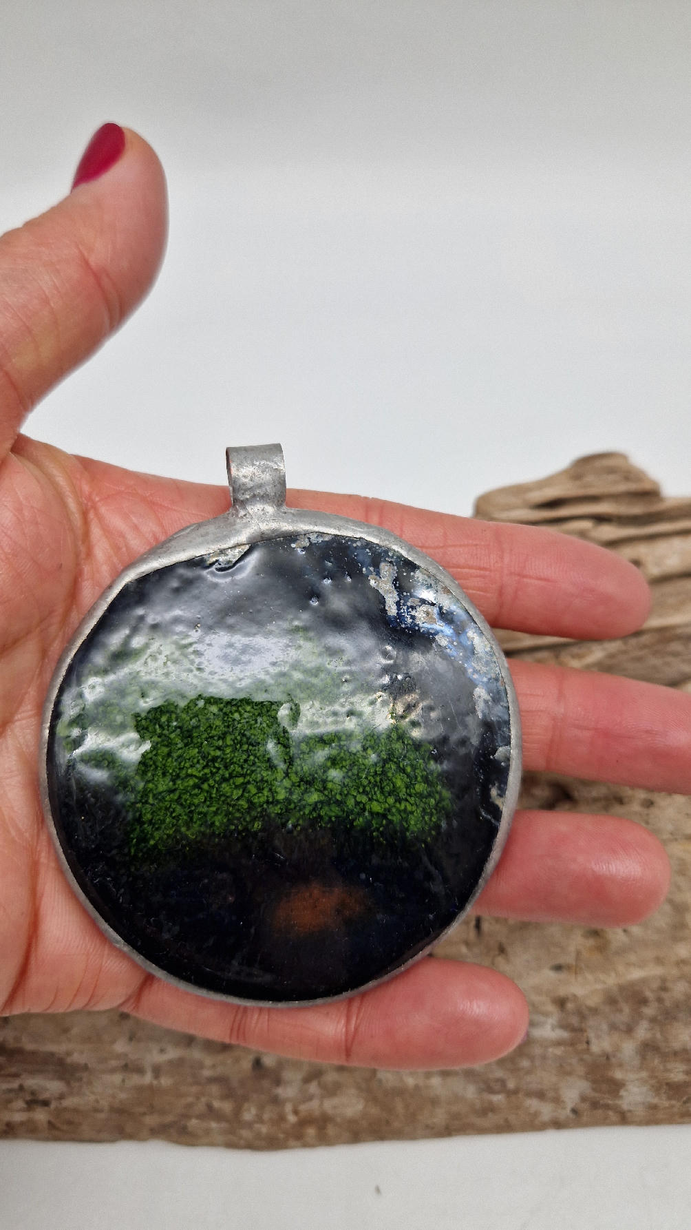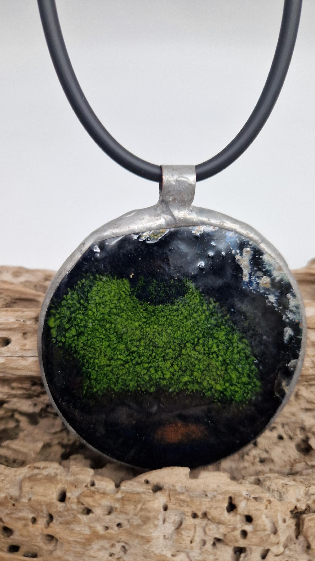 Zieloniasta, bo mega zielona z czarną obwódką piękna Zoe jak zielona wyspa na czarnym jeziorze…Niewielki, a może po prostu ciut mniejszy zielono-czarny wisior z pieknej ceramiki, oprawionej w metal.