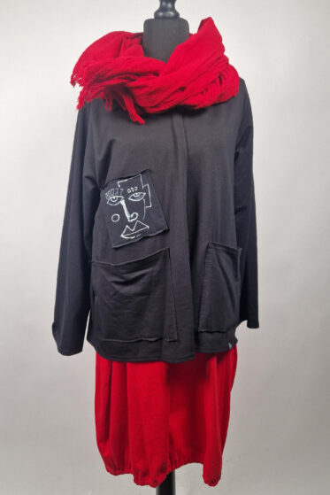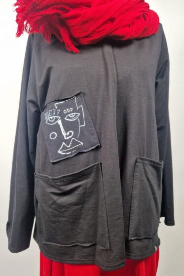 Czarny mega elegancki żakiet z wytłaczanej tkaniny, z pięcioma kieszeniami…