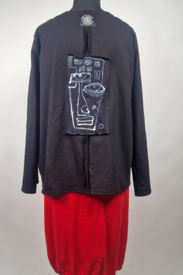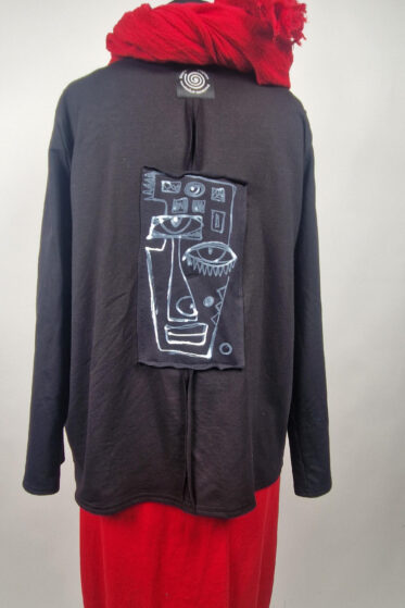 Ręcznie malowany żakiet z bawełny, wygodny jak bluza, ale elegancki i sportowy jednocześnie, bardzo zgrabny i oryginalny ,malowany, z kontrastowymi mankietami, do których pomalowałam żakiet. Jest pociągający, uroczy i zabawny