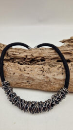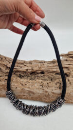 Elegancki i taki ,, do wszystkiego”, pozytywnie zakręcony naszyjnik zrobiony ze srebrzonej, patynowanej miedzi.